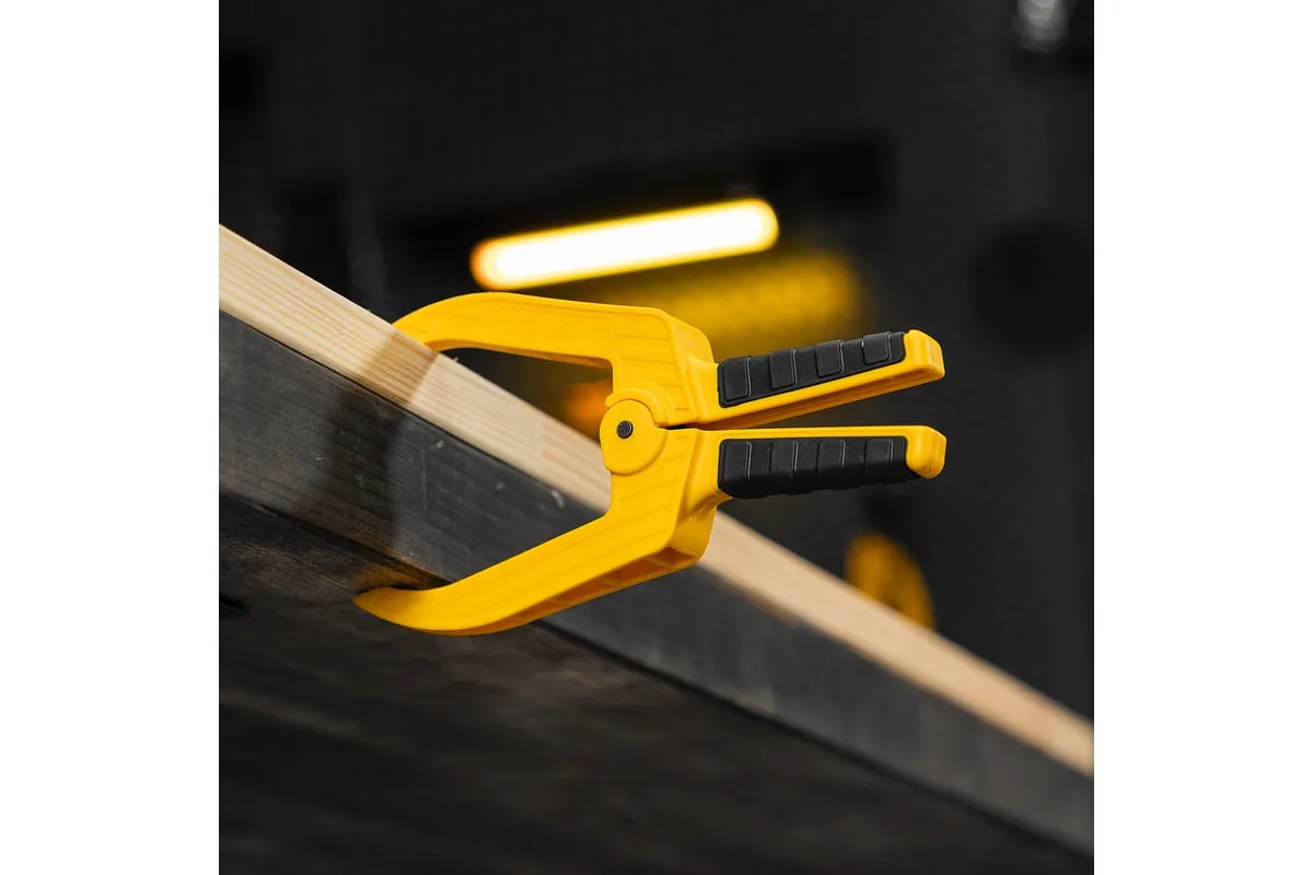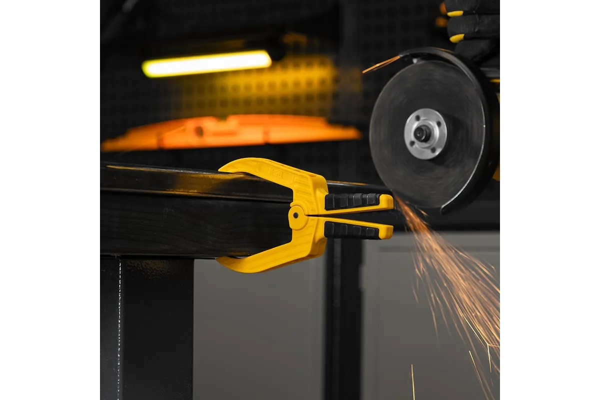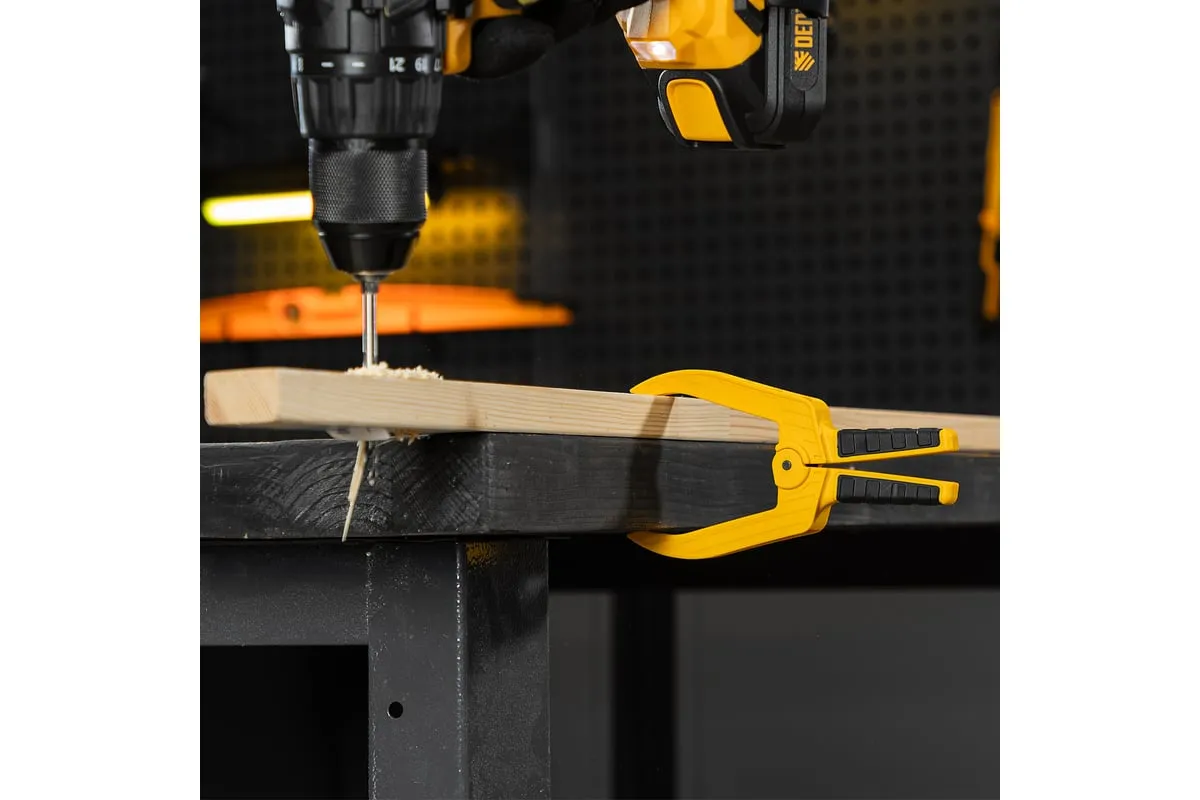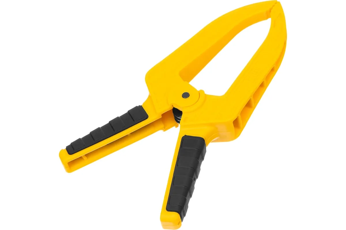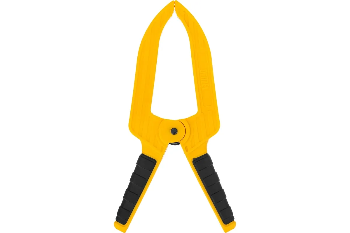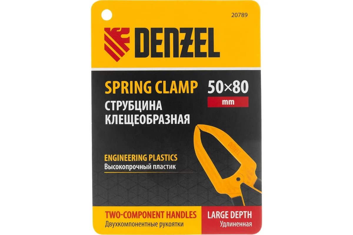 Струбцина клещеобразная удлиненная Denzel с глубиной зажима 80 мм, с двухкомпонентными рукоятками, способна удерживать детали толщиной до 50 мм. Будет полезна при склеивании или разметке заготовок. Подвижные губки с углублениями на прижимных поверхностях