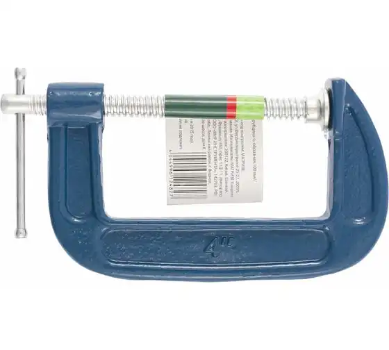 G-образная струбцина применяется для фиксации заготовок с целью их склеивания, а также для крепления к верстаку или станку для опиливания, сверления и другой обработки. Используется во время сварки металлических деталей. Рама выполнена из чугуна с шаровидным графитом, поэтому отличается высокой прочностью и устойчивостью к нагрузкам. Струбцина пригодится в слесарной и столярной мастерской, а также будет полезна в домашнем хозяйстве.