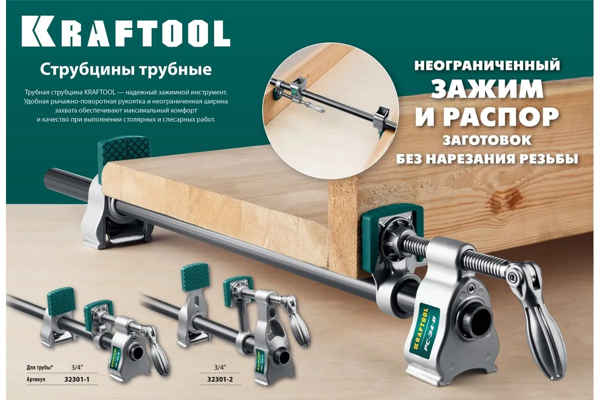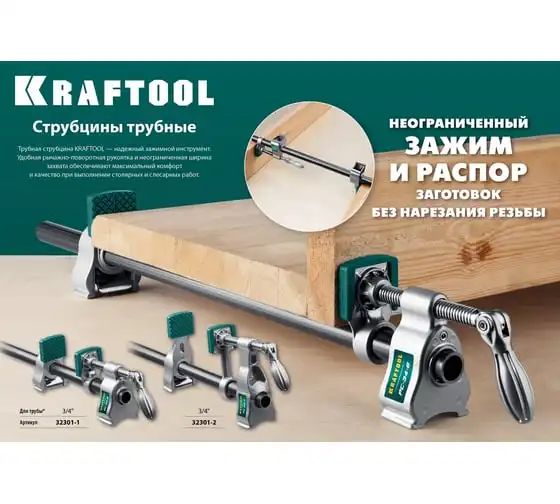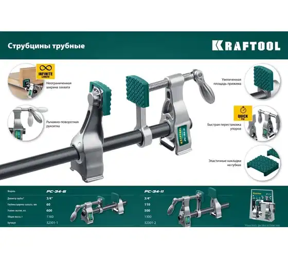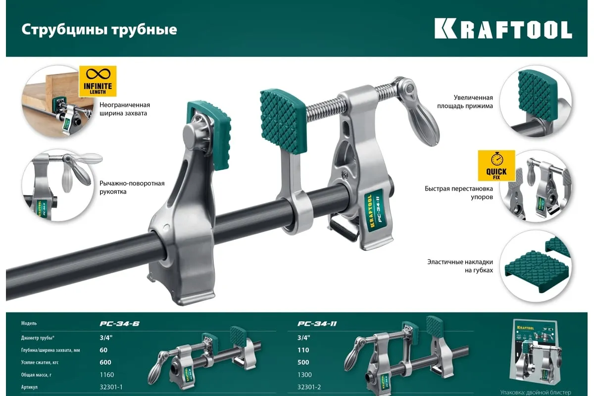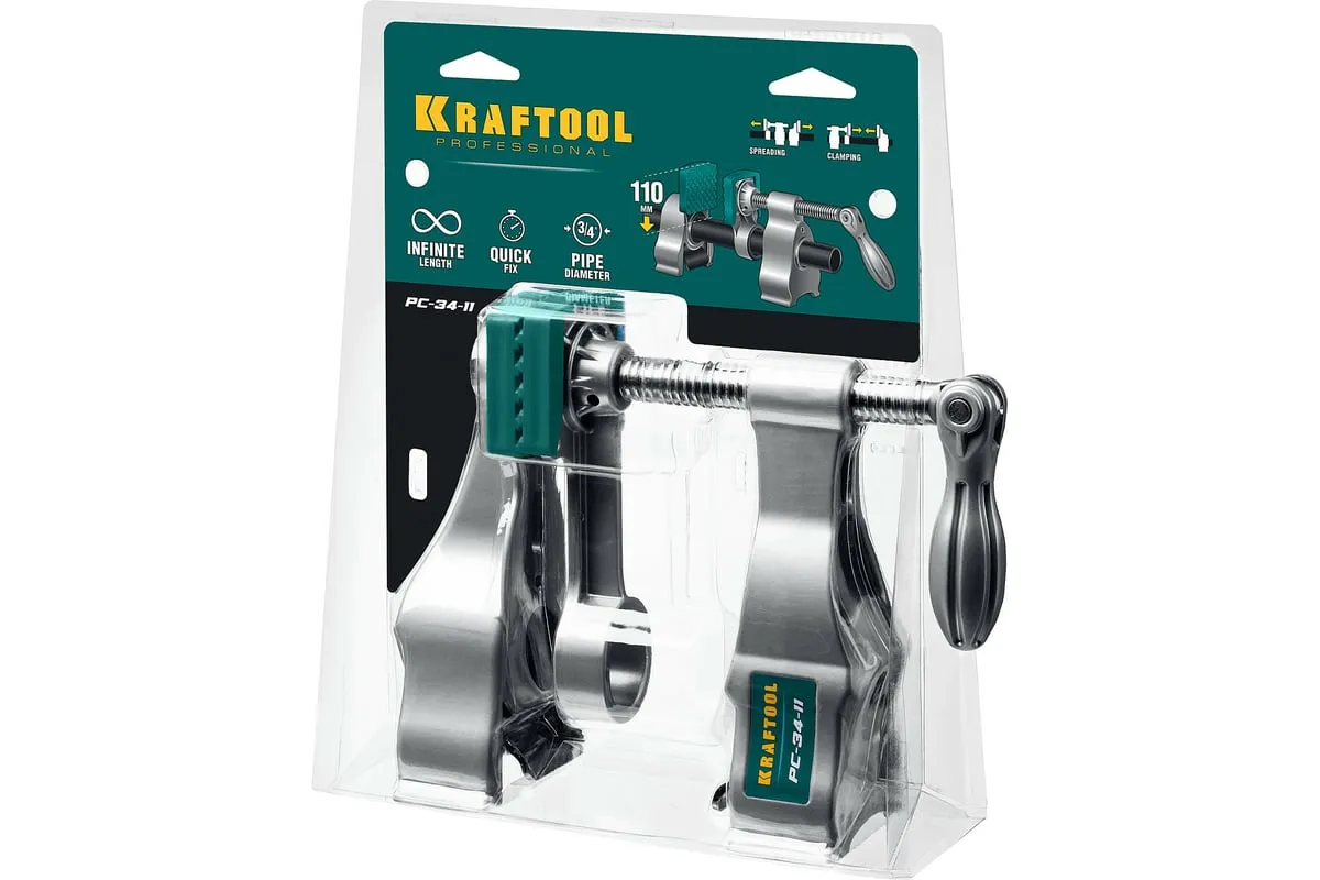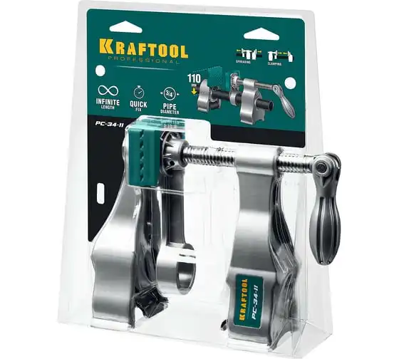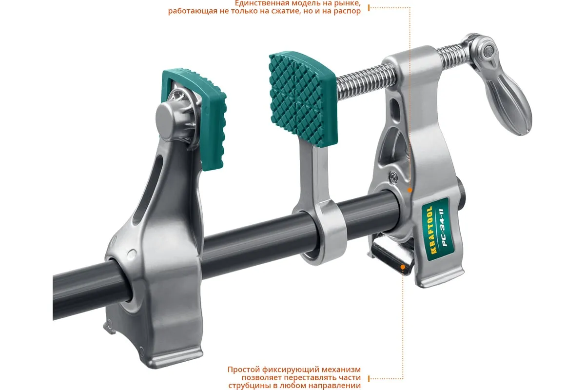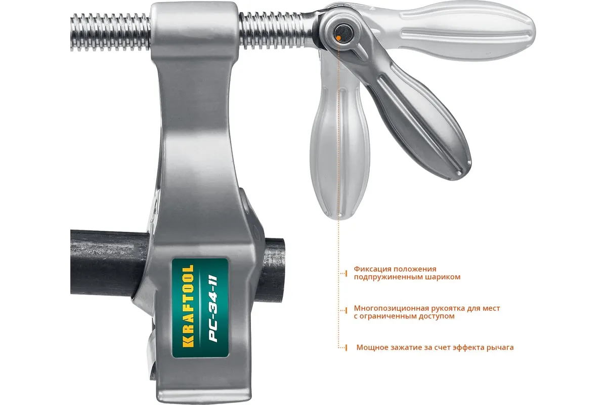 Струбцина трубная KRAFTOOL PC-34-11 3/4" 32301-2 надежно фиксирует различные детали для их дальнейшей обработки. Широко применяется на дверном производстве при склеивании больших щитов между собой. Рукоятка имеет несколько позиций и обеспечивает максимальное удобство при работе в труднодоступных местах.