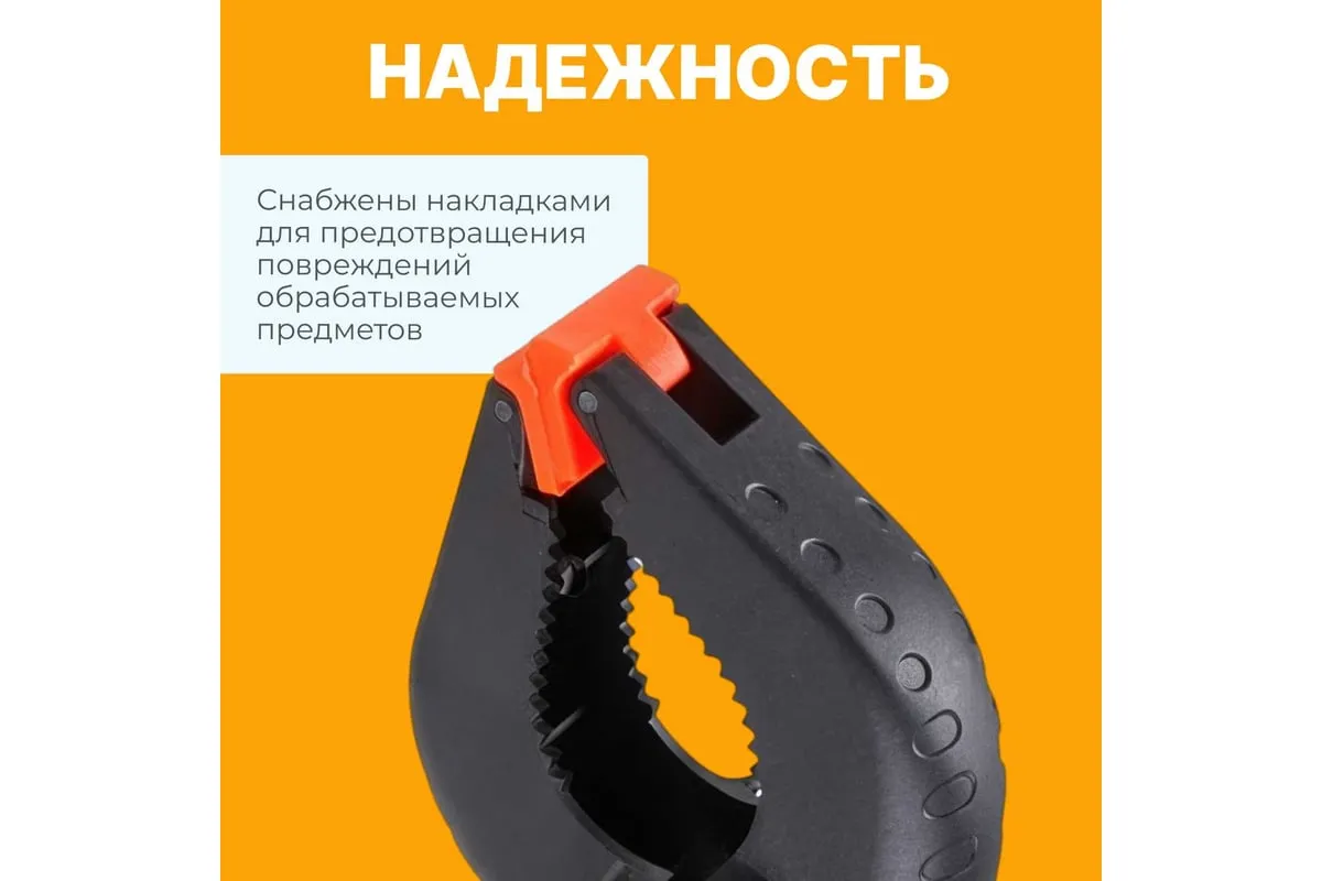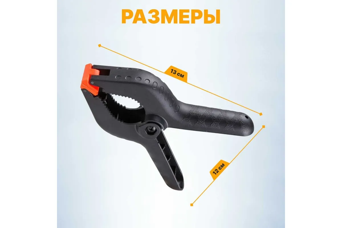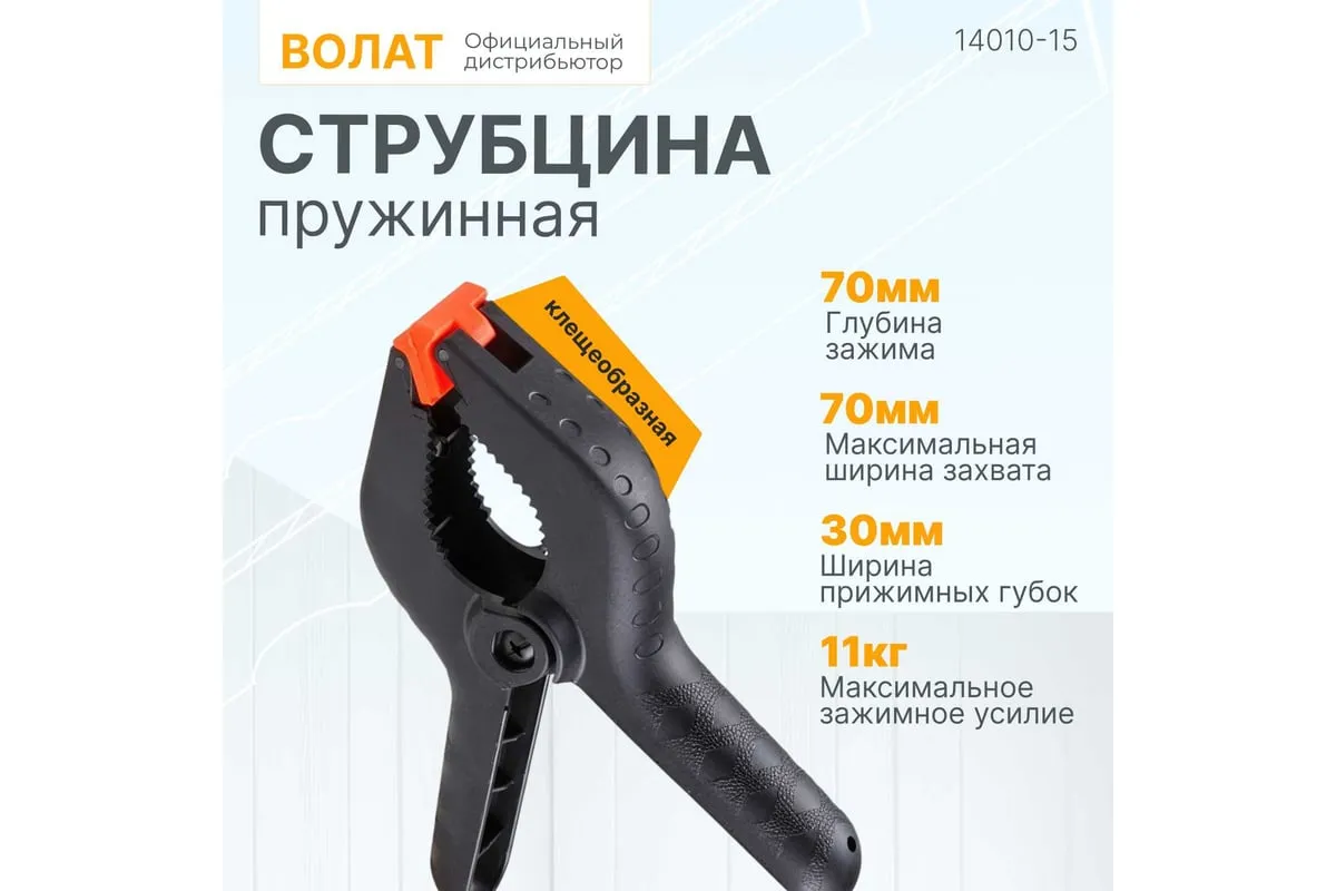 Струбцина ВОЛАТ пружинная 14010-15 позволяет соединить между собой несколько деталей или закрепить их у верстака.