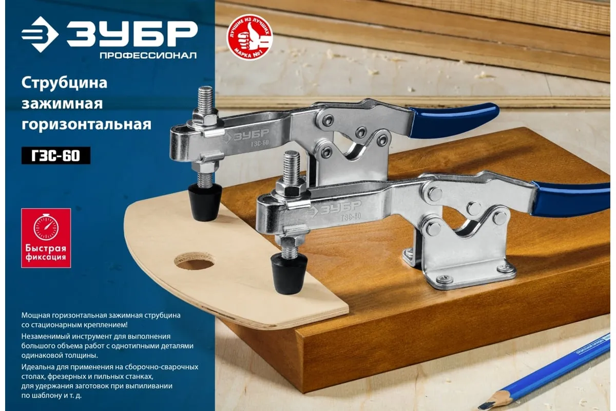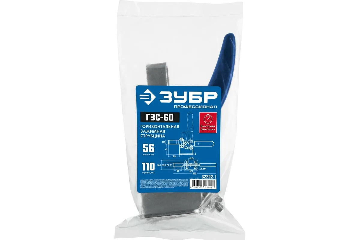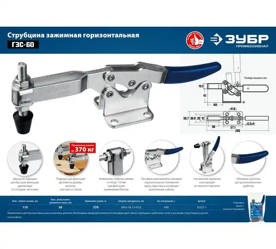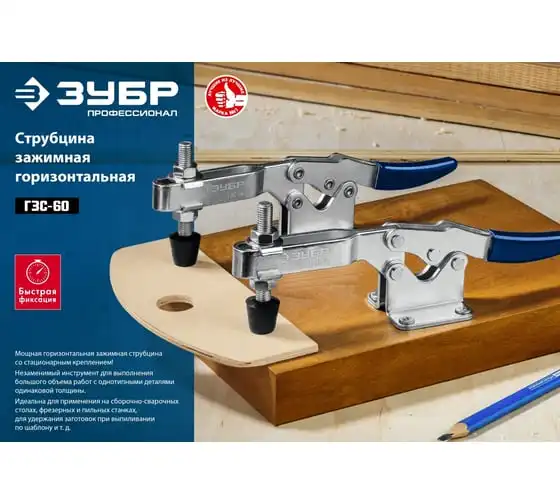 Струбцина ЗУБР ГЗС-60 зажимная 56/110 мм 32222-1 - это мощная зажимная струбцина со стационарным креплением.Незаменимый инструмент для выполнения большого объёма работ с однотипными деталями одинаковой толщины.Идеальны для применения на сборно-сварочных столах, фрезерных и пильных станках, для удержания заготовок для выпиливания по шаблону.
