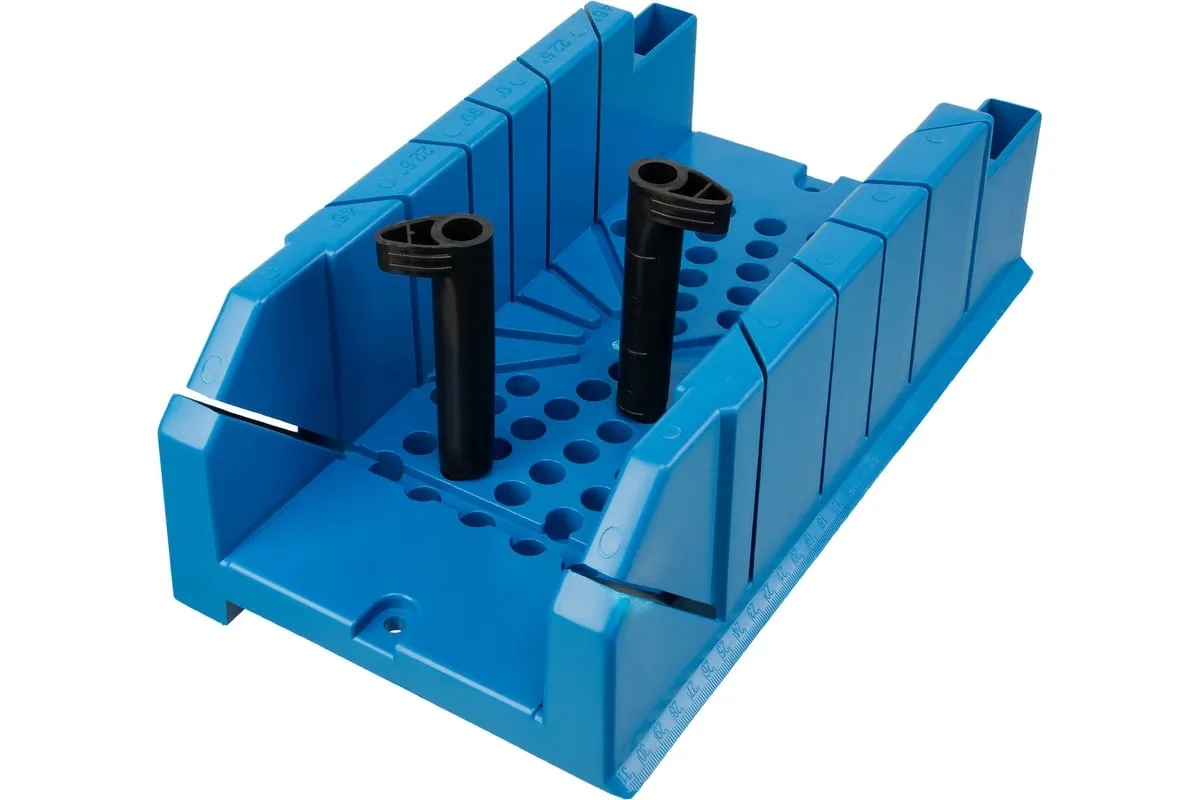 Пластиковое стусло с 6 углами для запила, пригодится начинающим мастерам и профессионалам для работы с заготовками шириной до 120 мм и толщиной до 80 мм. Приспособление позволяет осуществлять точный распил деталей в вертикальной плоскости под углами 22,5/45/90/135 градусов, а также в горизонтальной под углом 45 градусов.