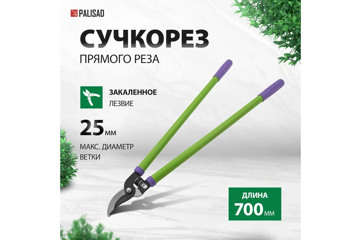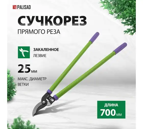 Сучкорез 700 мм PALISAD 60521 является прекрасным помощником в саду или на даче для ухода за деревьями и кустарниками при формировании их кроны. Рабочая часть состоит из острозаточенного лезвия, которое способно разрезать ветви и сучья толщиной до 25 мм. Для более удобного и мягкого реза сучкорез дополнительно оборудован резиновым амортизатором, который служит ограничителем хода и предохраняет инструмент от излома. Сучкорез обладает повышенным рабочим ресурсом, так как его рабочая часть выполнена из прочной и качественной инструментальной стали и покрыта антикоррозийным оксидированным составом.