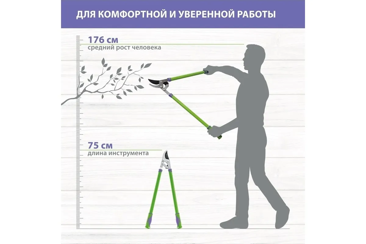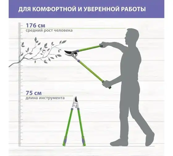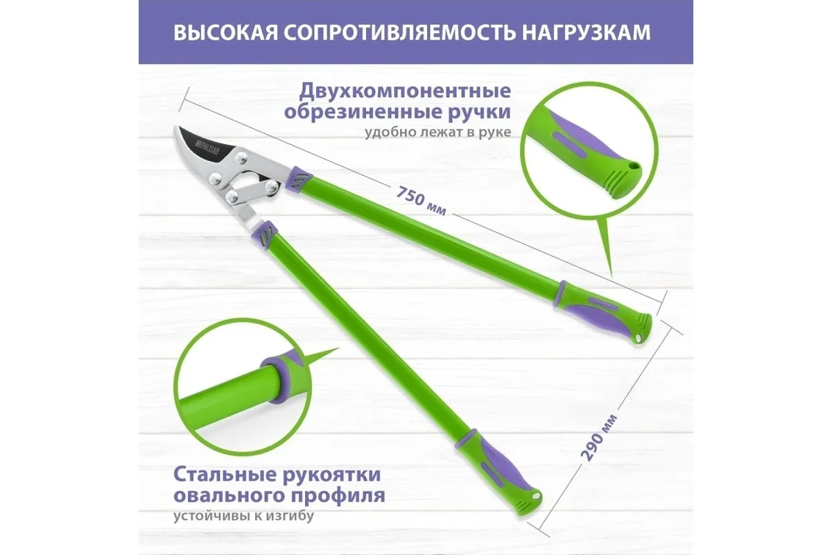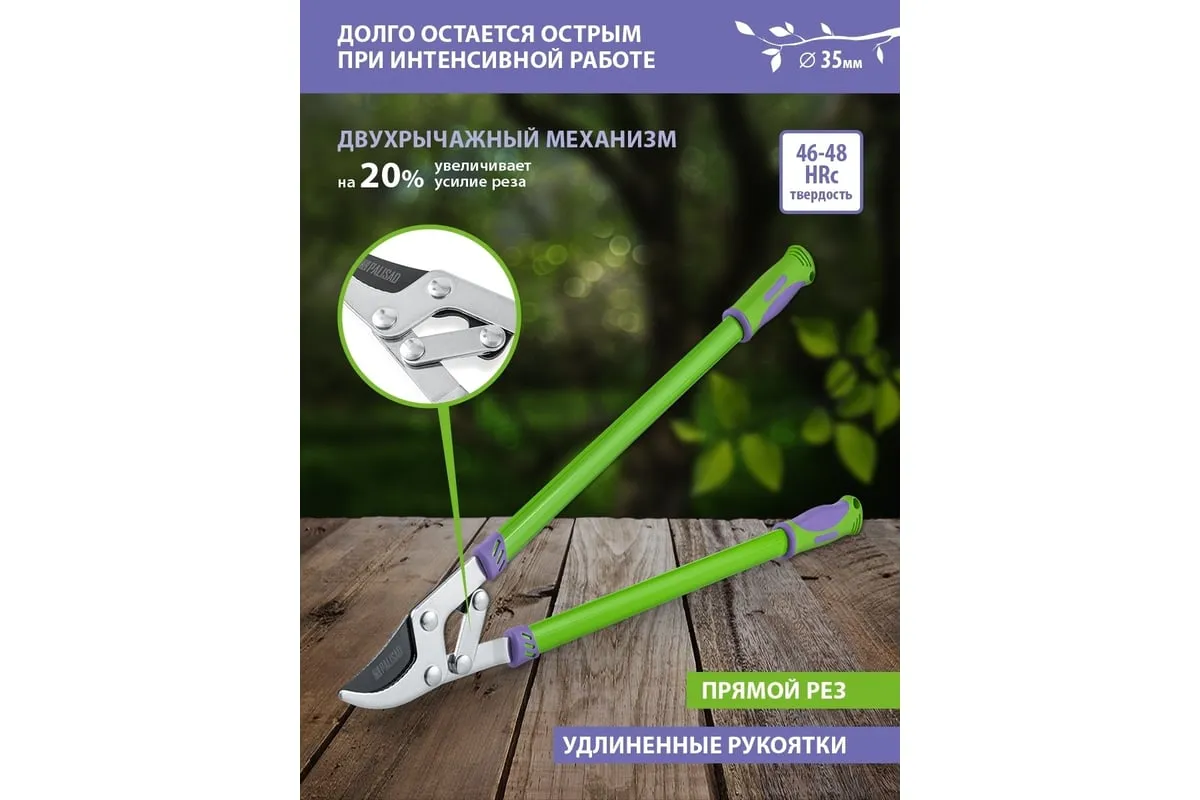 Сучкорез прямого реза Palisad 60522 длиной 750 мм, с двухкомпонентными рукоятками, оснащен двухрычажным механизмом, увеличивающим усилие реза на 20%. Инструмент используется для обрезки живых веток толщиной не более 35 мм. Предназначен для работы двумя руками. Сучкорез с длинными ручками успешно справляется с жесткими и высоко растущими ветками. Рабочее лезвие легко срезает ветви благодаря прецизионной заточке и тефлоновому покрытию, которое дополнительно обеспечивает надежную защиту от коррозии. Сучкорез облегчит уход за садом и огородом.
