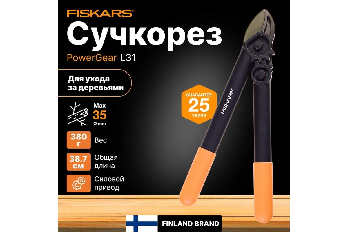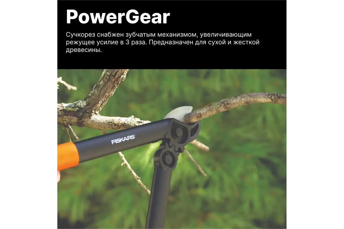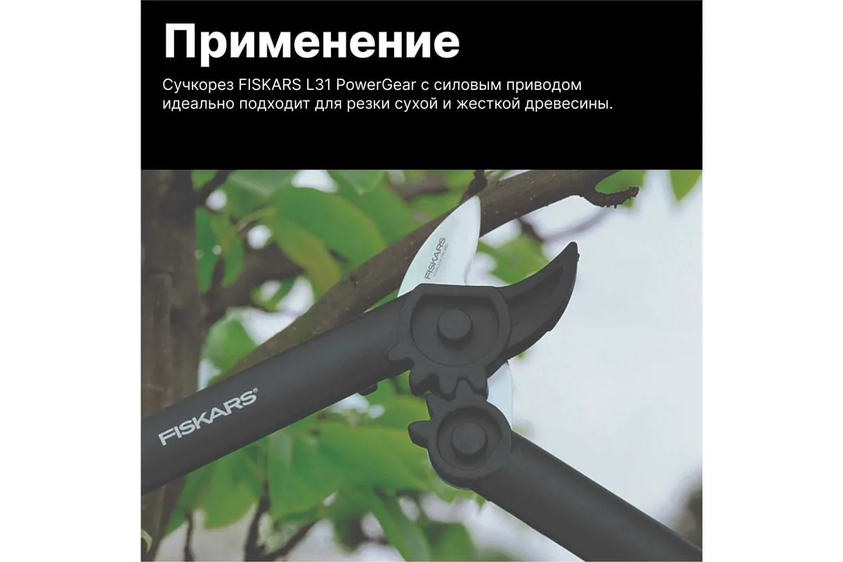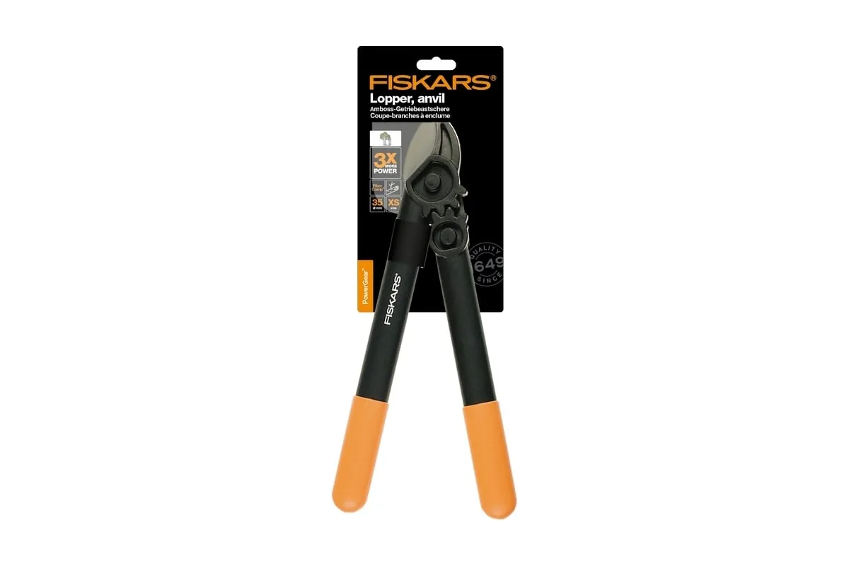 Сучкорез с силовым приводом Fiskars 1000581 (112170) применяется для подрезания жесткой сухой древесины диаметром до 35 мм. Инструмент имеет малый вес 0.38 кг. Верхнее лезвие сучкореза имеет антифрикционное тефлоновое покрытие для снижения трения. Уникальный силовой механизм увеличивает режущее усилие в 2.5 раза.