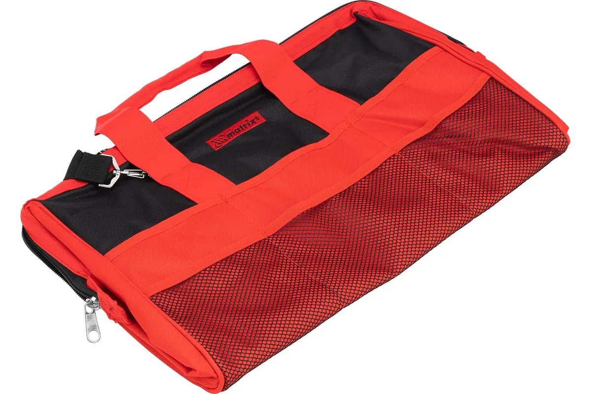Сумка комплектуется наплечным ремнем с расширяющей накладкой для удобства переноски. Пригодится монтажникам, слесарям, строителям, будет полезна дома и в поездке.