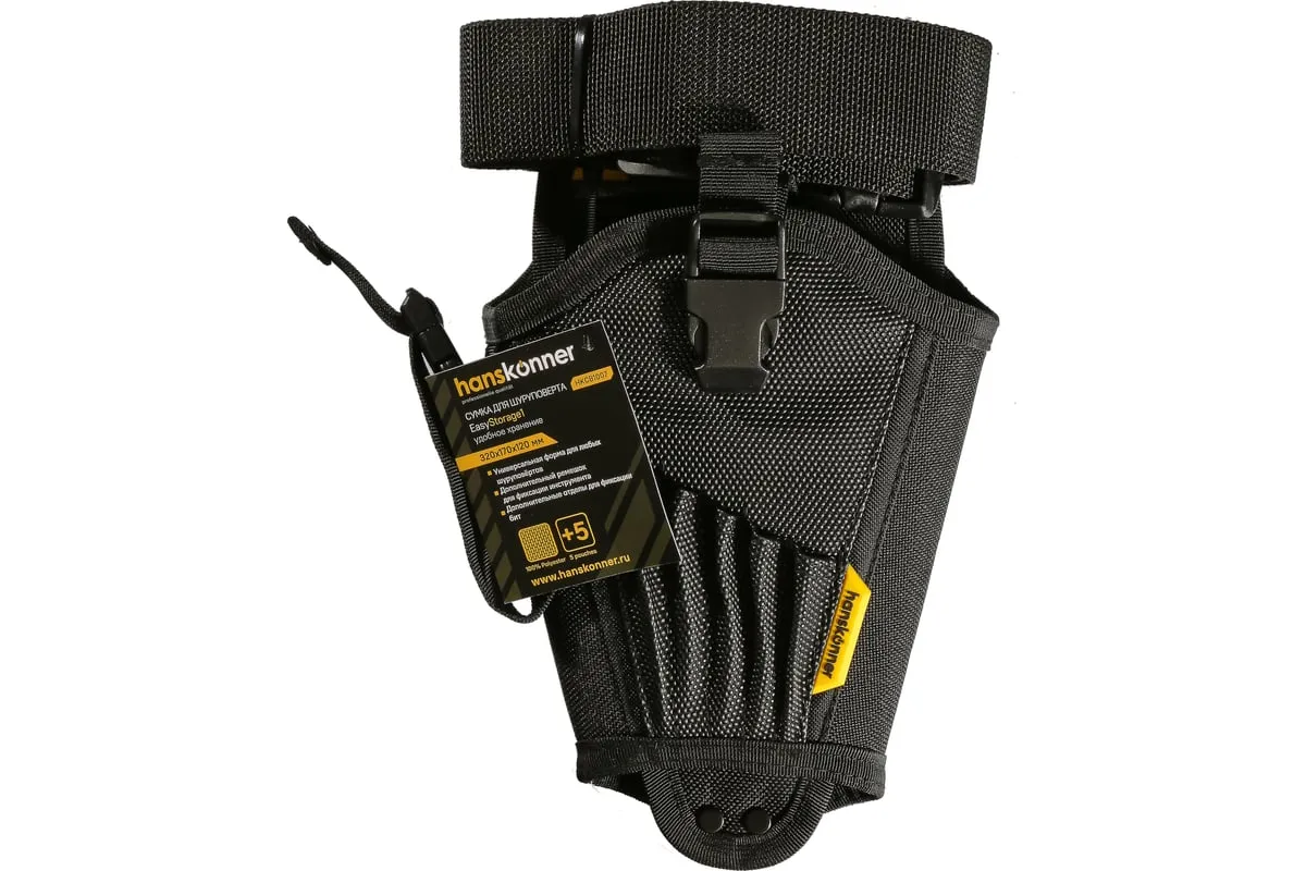 Универсальное отделение под любые шуруповёрты позволяет применять сумку максимально эффективно. Дополнительный ремешок для фиксации инструмента улучшает эргономику хранения. Дополнительные отделы для помещения бит или отвёрток позволяют работать быстро и комфортно. Специальное крепления для молотка позволит всегда держать необходимые инструменты под рукой. Высококачественный полиэстер устойчив к истиранию и обладает длительным сроком службы.