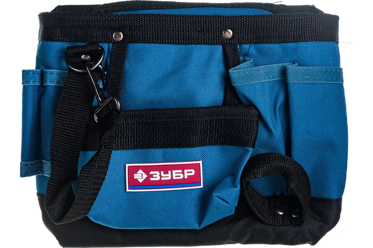 Сумка-пояс Зубр ЭКСПЕРТ одинарная, держатель для молотка, 9 карманов 38632 предназначендля хранения и транспортировки инструмента. 9 карманов позволяют функционально разместить необходимый инструмент. Это обеспечиваеткомфорт во время использования.
