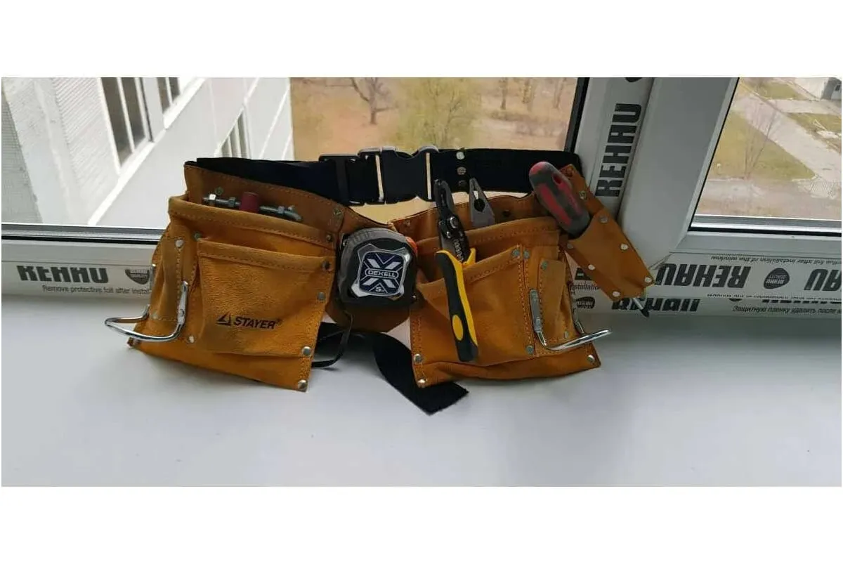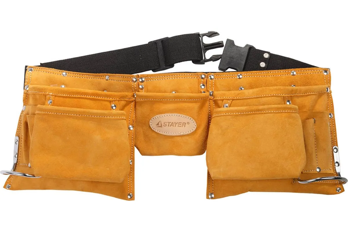Поясная сумка 38520 Stayer применяется для транспортировки ручного инструмента и оснастки при проведение широкого спектра монтажных, электромонтажных, слесарных и других работ. Сумка оснащена одиннадцатью карманами для удобного распределения ручного инструмента. С помощью сумки необходимый инструмент всегда будет под рукой во время работы, даже на высоте при электромонтажных работах. Удобное ношение на поясе не затрудняет и не мешает движениям. Прочный материал гарантирует долгий срок службы сумки.