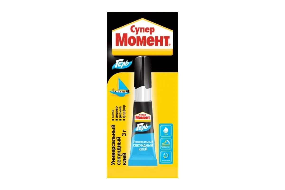 Супер гель Момент 622917 предназначен для склеивания различных материалов, например, стекла, фарфора, кожи, керамики, дерева, резины, металла, пробки, картона и других.