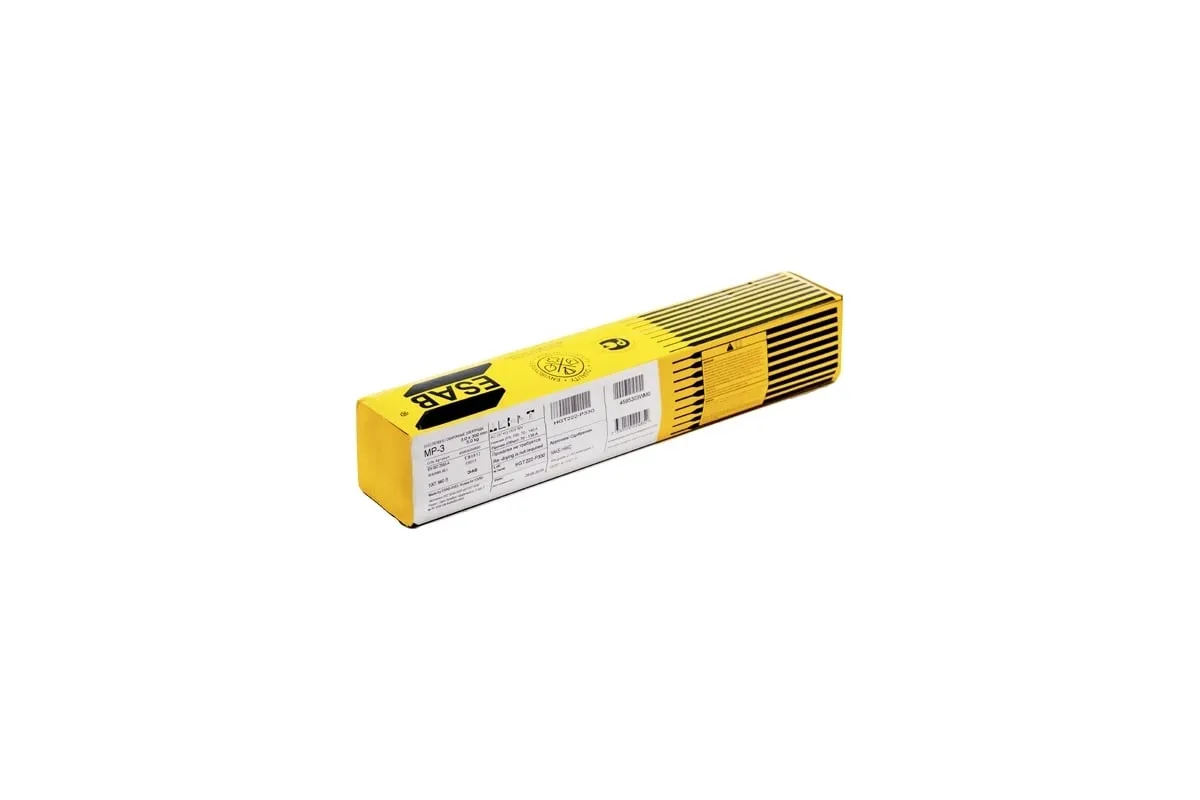 Сварочные электроды МР-3 (3.0x350 мм; 5 кг) ESAB 4595303WE0 - универсальные электроды для сварки ответственных конструкций из низкоуглеродистых и низколегированных сталей с временным сопротивлением до 490 МПа во всех пространственных положениях, кроме вертикали на спуск на постоянном токе любой полярности и переменном токе. Рекомендованы для сварки на форсированных режимах. Имеют повышенную производительность процесса.