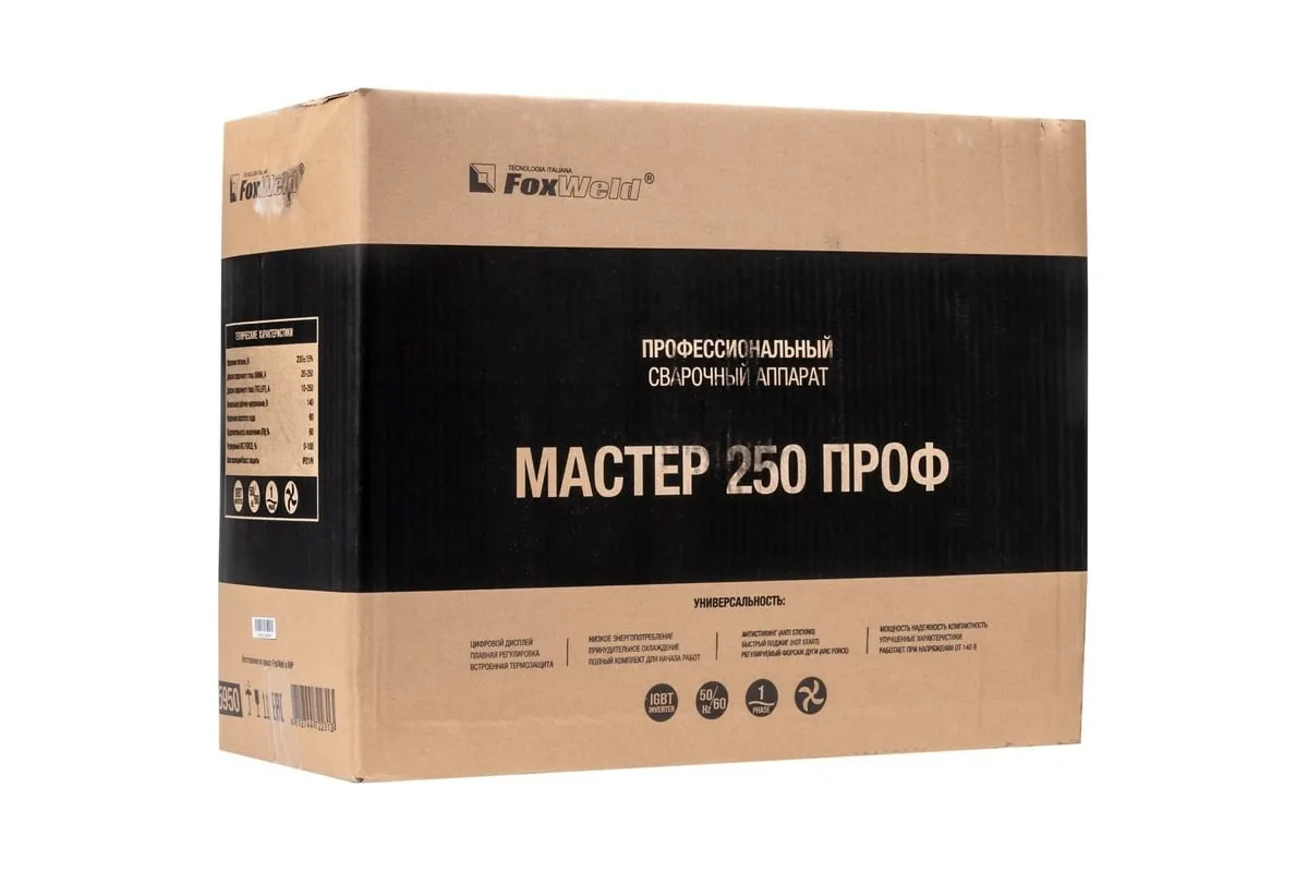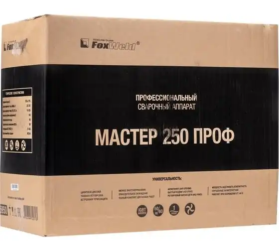 Сварочный аппарат Foxweld Мастер 250 Проф 5950 работает в двух режимах: ручная дуговая сварка покрытыми электродами и аргонодуговая сварка неплавящимся вольфрамовым электродом (аксессуары необходимо приобретать отдельно). Данная модель изготовлена с использованием новейшей инверторной технологии, что обеспечивает стабильные показатели тока во время сварки, устойчивость сварочной дуги, минимальное разбрызгивание металла, а также универсальность применения (сварка всех видов стали, меди, титана). Инвертор успешно используется в сфере ЖКХ, в строительстве и на небольших производствах.