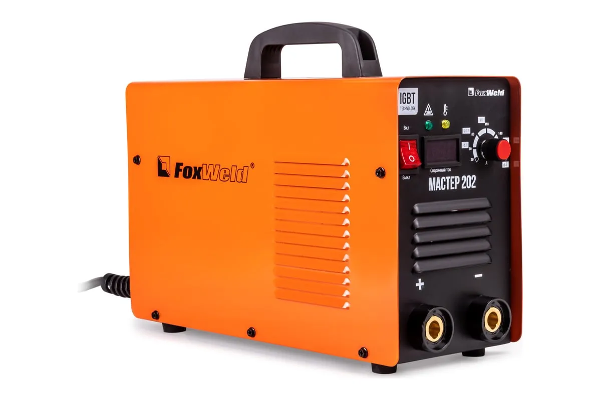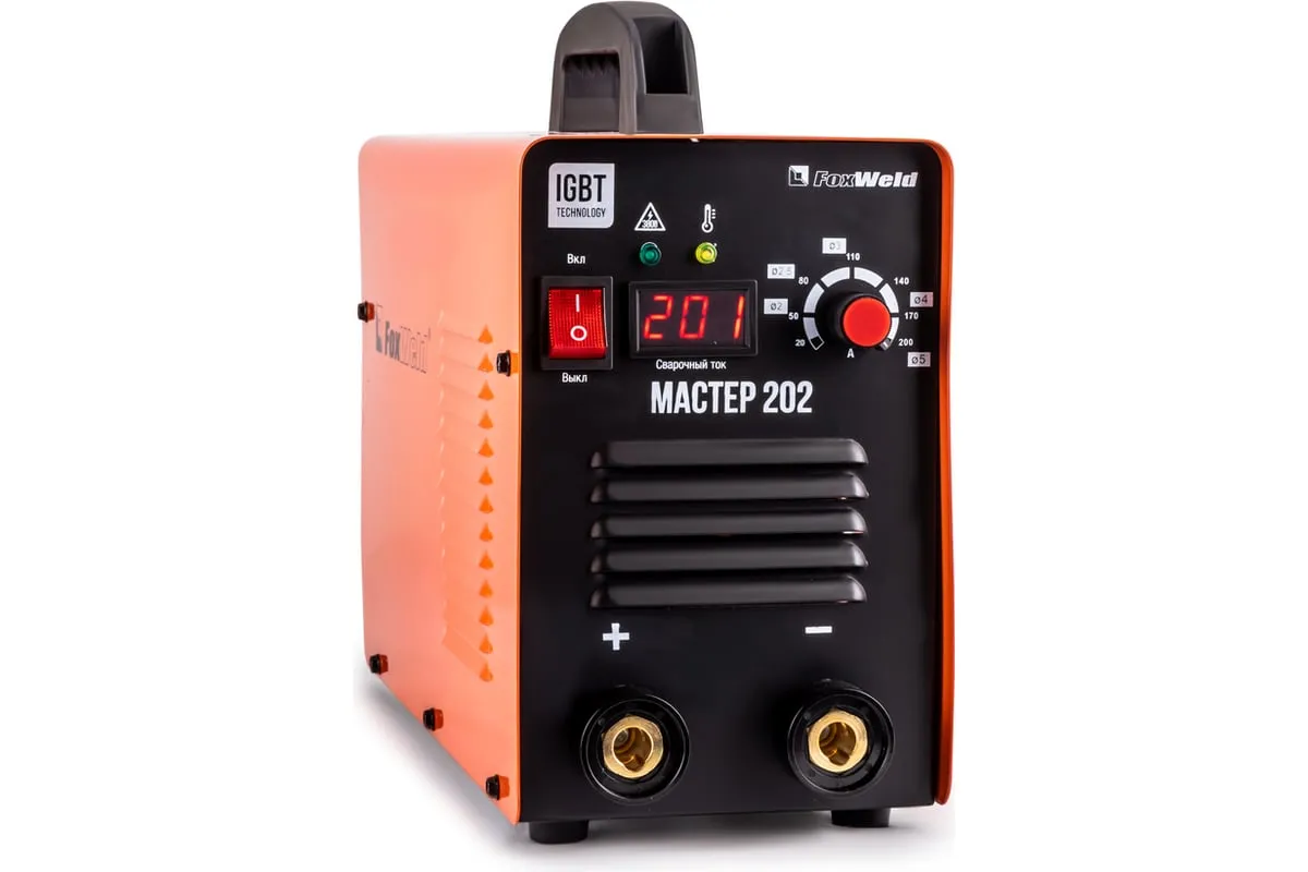 Сварочный инвертор Foxweld Мастер 202 3269 предназначается для ручной дуговой сварки электродами. Устройство отличается высокой мощностью и надежностью в работе при своих небольших габаритах. На передней панели располагаются цифровой дисплей для визуального контроля параметров, а также плавный регулятор сварочного тока и индикатор термозащиты. Модель отличается простой в применении и не доставляет сложностей в эксплуатации.