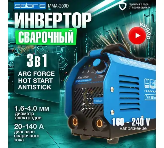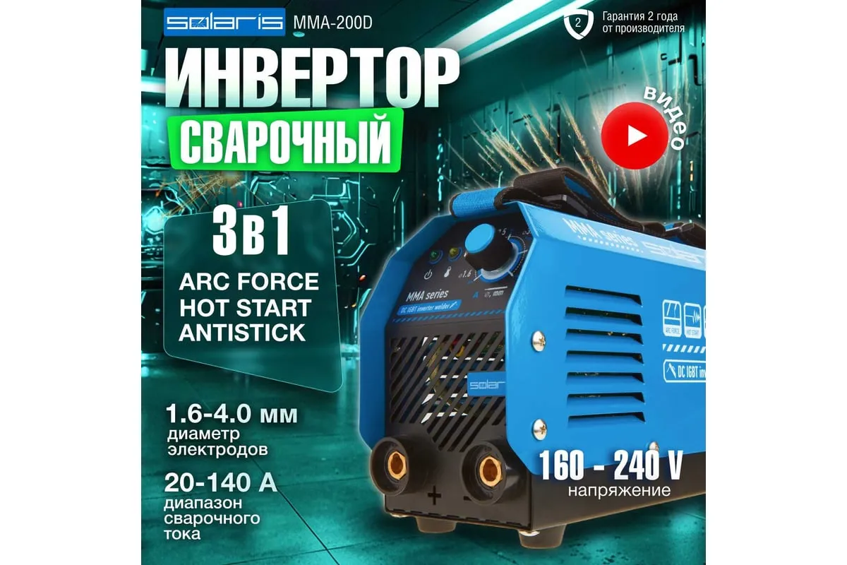 Сварочный инвертор SOLARIS MMA-200D обеспечивает качественный сварной шов при равномерной обработке металла. Аппарат имеет высокопрочный корпус с надежной вентиляцией - это повышает ПВ даже при наличии лишь пассивной системы охлаждения. Можно работать даже при высокой внешней температуре около 40 градусов. Аппарат легко настраивать и транспортировать.
