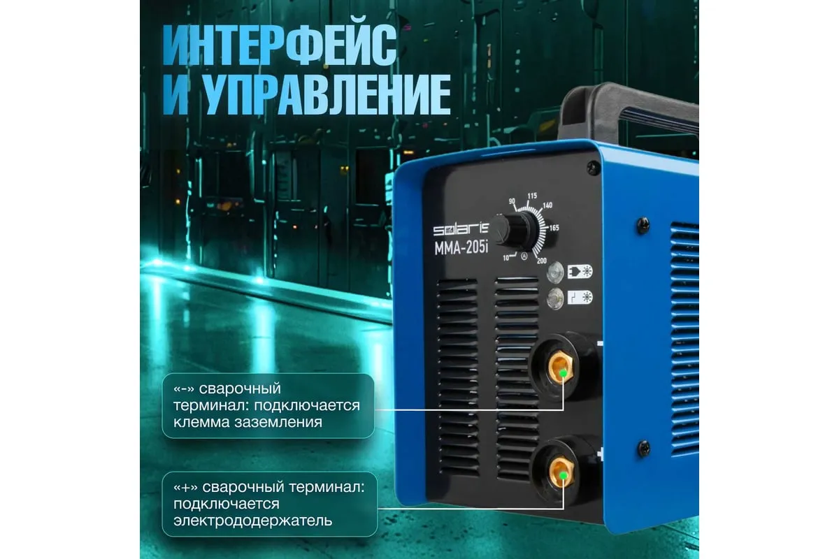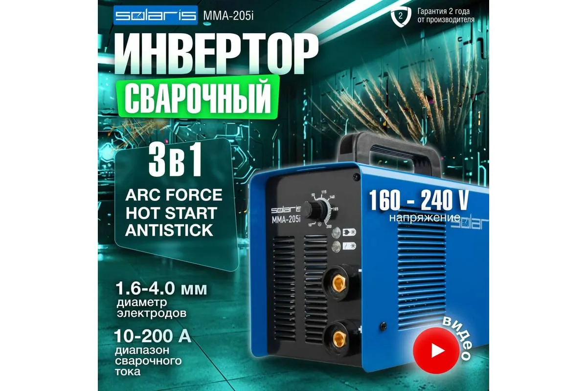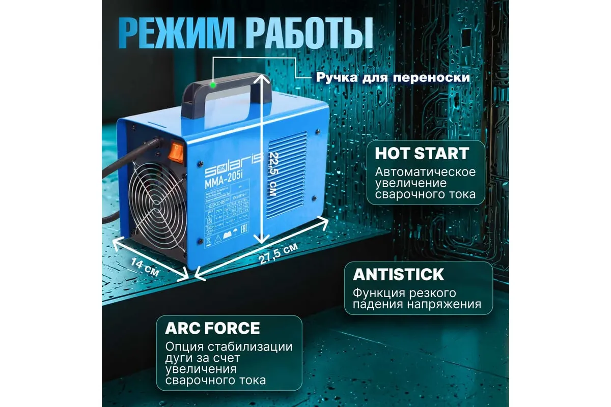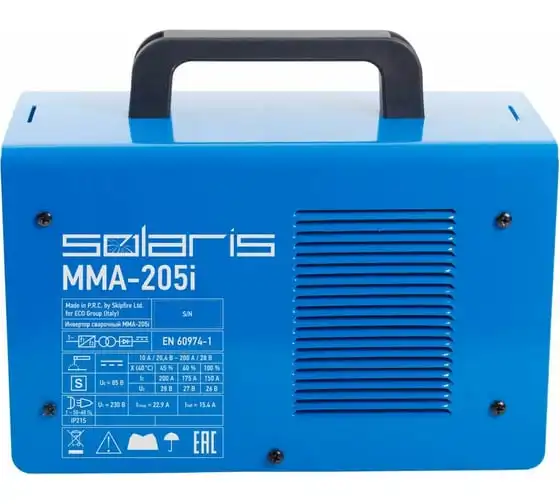 Сварочный инвертор SOLARIS MMA-205i обеспечивает качественный сварной шов при равномерной обработке металла. Аппарат имеет высокопрочный корпус с надежной вентиляцией - это повышает ПВ даже при наличии лишь пассивной системы охлаждения. Можно работать даже при высокой внешней температуре около 40 градусов. Аппарат легко настраивать и транспортировать.