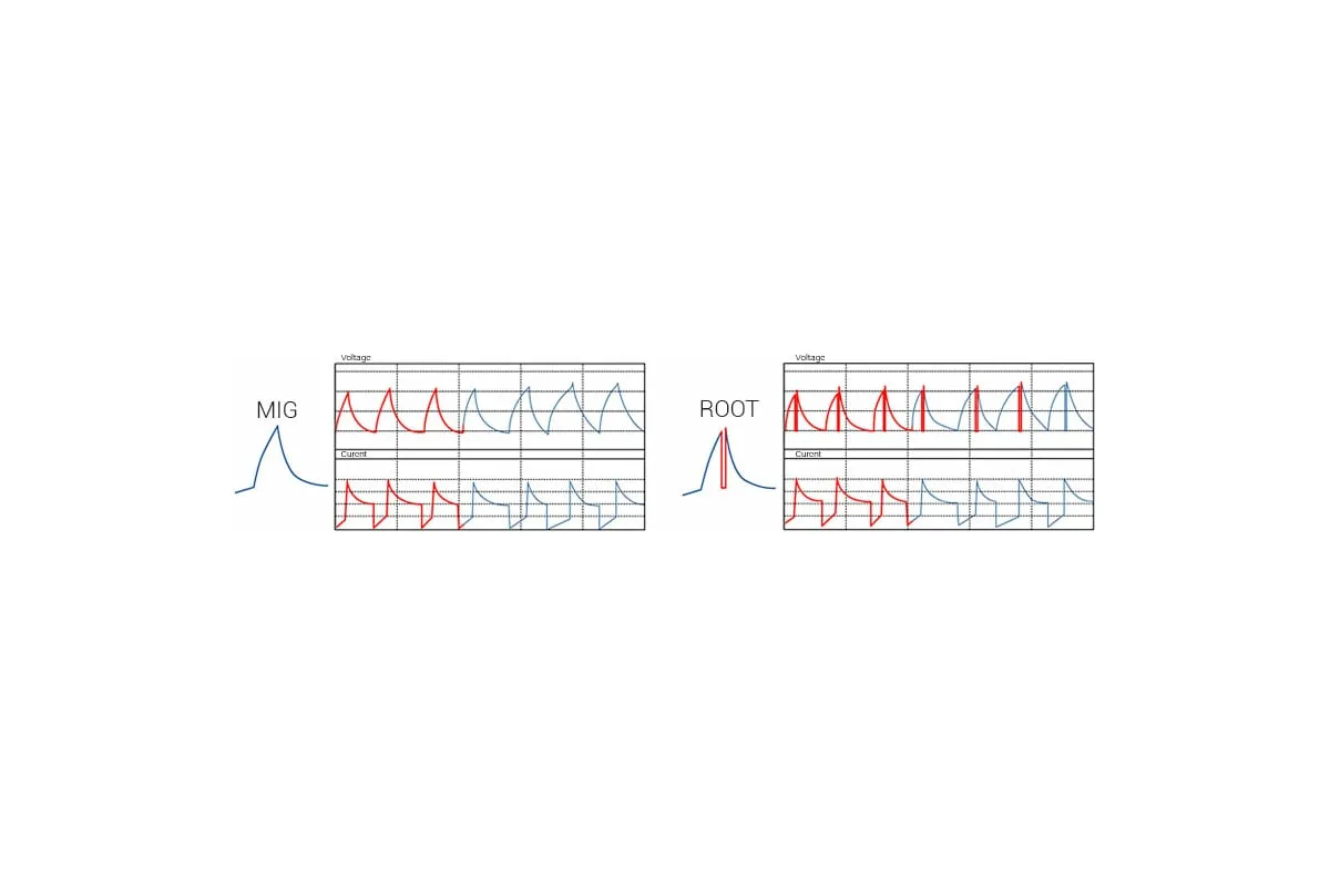 Специальный сварочный режим ROOT позволяет переносить металл с электрода на сварной шов благодаря сложной форме импульса. Это является основой качественного результата даже у неопытного сварщика.