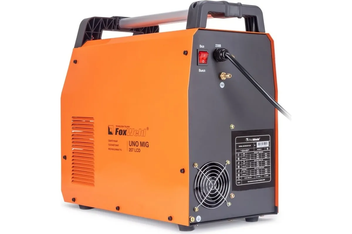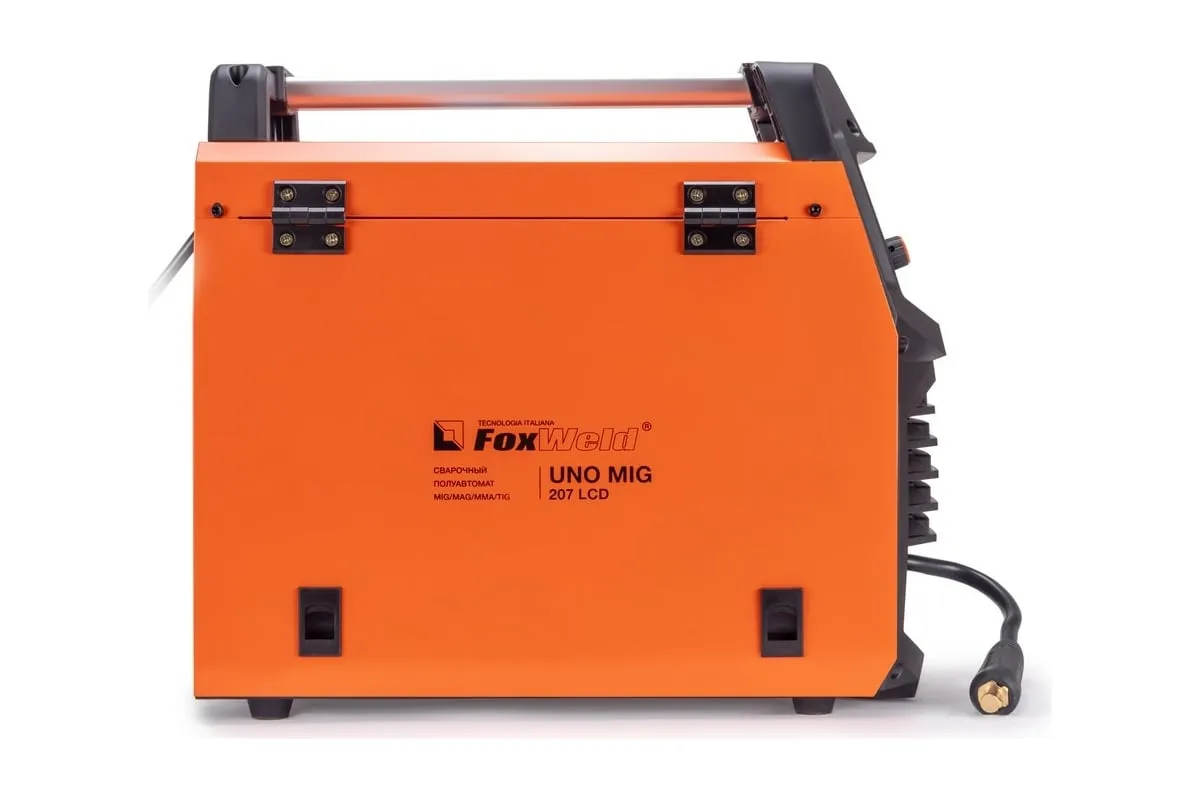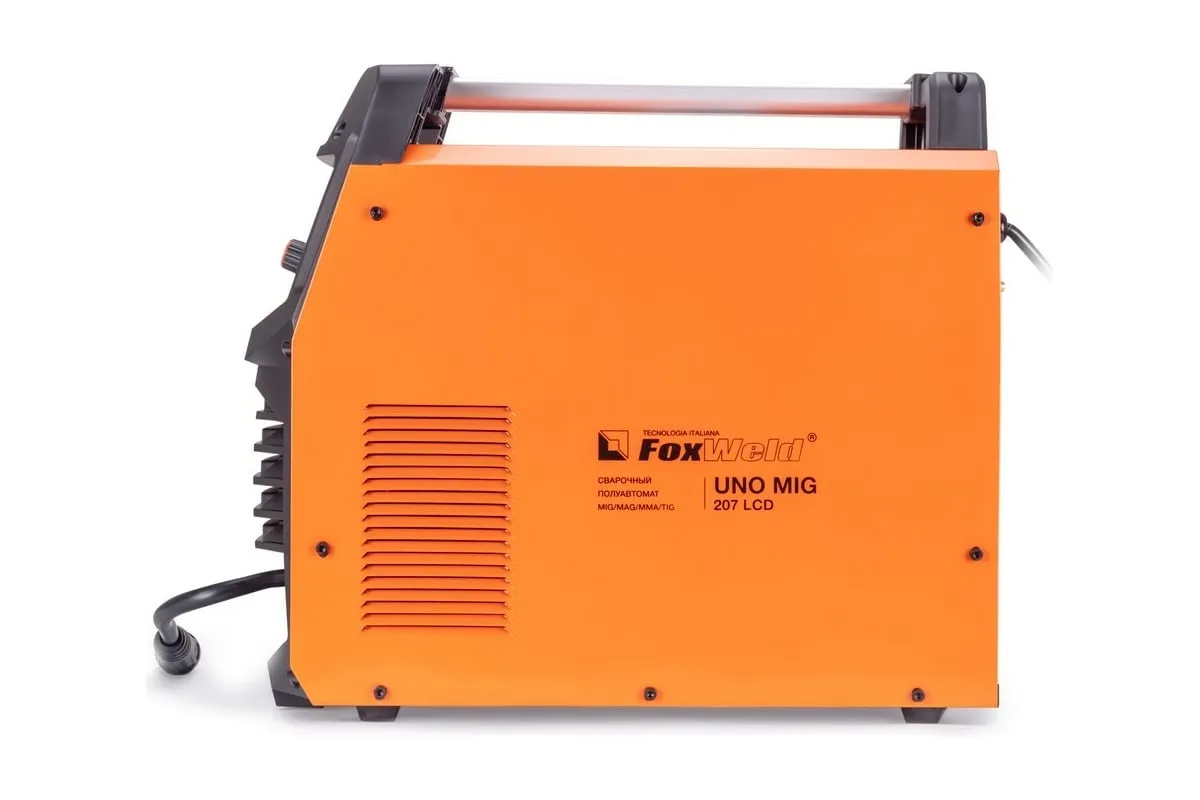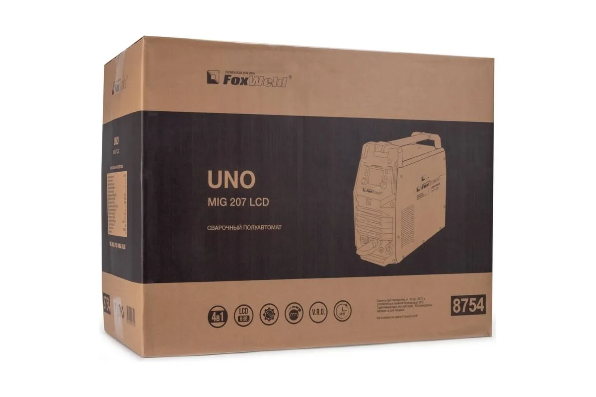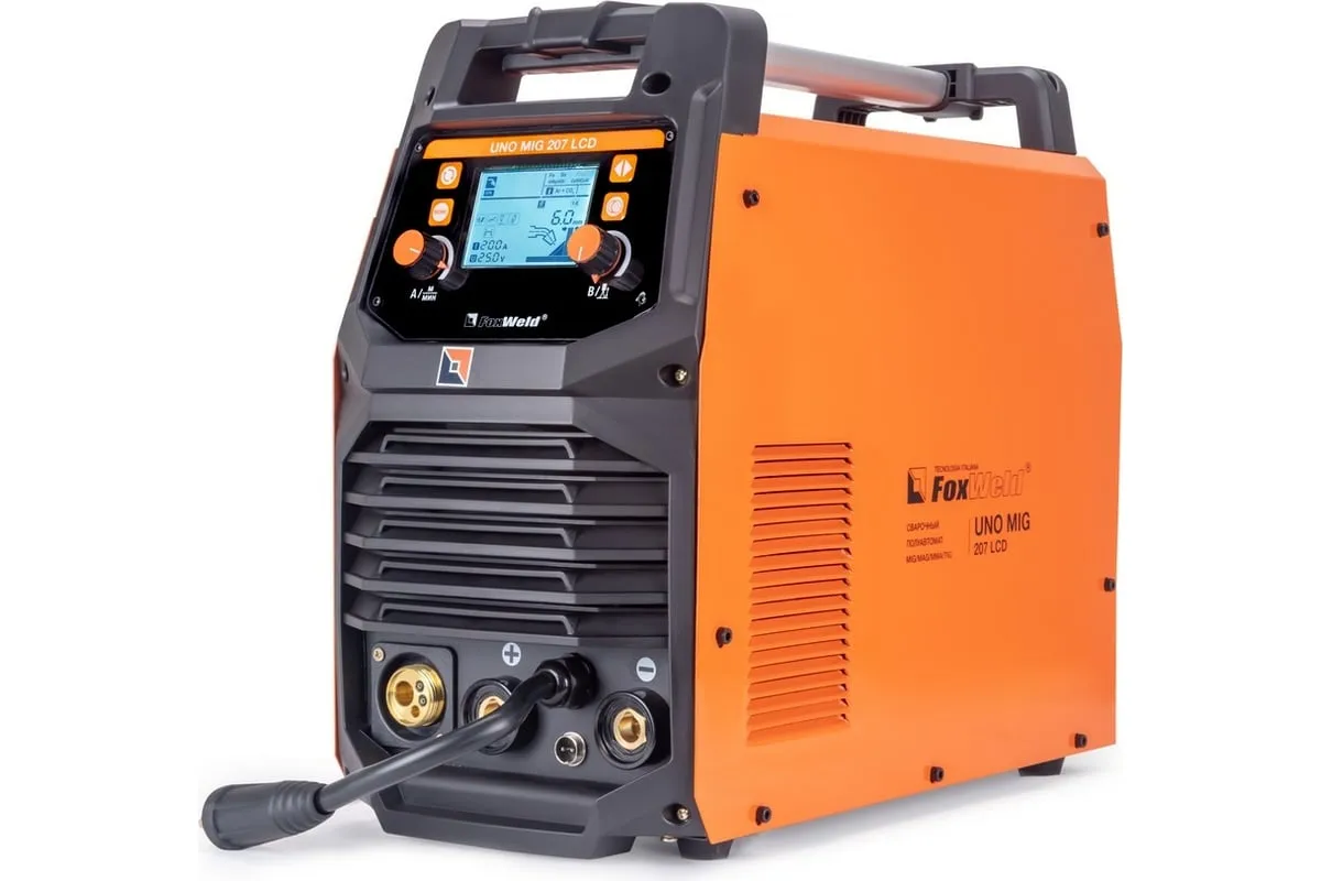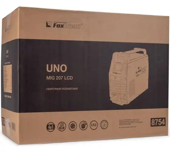 Сварочный полуавтомат Foxweld UNO MIG 207 LCD 8754 – это однофазный аппарат с 4 режимами сварки: MIG/MAG, FLUX, TIG LIFT и MMA с настройкой в ручном или синергетическом режиме, весом 11 кг, который идеально подойдет для