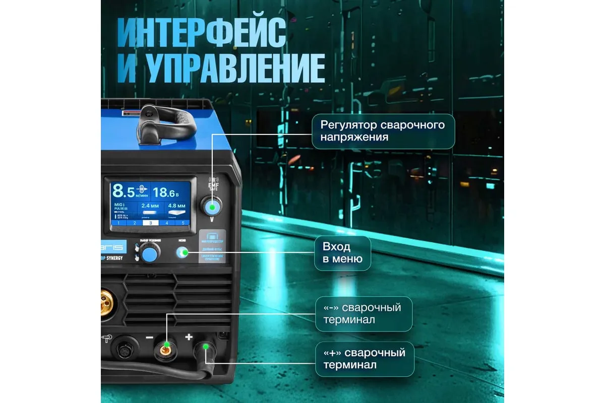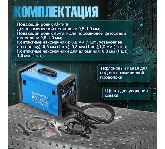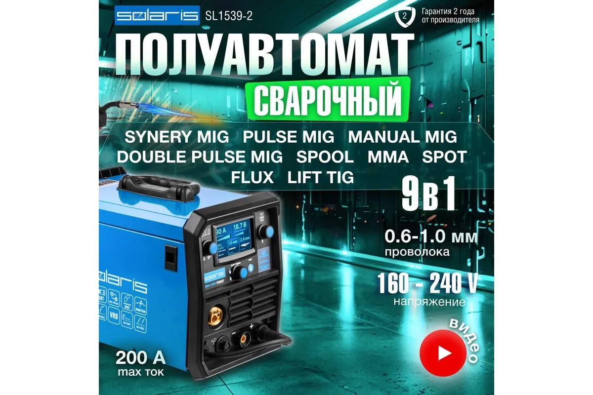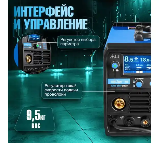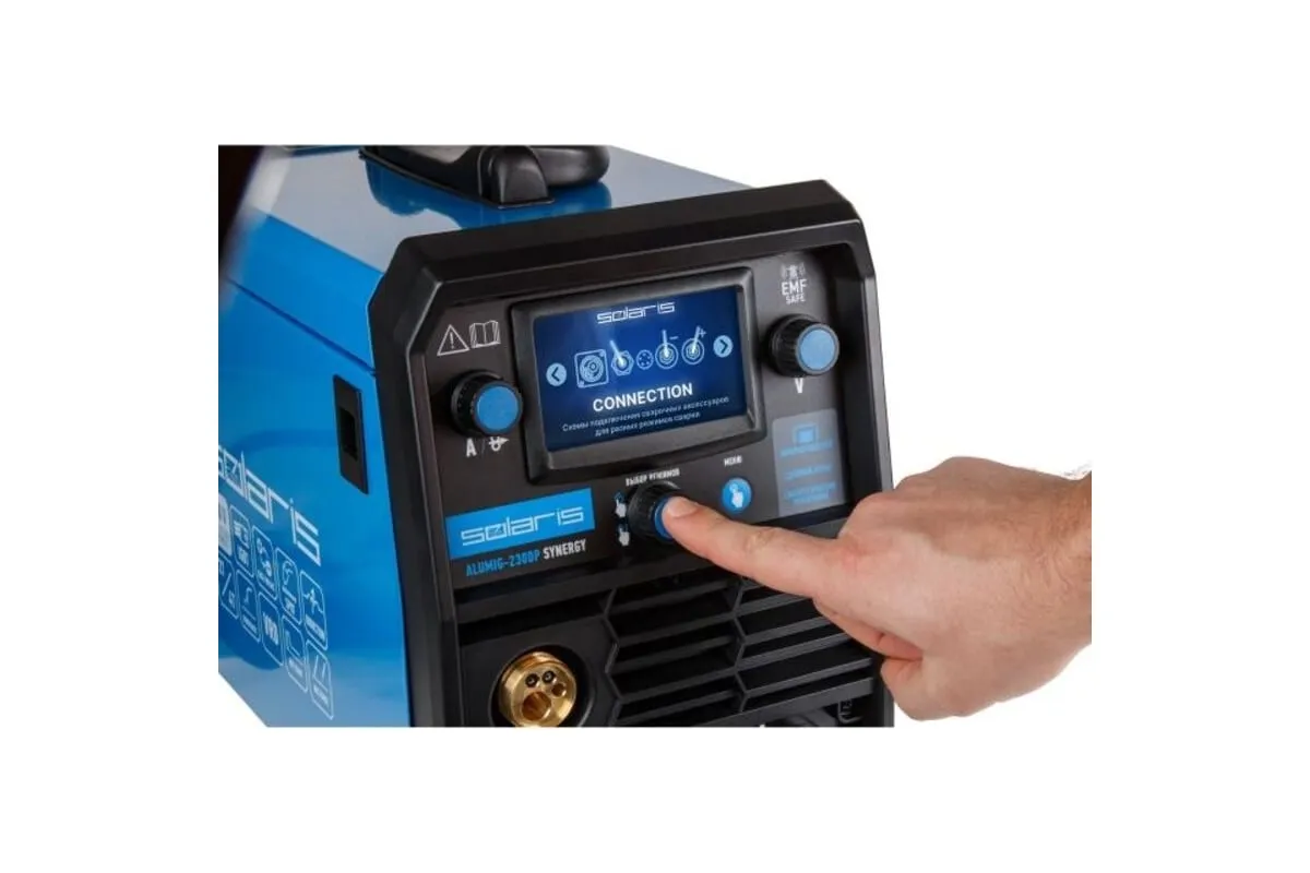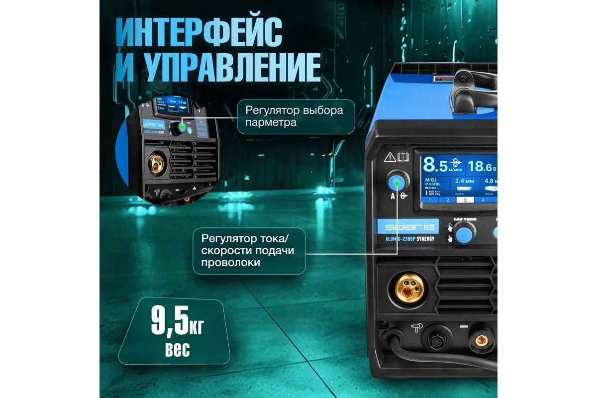 Полуавтомат сварочный SOLARIS ALUMIG-230DP SYNERGY (SL1539-2) обладает рядом преимуществ, которые делают его привлекательным для различных пользователей. Прежде всего, стоит отметить его микропроцессорное управление, что обеспечивает высокую точность и стабильность работы. ЖКИ-дисплей с понятным интерфейсом позволяет даже новичкам легко ориентироваться в настройках аппарата. Синергетическое управление программами делает процесс сварки еще более простым и удобным. Аппарат поддерживает режимы “пульс” и “двойной пульс”, что позволяет получить более качественный и прочный сварной шов. Аппарат также поддерживает полуавтоматическую сварку с ручными настройками и сварку SPOT с возможностью настройки времени сварки. Уникальная функция сварки порошковой проволокой позволяет работать без использования защитного газа, что может быть полезно в некоторых ситуациях. Кроме того, полуавтомат поддерживает ручную дуговую сварку ММА и сварку с помощью горелки SPOOL GUN, которая приобретается отдельно. Также есть возможность выполнять аргонодуговую сварку TIG LIFT с поджигом касанием, для чего потребуется дополнительно приобрести вентильную горелку TIG. SOLARIS ALUMIG-230DP обладает высокой продолжительностью включения, составляющей 60% при температуре окружающей среды 20 градусов Цельсия. Функции горячего старта, форсажа дуги, антиприлипания и безопасного напряжения холостого хода обеспечивают комфорт и безопасность работы.