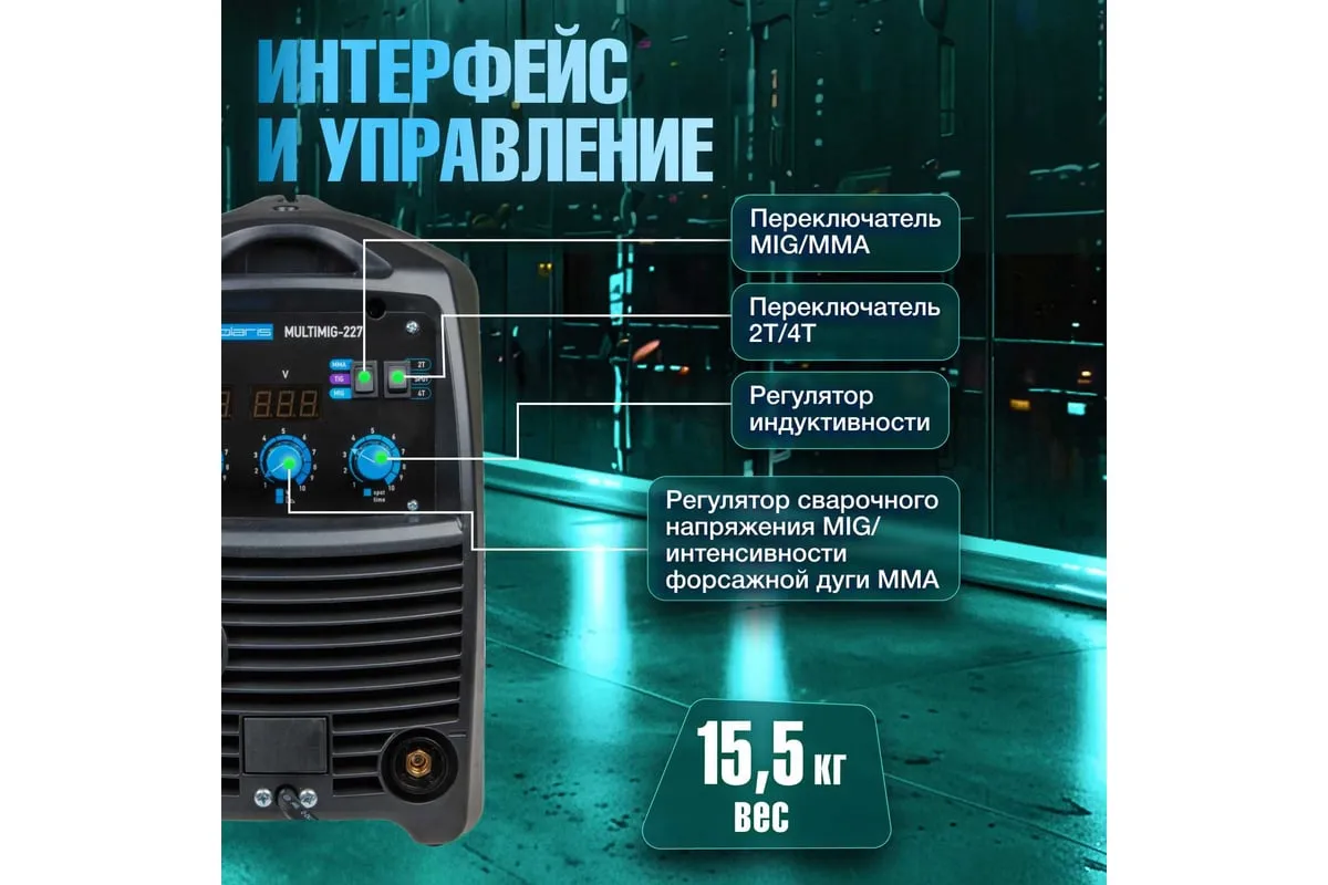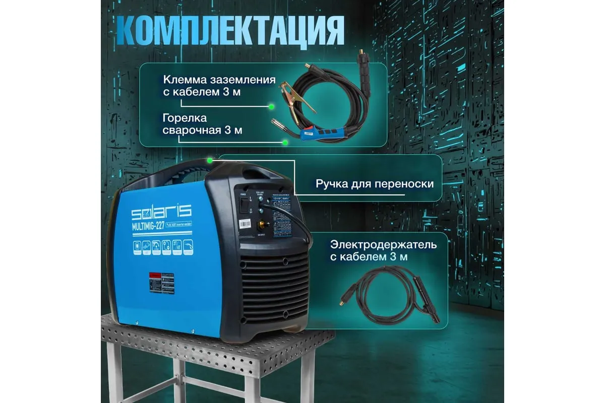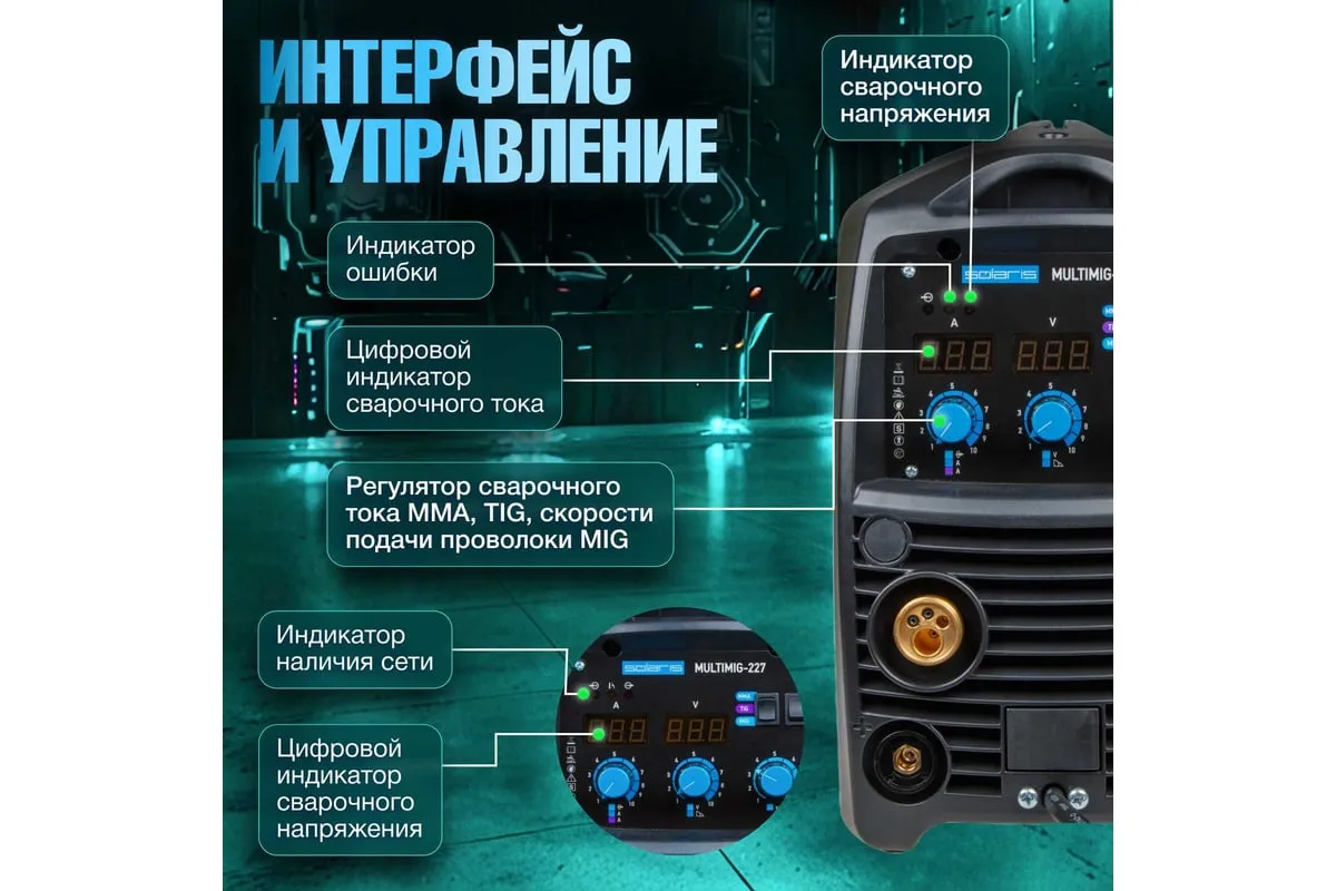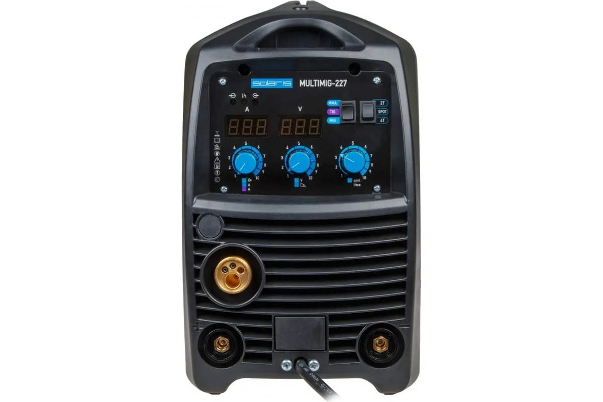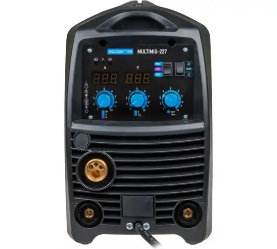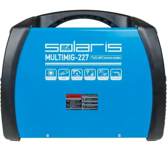 Сварочный полуавтомат SOLARIS MULTIMIG-227обеспечивает качественный сварной шов при равномерной обработке металла. Аппарат имеет высокопрочный корпус с надежной вентиляцией - это повышает ПВ даже при наличии лишь пассивной системы охлаждения. Можно работать даже при высокой внешней температуре около 40 градусов. Аппарат легко настраивать и транспортировать. Дополнительно имеются следующие особенности:
