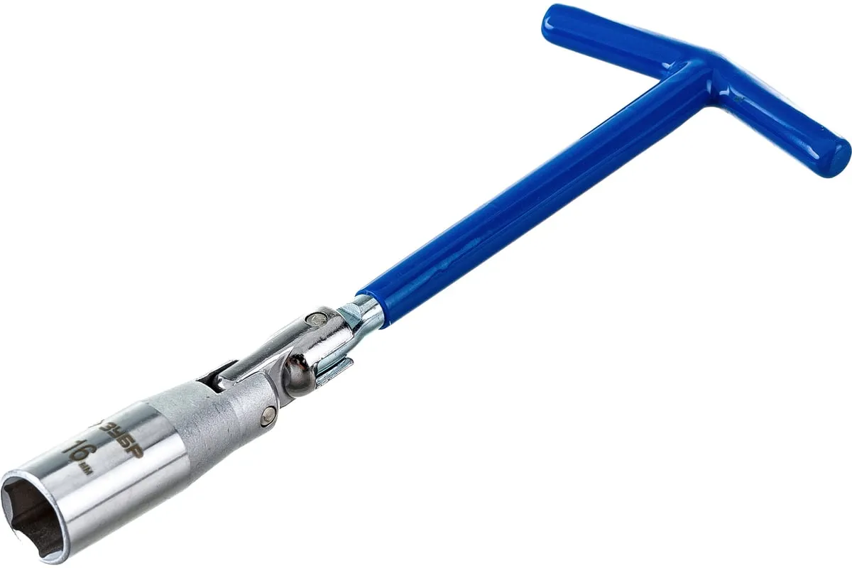 Свечной ключ ЗУБР 27501-16 найдет применение у автомехаников и автолюбителей при самостоятельной замене свечей. Имеет удобную Т-образную рукоятку и шарнирный механизм. Диаметр головки -16 мм.