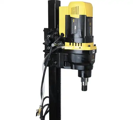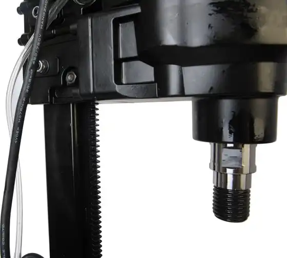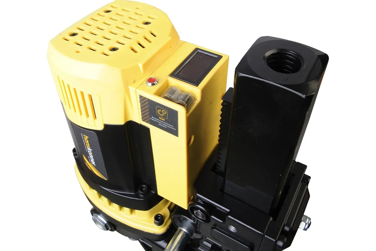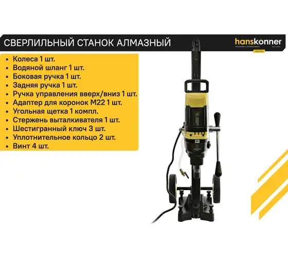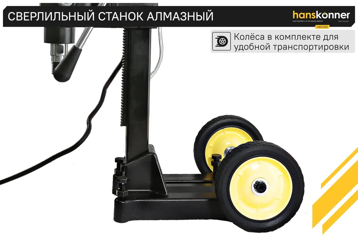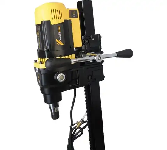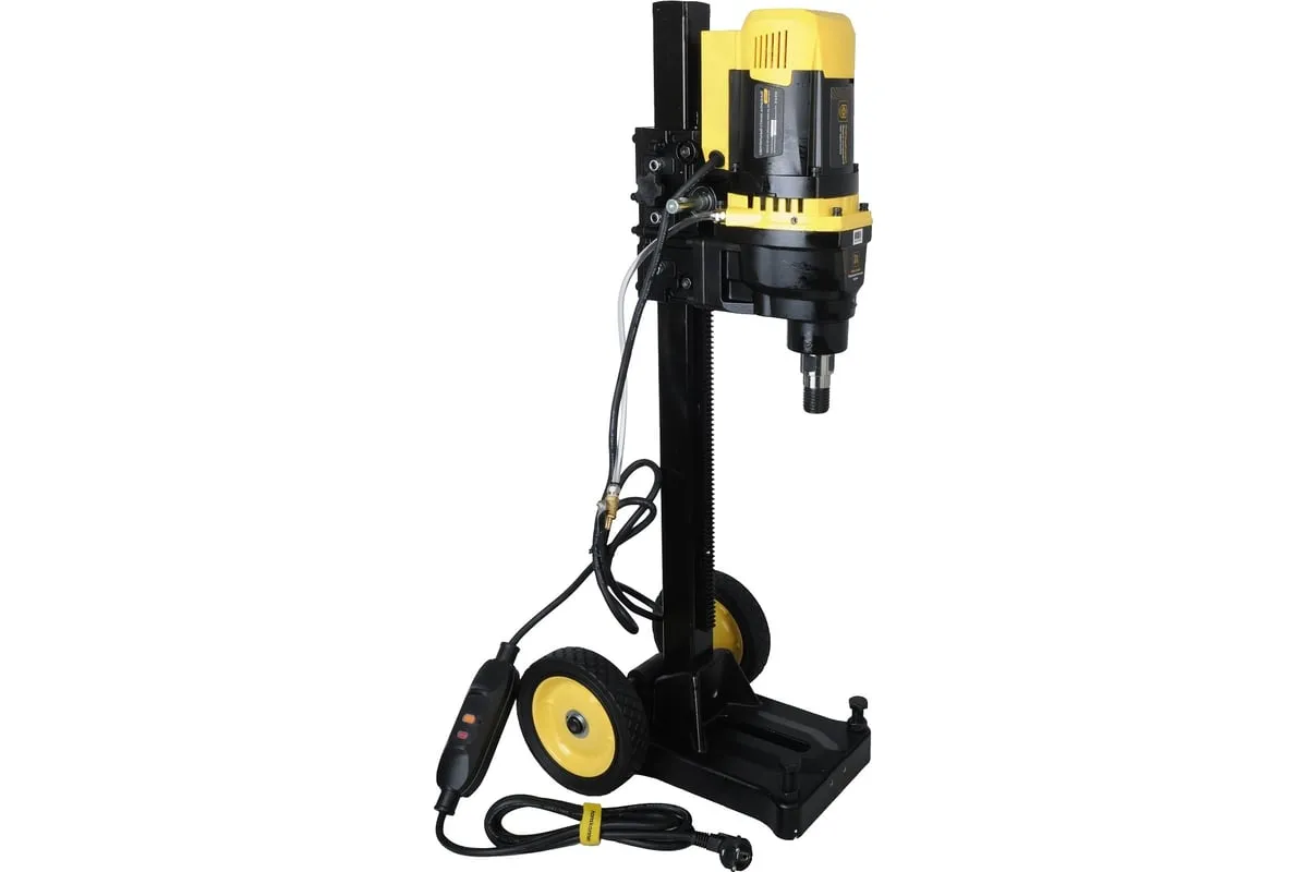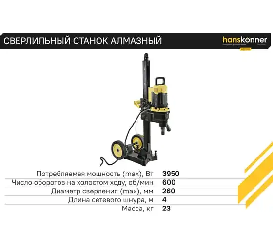 Станок алмазного сверления Hanskonner HBD395 — надежный и мощный электроинструмент для мокрого сверления алмазными коронками отверстий в таких материалах: бетон, железобетон, искусственный и натуральный камень, кирпич. Данная модель оснащена LCD дисплеем, что позволяет контролировать обороты и нагрузку во время выполнения работы. В случае заклинивания коронки сработает предохранительная муфта SafetyClutch и предотвратит поломку механизмов и двигателя, при других видах перегруженности важна встроенная термозащита OverloadProtect, которая отключит машину ввиду возникшей необходимости. Применение в конструкции фирменных японских подшипников NSK повышенного ресурса способствует исправной и долговечной эксплуатации электроинструмента. Удобству в практическом обращении с машиной содействует адаптер алмазных коронок и прочная стальная сверлильная стойка, идущие в комплекте.Морозостойкий резиновый сетевой кабель длинной 4 м.