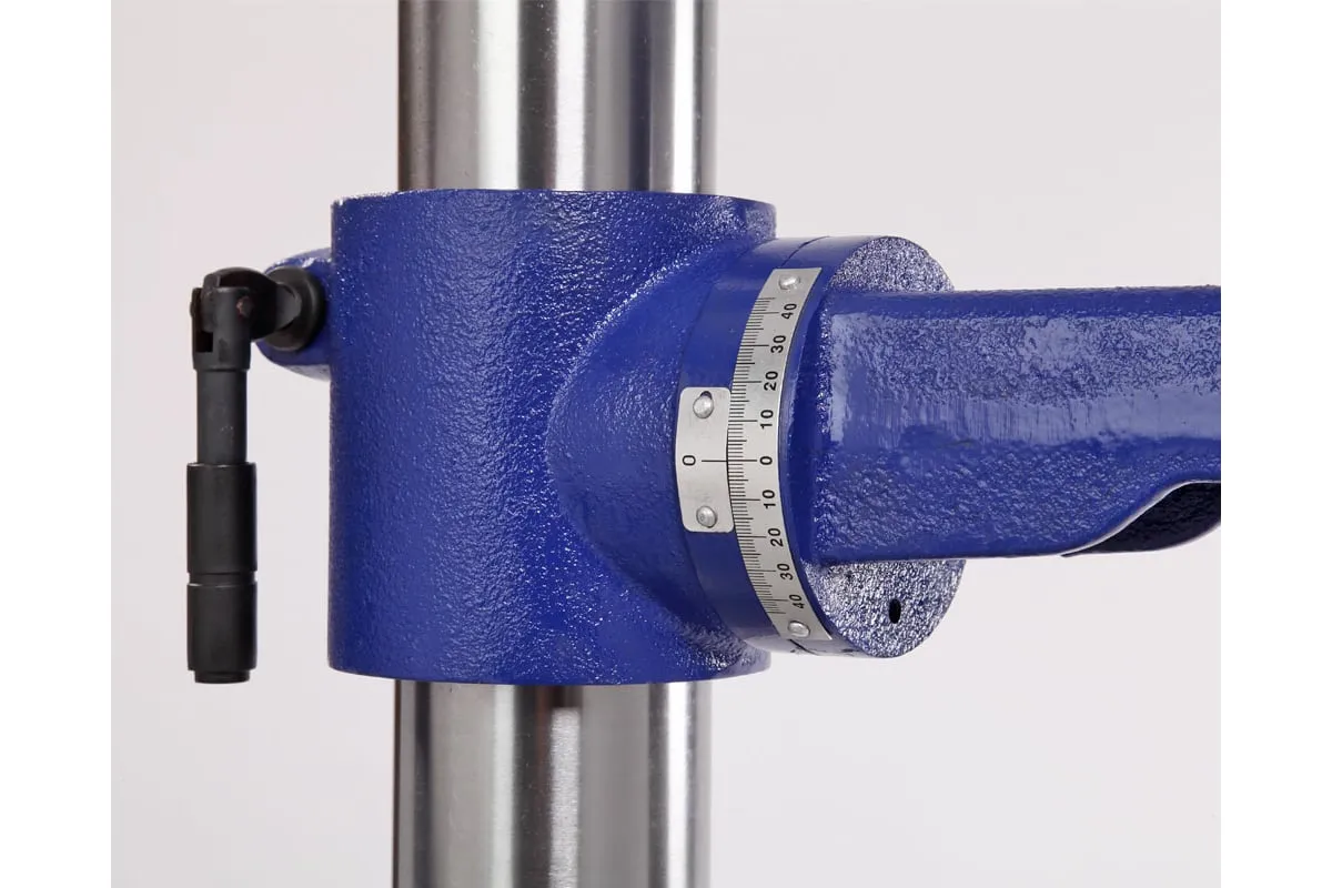 Положение сверлильной головы регулируется вертикально, относительно колонны, горизонтально и по окружности (вращение вокруг своей оси). Круглый стол с шестью пазами можно повернуть в 2-х плоскостях: вокруг колонны или относительно горизонтальной оси.