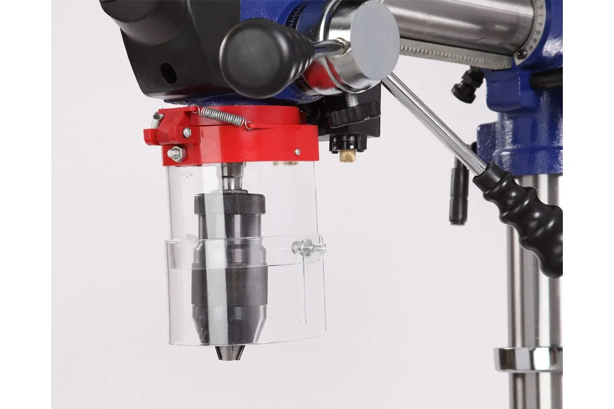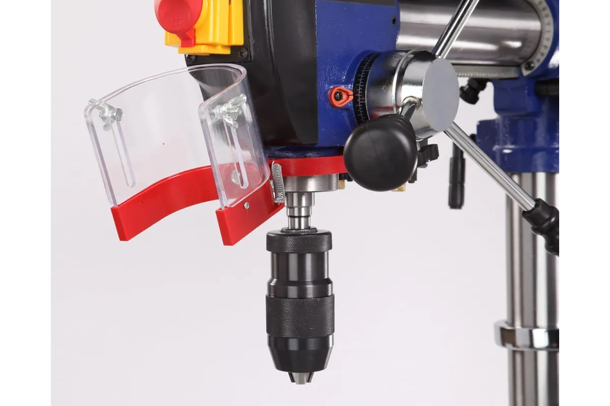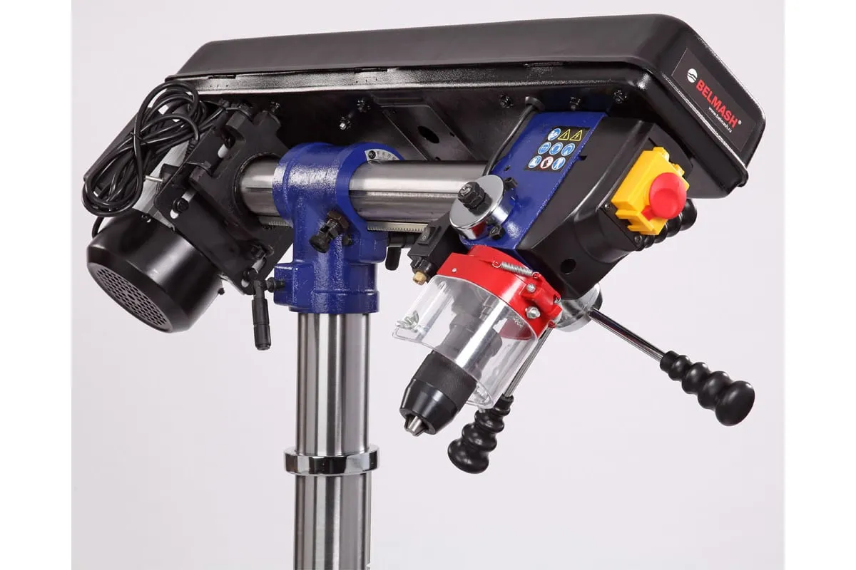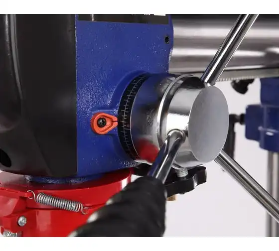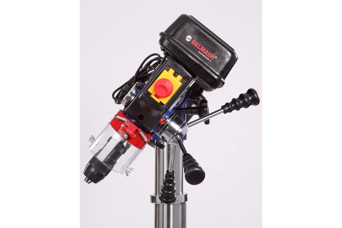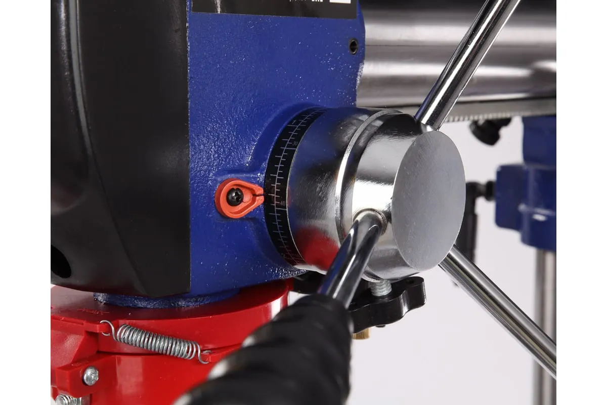 Скорость вращения шпинделя переключается при помощи переброски ремня. Заготовку закрепляют на рабочем столе или основании в зависимости от ее размеров. Шкала на рукоятке глубины подачи указывает на ход пиноли шпинделя.