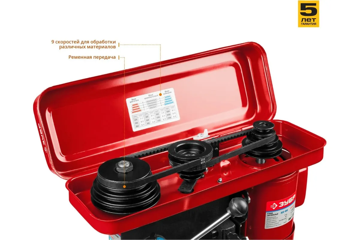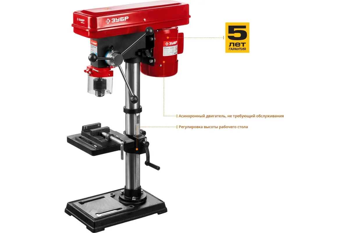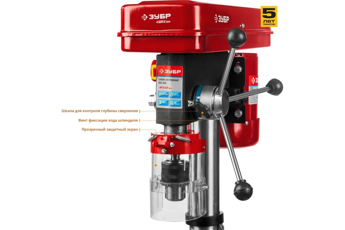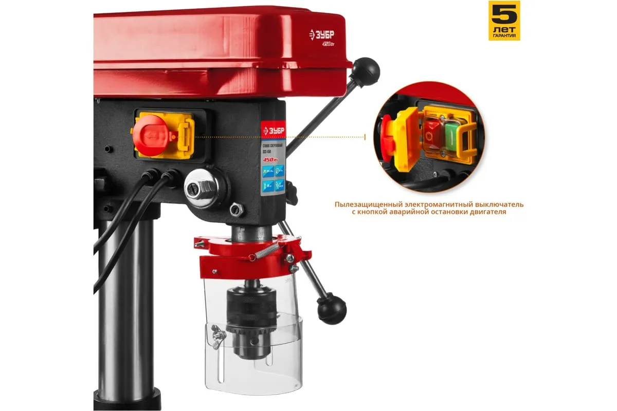 Сверильный станок ЗУБР ЗСС-450 предназначен для точечного сверления и обработки отверстий в заготовках из металла или других материалов. Деталь можно обрабатывать под нужным углом, наклоняя или перемещая по вертикали стол. Станок снабжен защитным экраном, который исключает вылетание стружки в оператора, гарантируя безопасную работу. Данная модель не нуждается в дополнительном обслуживание.