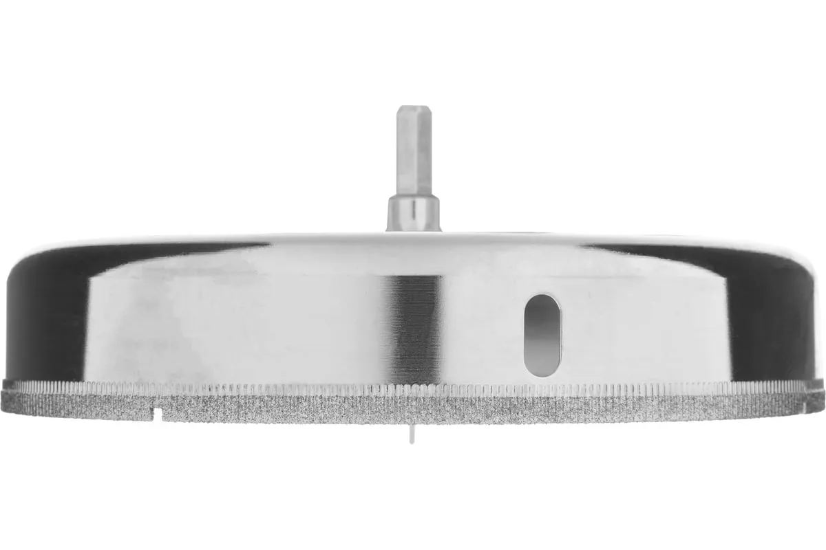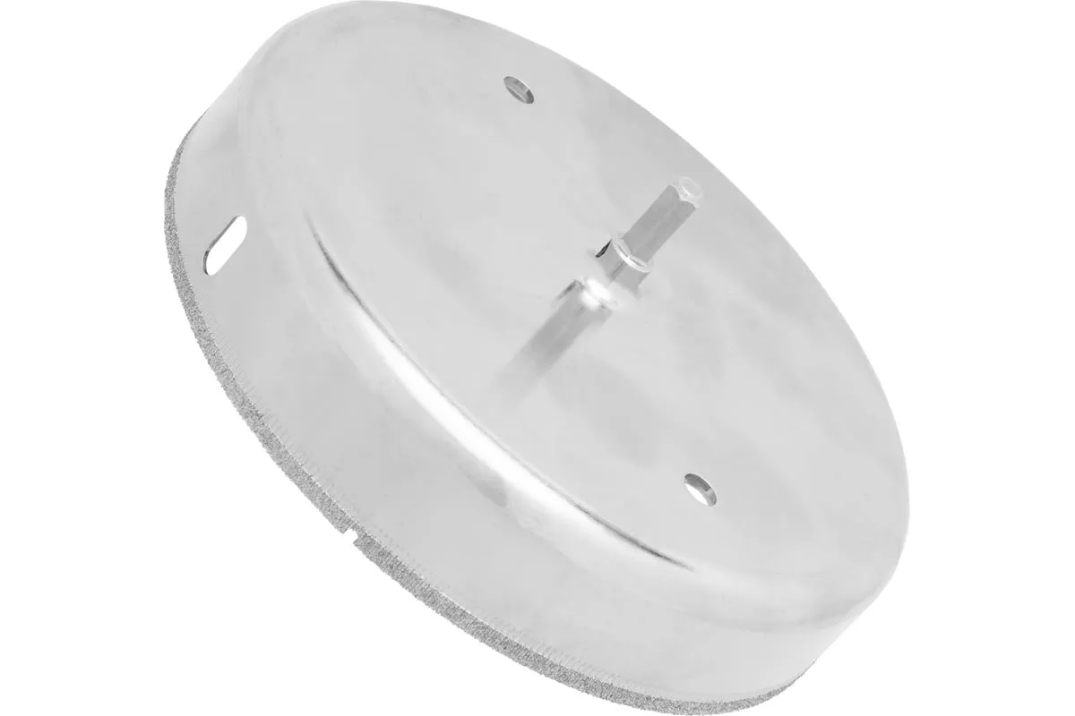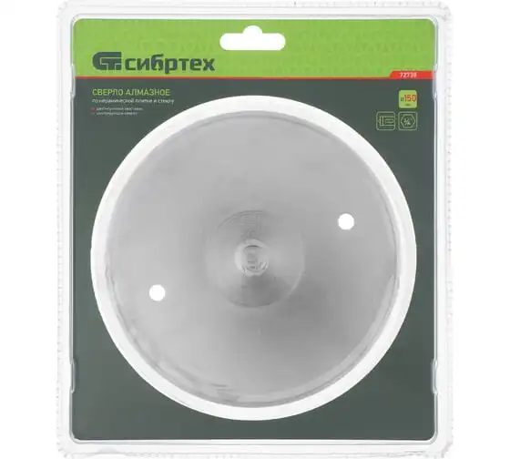 Сверло Сибртех 72738, 150 х 55 м, с 6-гранным хвостовиком и центрирующим сверлом позволяет сверлить отверстия в керамической плитке и стекле. Его устанавливают на дрель или шуруповерт, рекомендуемый диапазон рабочих оборотов 350-700 об/мин. Благодаря 6-гранному хвостовику сверло не проворачивается в патроне электроинструмента. После заглубления алмазной коронки на 1-2 мм рекомендуется снять центрирующее сверло, это поможет увеличить его ресурс. Применение водяного охлаждения значительно повышает срок службы оснастки. Ее используют при выполнении бытовых ремонтных и отделочных работ.