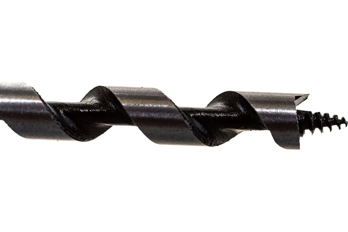 Спиральное сверло по дереву ГРАНИТ 708220. Самозатягивающееся резьбовое острие сверла, наружные режущие кромки и главная режущая кромка. Отводит стружку без забивания, даже при работе с влажной древесиной.