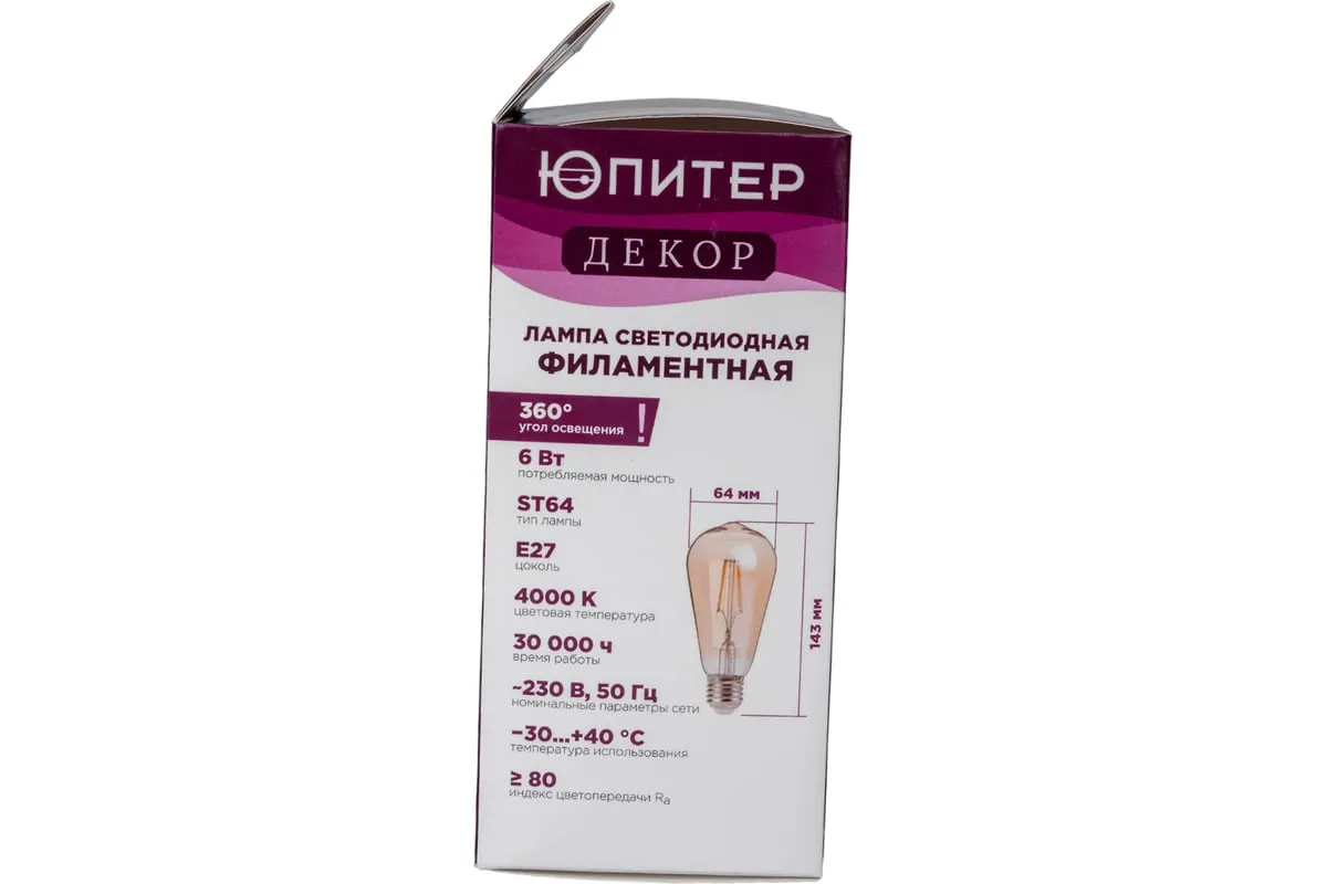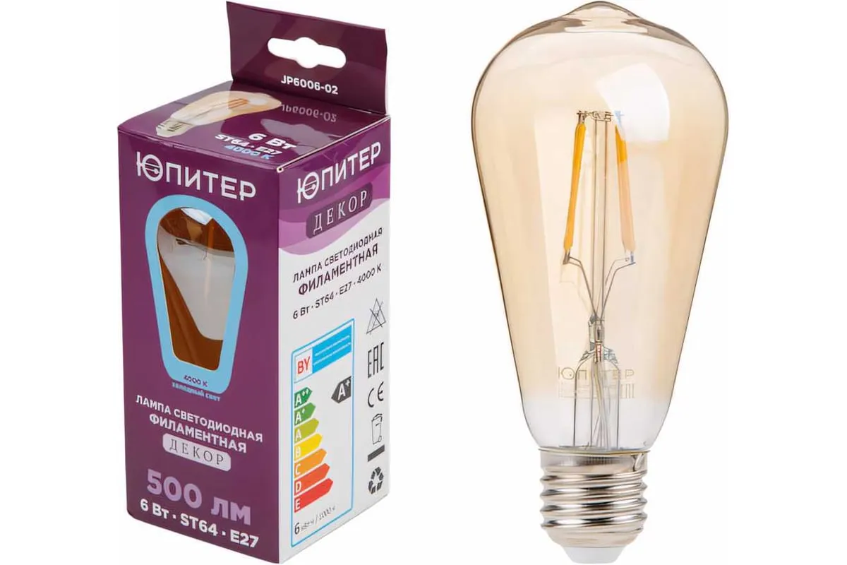 Светодиодная филаментная лампа ЮПИТЕР E27 ST64 6 Вт 4000К JP6006-02