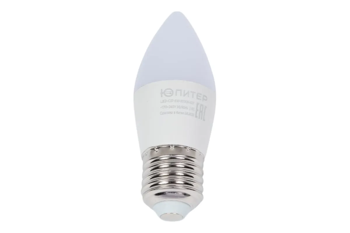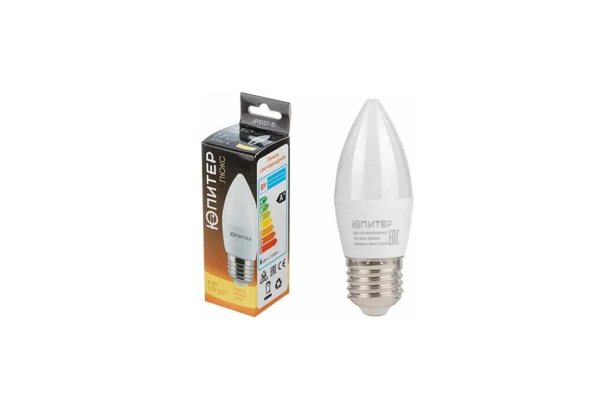 Светодиодная лампа ЮПИТЕР E27 Люкс C37 6 Вт 3000К JP5137-31 обеспечивает равномерный поток света без пульсации и устойчивость к перепадам напряжения.Алюминиевый радиатор в пластиковом кожухе обеспечивает низкую температуру нагрева за счёт отвода тепла от основных частей лампы продлевая ее срок службы.Благодаря высокому индексу цветопередачи объекты в свете лампы выглядят натурально, видимый цвет освещаемого тела соответствует естественному.Цветовая температура 4000 К - нейтральный, естественно белый цвет для жилых комнат, кухни, рабочих мест, офисов, уголков для чтения.Лампы Юпитер не создают электромагнитных помех другим устройствам. Также соответствуют всем стандартам по энергобезопасности (белорусские сертификаты таможенного союза).Класс А+ энергоэффективности гарантирует максимальную световую отдачу при минимальных затратах на энергопотребление (белорусский сертификат).На каждую лампу нанесена маркировка, необходимая для розничной торговли (в соответствии с СТБ 1400-2009 и техническими регламентами).