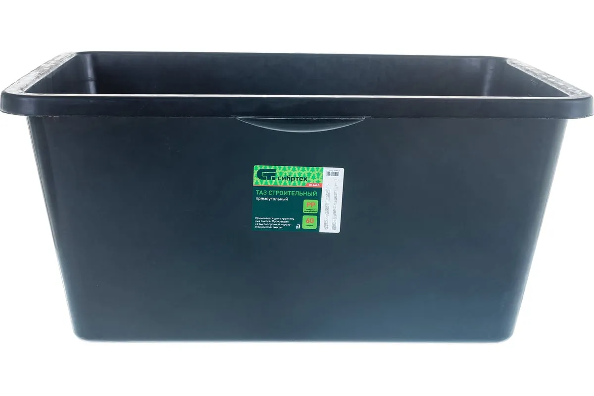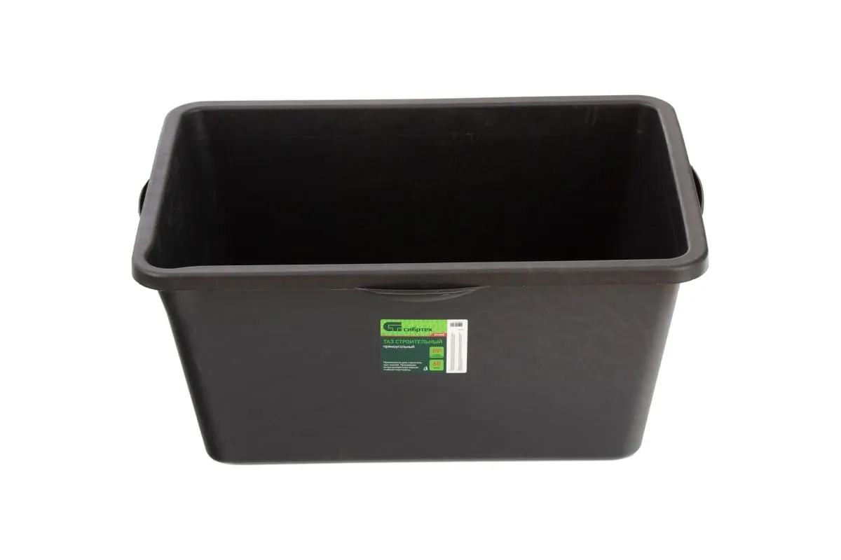 Прямоугольный строительный таз Сибртех 814445 объемом 60 л используется для приготовления штукатурных, шпаклевочных, красящих, клеевых растворов при проведении ремонтных и отделочных работ. Пригодится таз и в быту — в нем удобно хранить и перемещать сыпучие материалы.