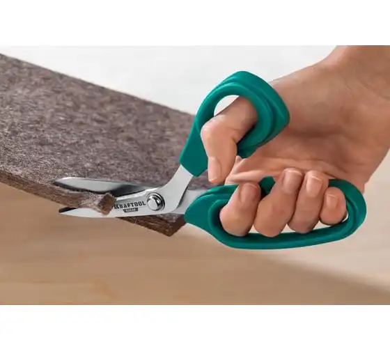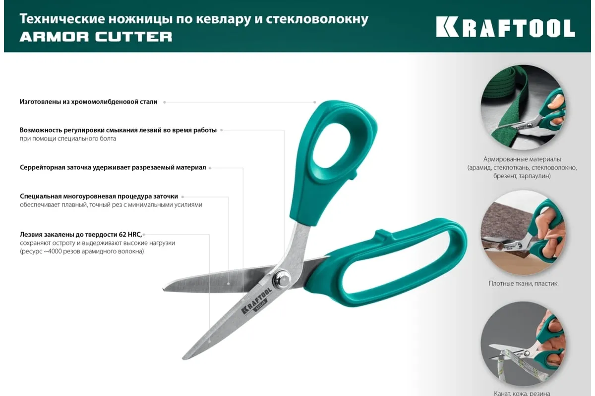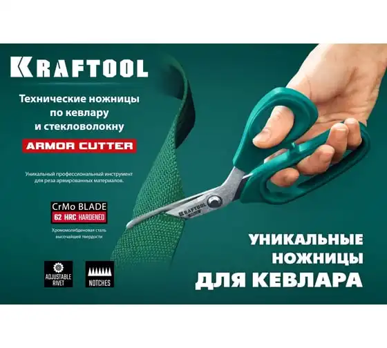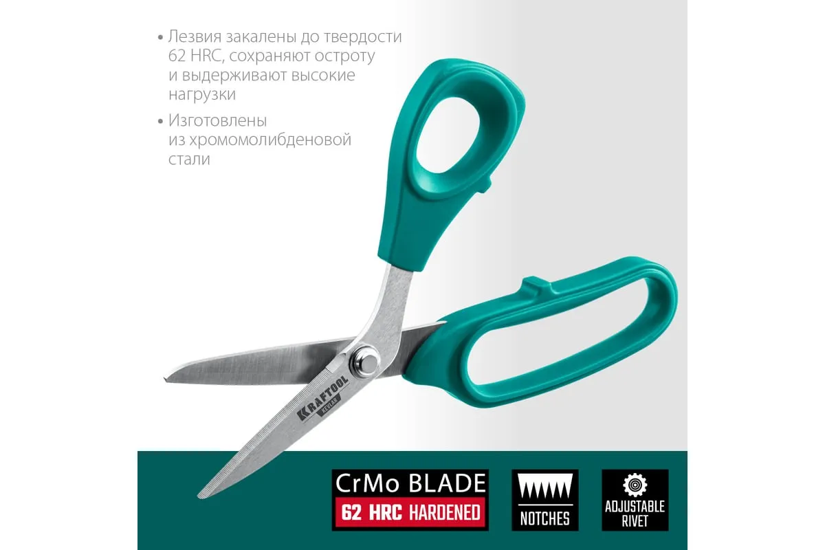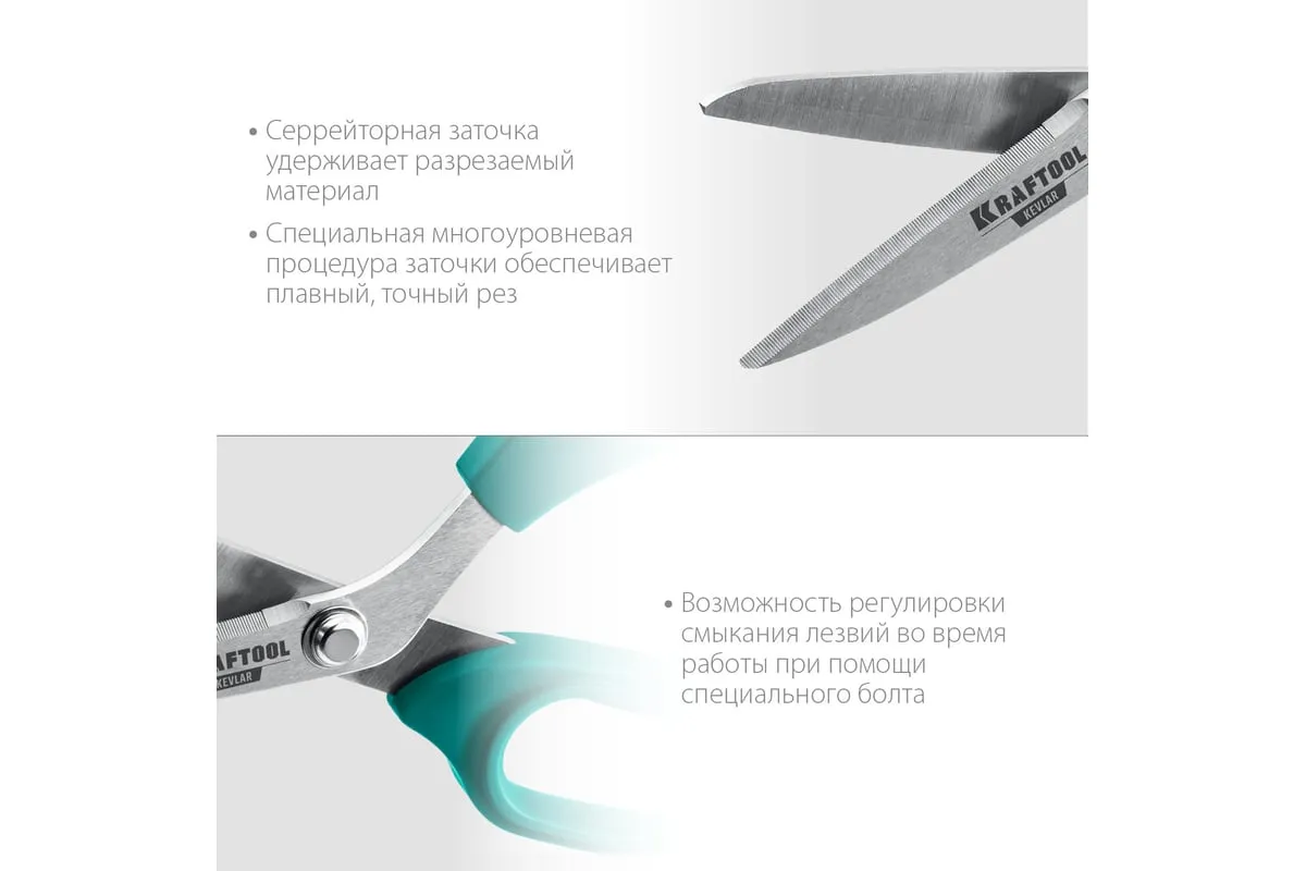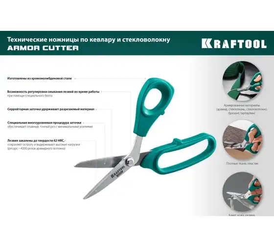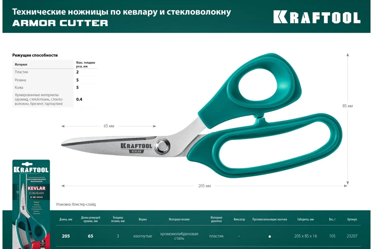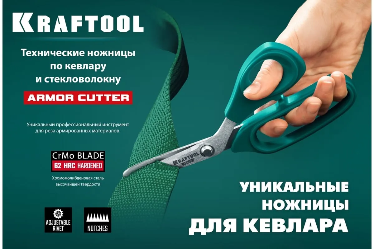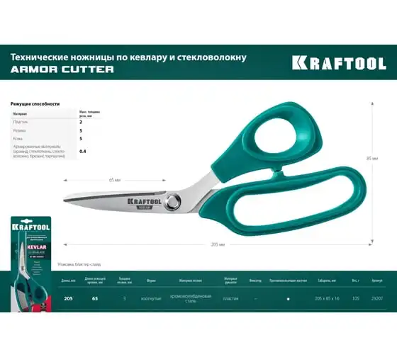 Технические ножницы по кевлару и стекловолокну KRAFTOOL Kevlar 205 мм 23207 – уникальный профессиональный инструмент для реза армированных материалов: кевлар (арамид), стеклоткань, стеклообои, стекловолокно, изоляционные материалы, тент, брезент, тарпаулин.