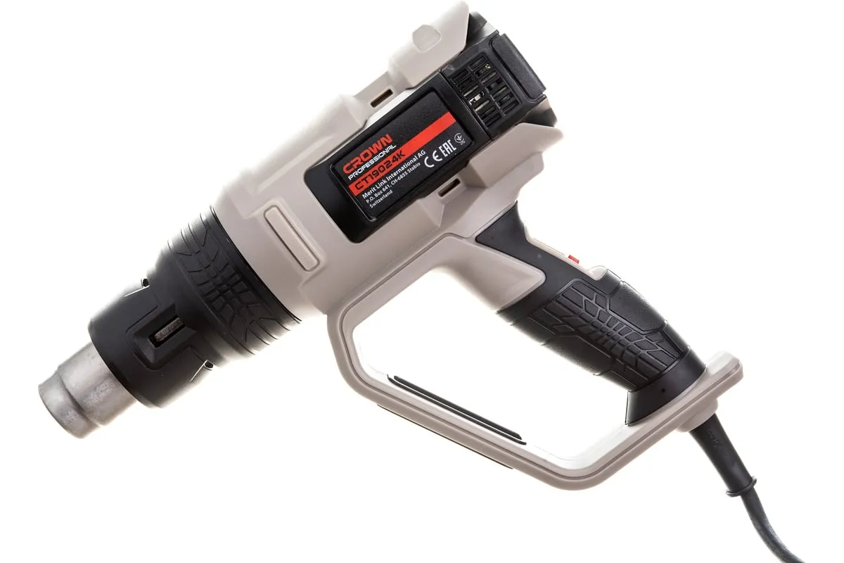 Технический фен Crown CT19024K пригодится для удаления старых лакокрасочных покрытий, оттаивания замерзших поверхностей и т.д. Имеет двухступенчатый регулятор температуры и скорости воздушного потока.