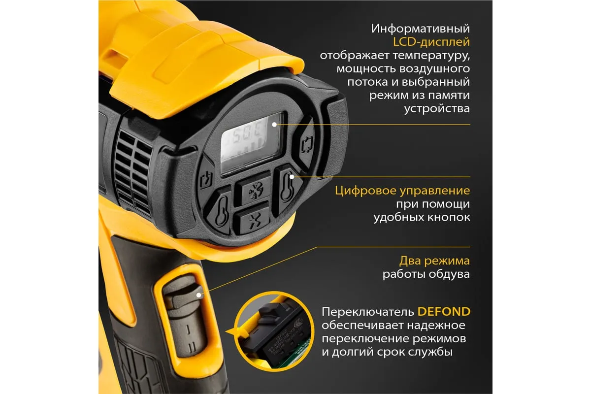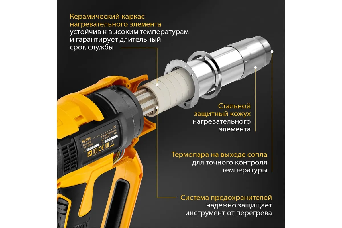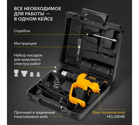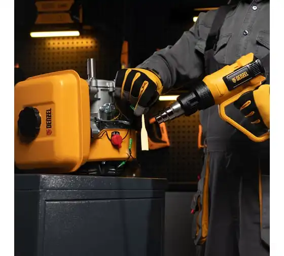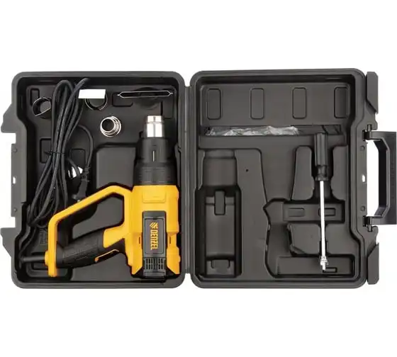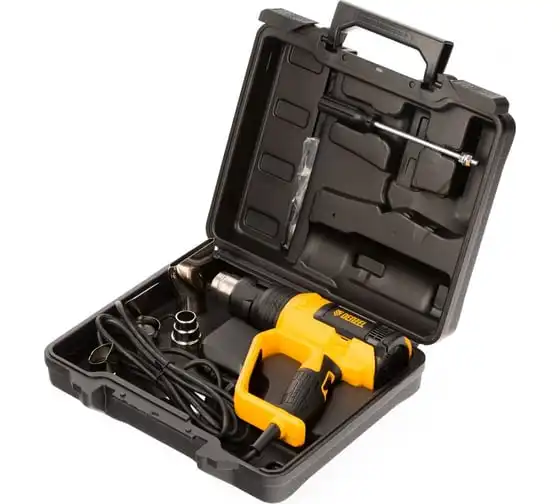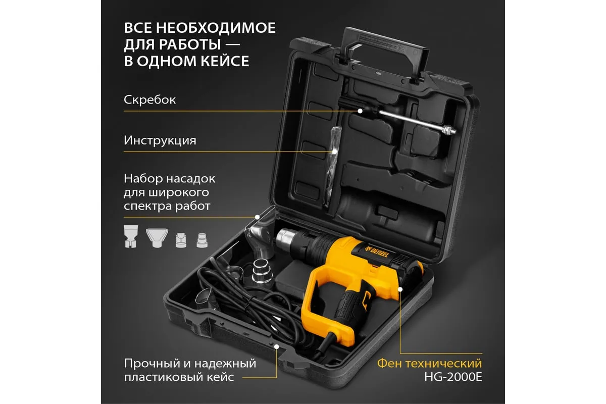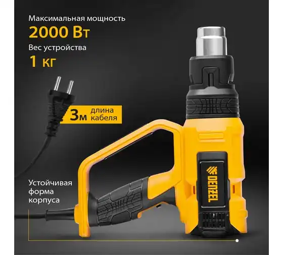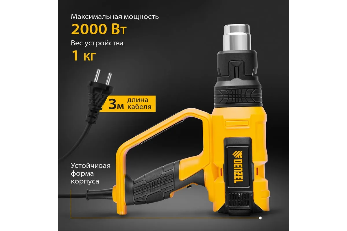Технический фен DENZEL HG-2000E 28007 используется для нагрева и сушки различных объектов.