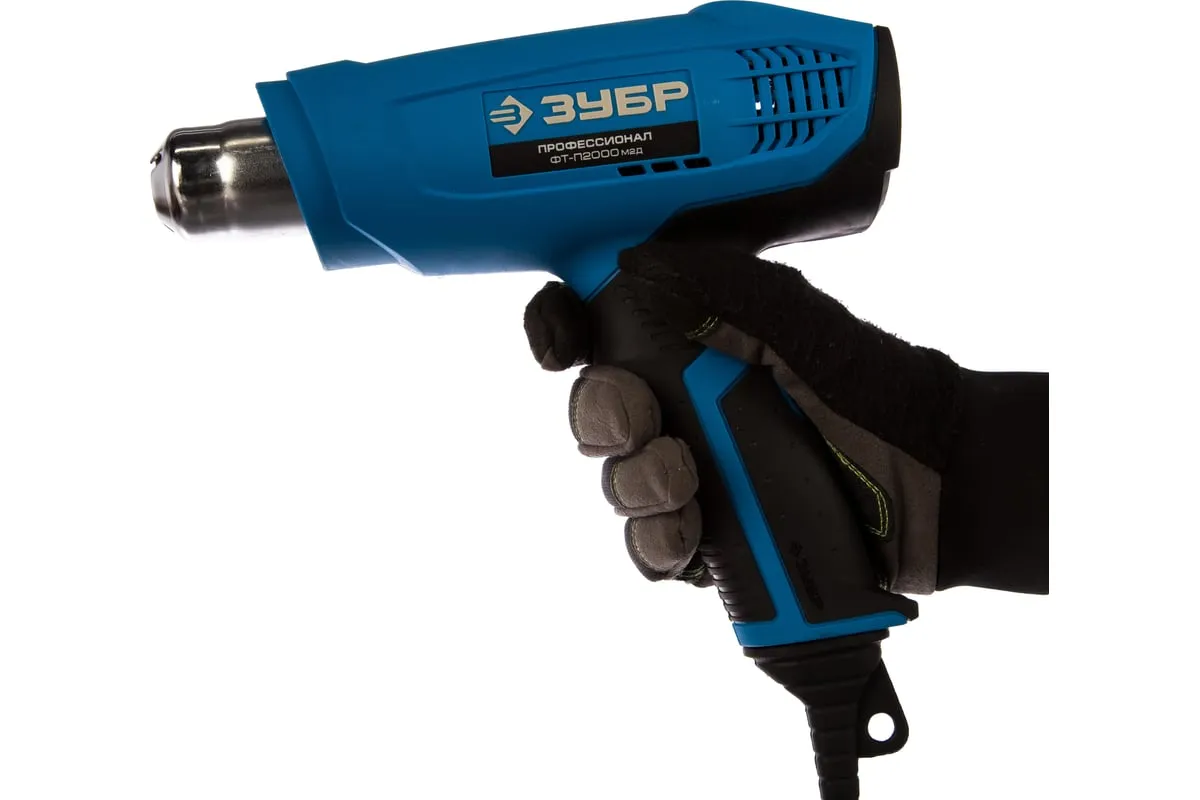 Технический фен ЗУБР ПРОФЕССИОНАЛ ФТ-П2000 М2Д оснащен усовершенствованным нагревательным элементом. Предназначен для генерации горячего воздуха. Пригодится при сушке лакокрасочных покрытий и клеевых соединений, пайки, лужения, размораживания труб. Модель имеет2 режима работыс разной температурой и потоком воздуха. Наличие ЖК-дисплеяпозволяет выполнять точную установку температурыи контролировать ее в процессе выполнения рабочих операций. Ступень холодного обдува плавно охлаждает нагревательный элемент после остановки инструмента, что многократнопродлевает его ресурс. 4 различные насадки в комплектеподходят для различных задач: от точечного нагрева до сушки больших площадей.