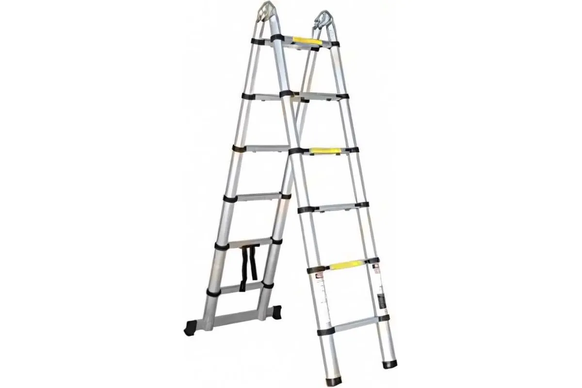 Телескопическая алюминиевая лестница STARTUL 2х8 ступеней ST9733-050 используется как стремянка и в качестве приставной лестницы.