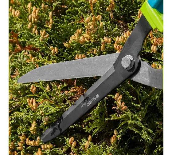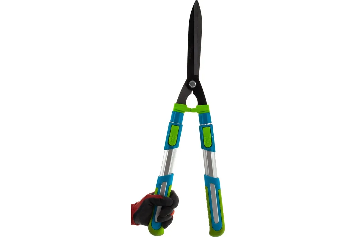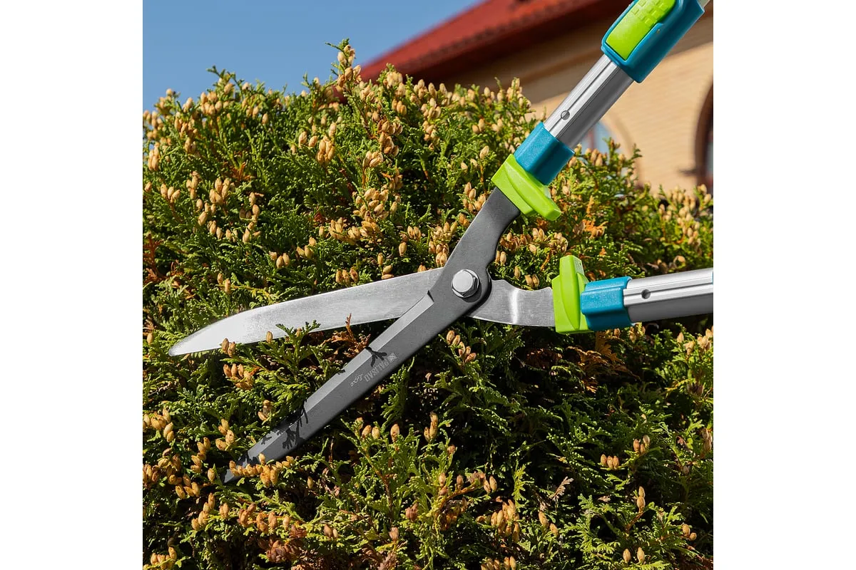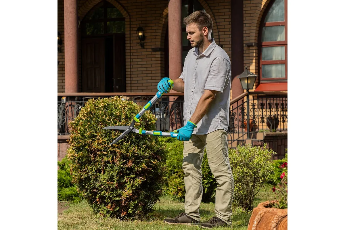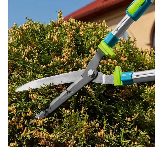 Телескопический кусторез PALISAD LUXE 60592 предназначен для обрезки крон деревьев и кустарников. Работает с молодыми побегами диаметром до 10 мм. Лезвия инструмента выполнены из инструментальной стали. Тефлоновое покрытиеобеспечивает защиту от коррозии. Двухкомпонентные телескопические рукоятки не скользят в руке, чтоспособствует удобному захвату. Они могут удлиняться с 640 мм до 820 мм.