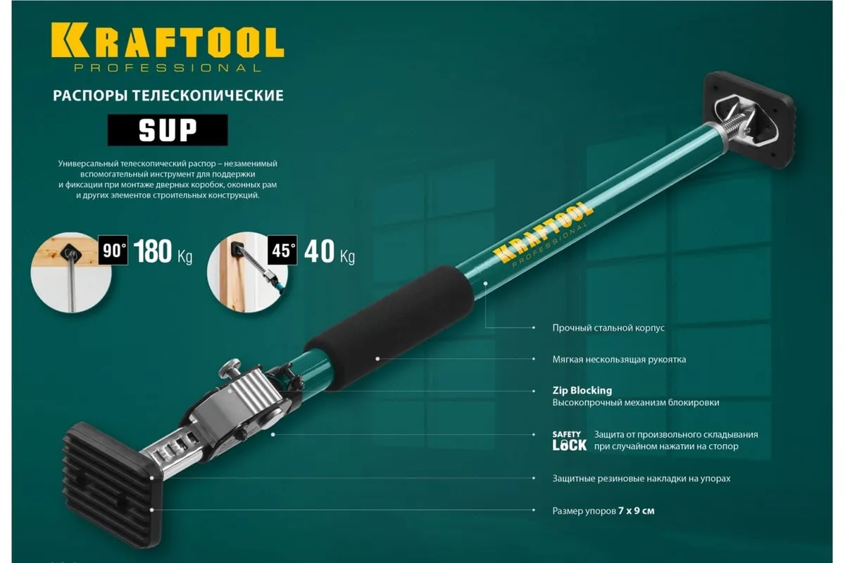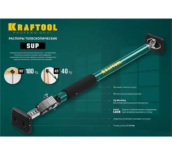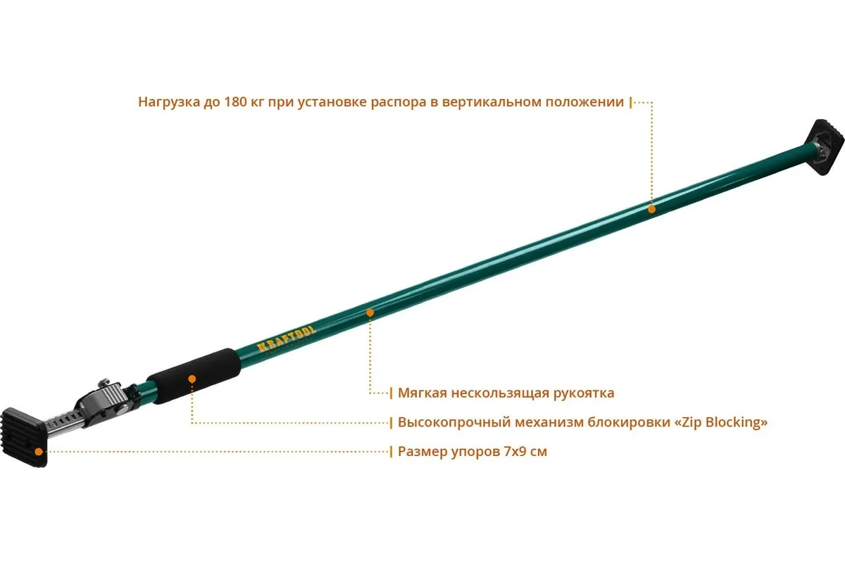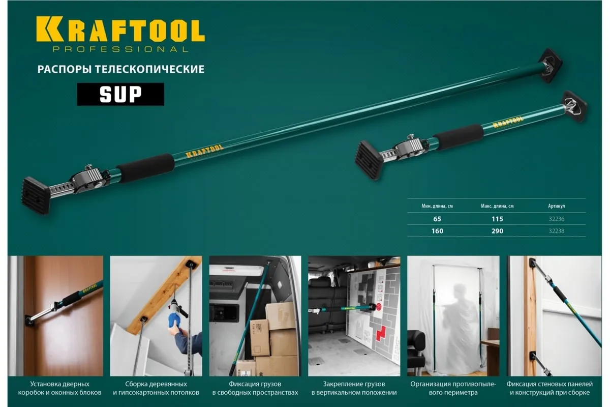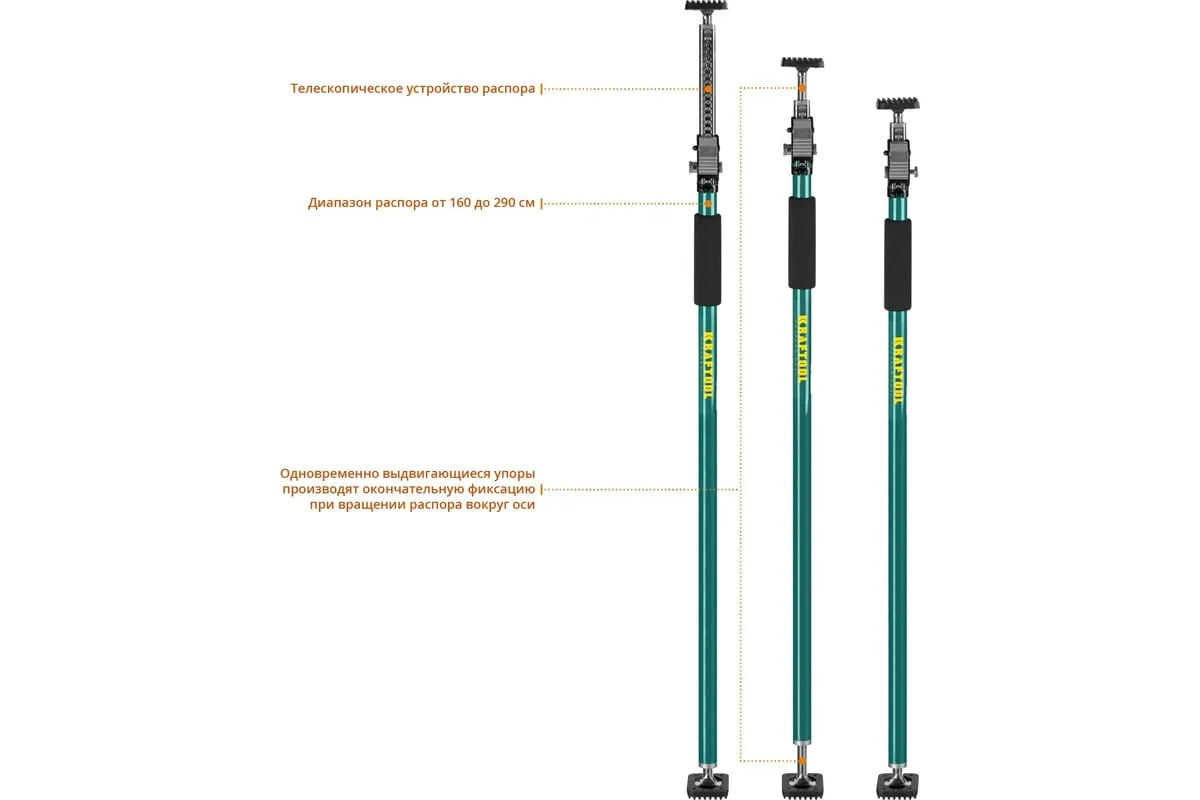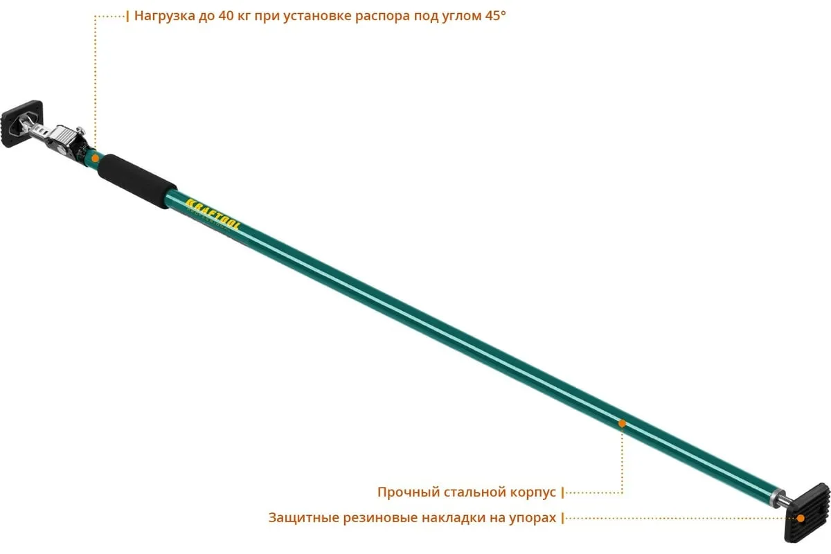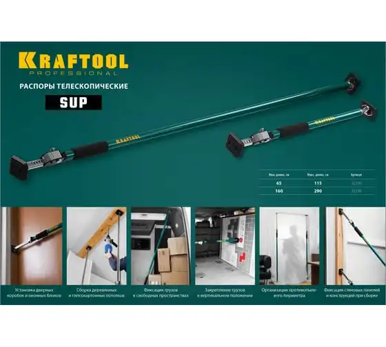 Телескопический распор KRAFTOOL SUP-3 160-290 см 32238 предназначен для поддержки и фиксации. Возможность упора под различными углами. Защита от складывания. Противоскользящий резиновый упор не повреждает поверхность. Быстрая и простая установка. Используется при транспортировке в автомобиле, при установке дверей, а так же при строительных работах. Диаметр штанги - 30 мм