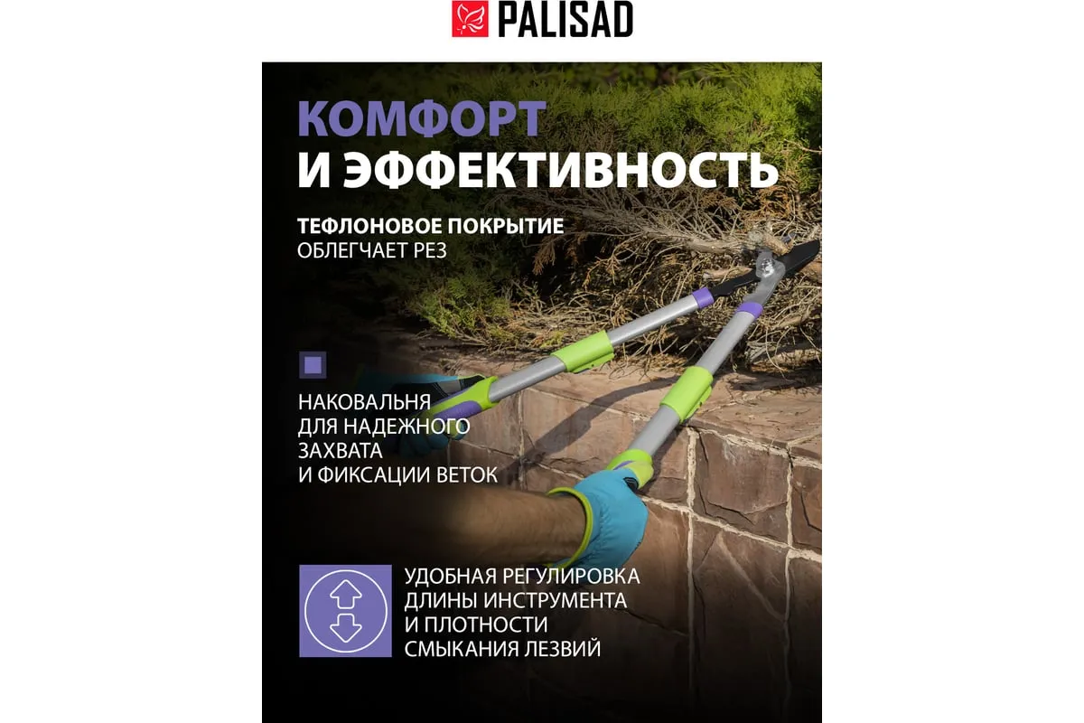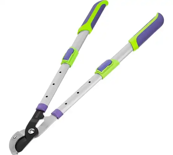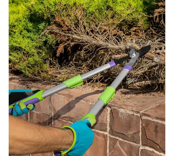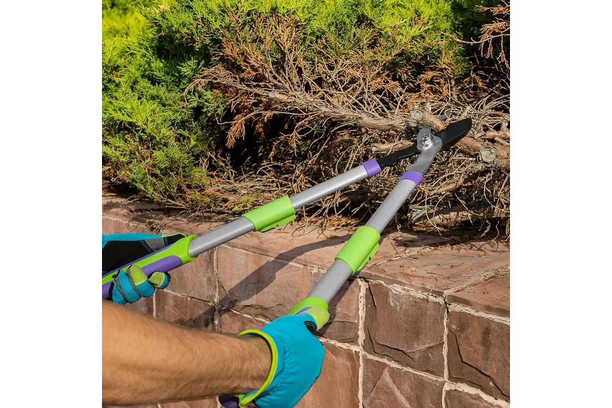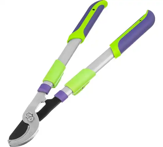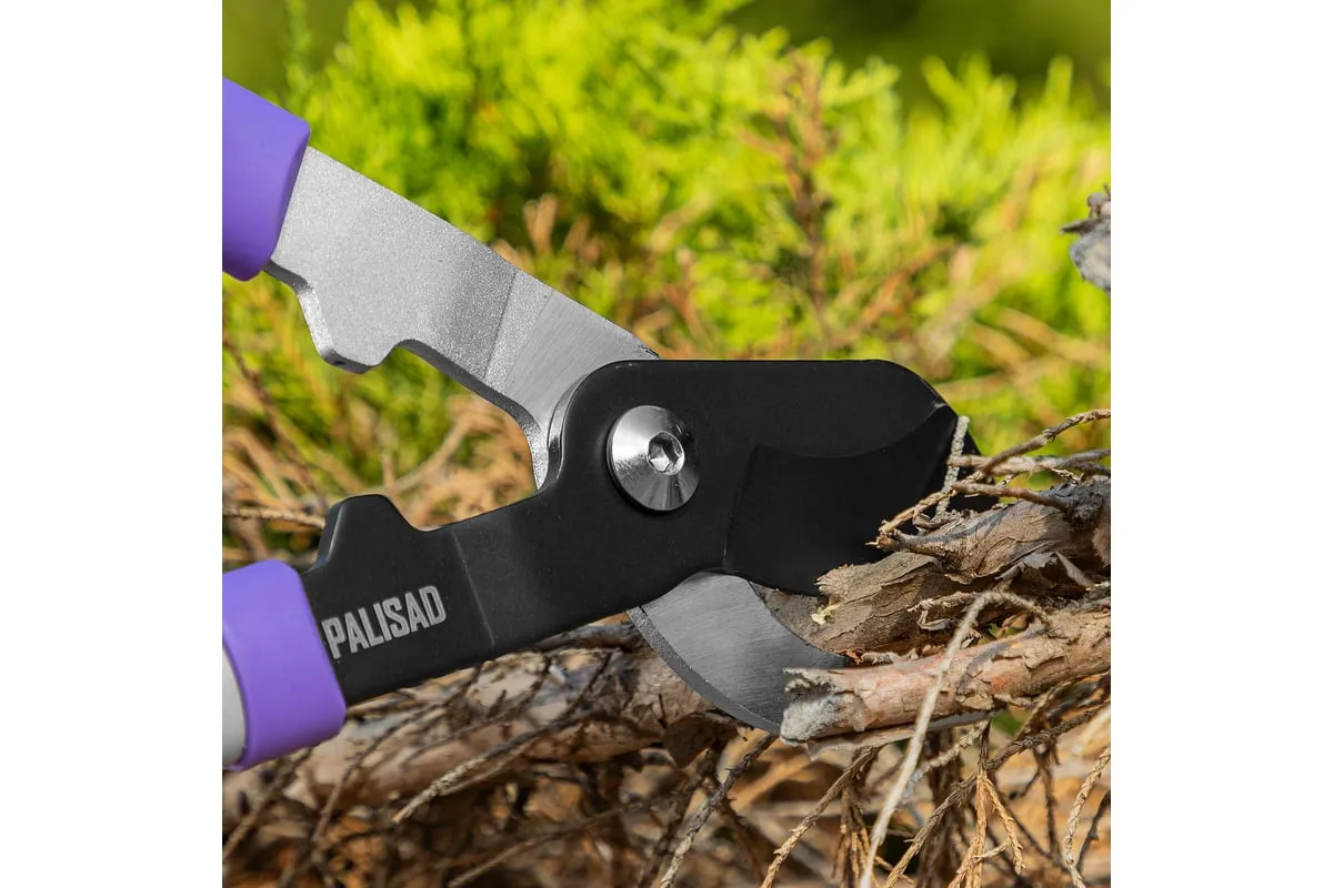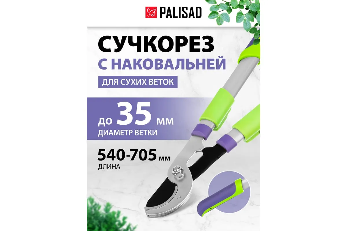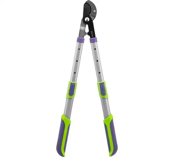 Сучкорез с наковальней Palisad 60596 имеет телескопические стальные обрезиненные рукоятки, способные увеличить длину инструмента с 540 до 705 мм. Используется для работы двумя руками и позволяет срезать засохшие и увядшие ветки толщиной до 35 мм, расположенные в труднодоступных местах. Режущее лезвие с тефлоновым покрытием испытывает пониженное трение, поэтому успешно справляется с жесткой древесиной. Кроме того, оно устойчиво к образованию коррозии. Инструмент будет полезен для ухода за дачным участком.