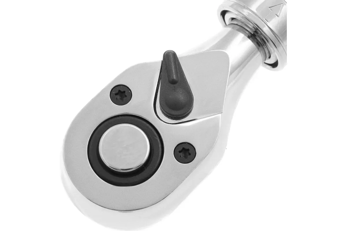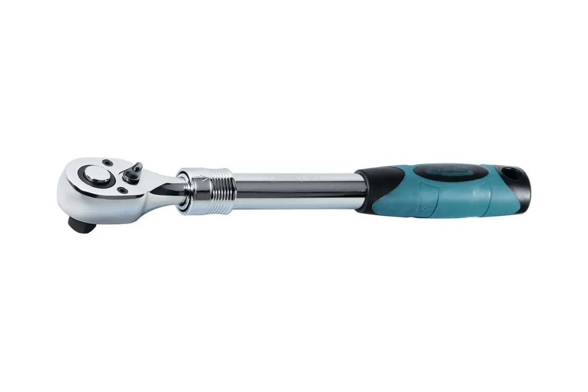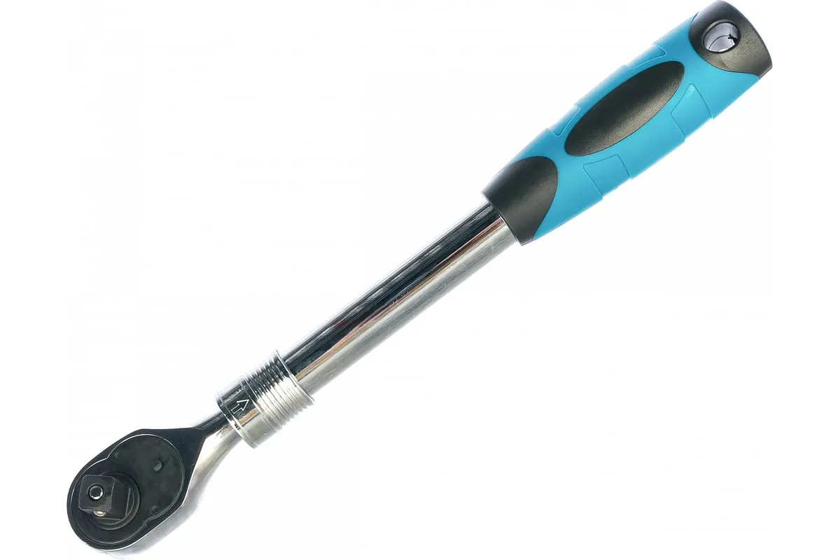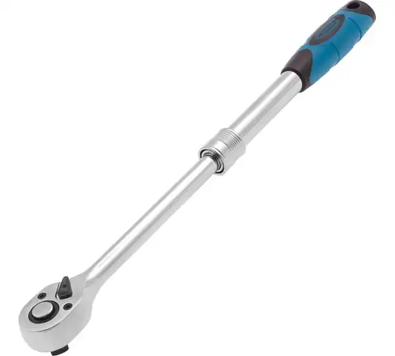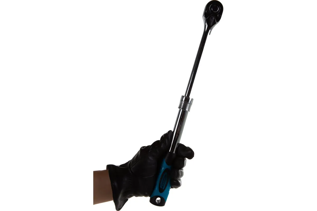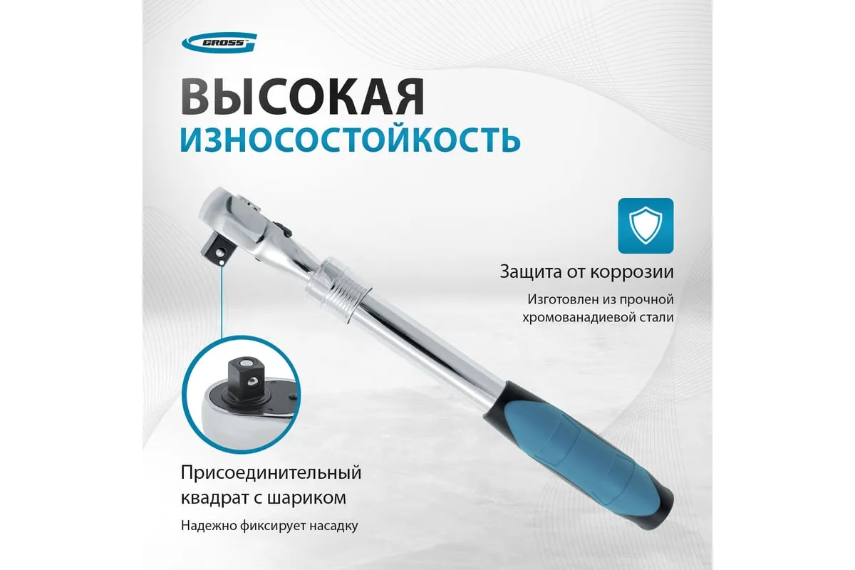 Телескопический трещоточный ключ 1/2" GROSS 14070 выполнен из хромованадиевой стали и хромирован для продления срока службы. Имеет двухкомпонентную рукоятку, которая легко удлиняется благодаря запатентованному механизму. Реверс ключа позволяет производить как закручивание, так и откручивание крепежа.