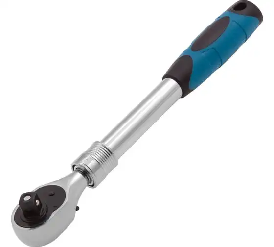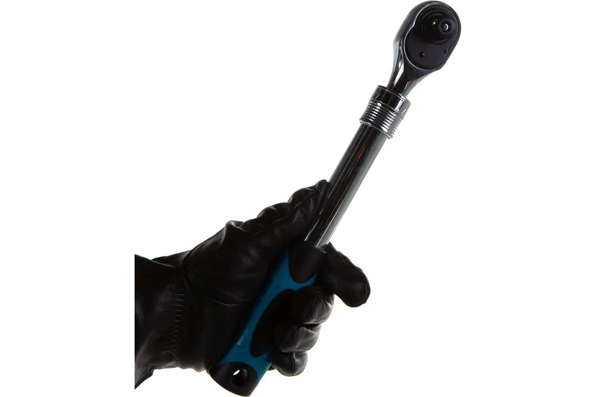 Особенно удобен для работы в труднодоступных местах, так как имеет запатентованный механизм фиксации телескопической рукоятки. Ее длину можно изменить с 305 до 445 мм. Инструмент используется в слесарных мастерских, автосервисах, пригодится и в быту.