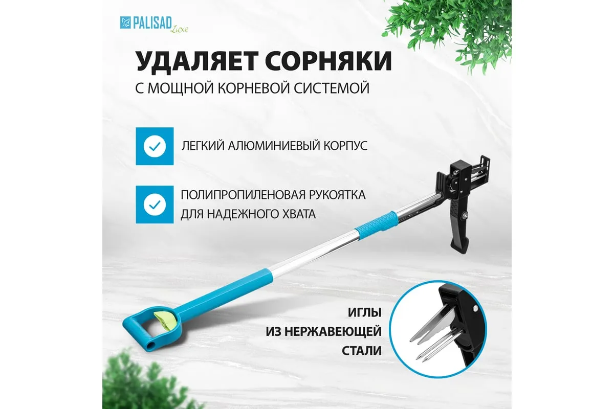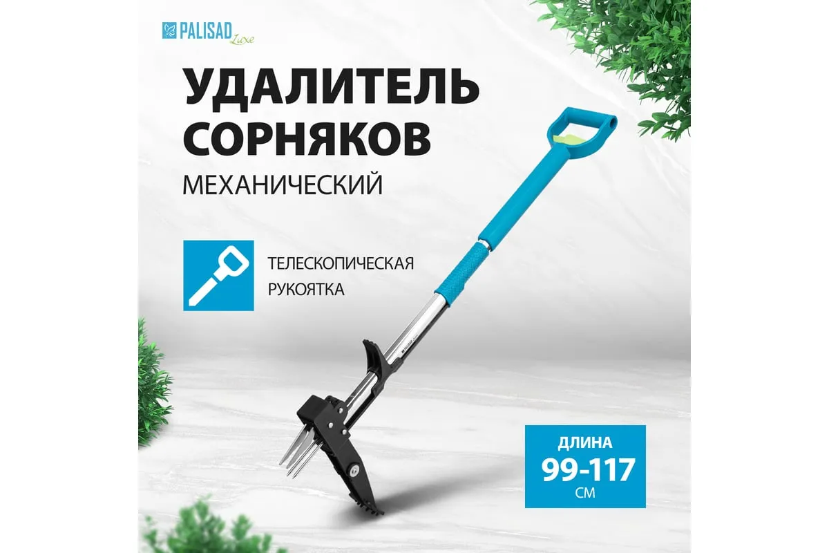 Телескопический удалитель сорняков Palisad LUXE 62033 с раздвижной рукояткой 990-1170 мм и алюминиевым корпусом позволяет избавиться от сорняков с мощной корневой системой. Легко выдергивает сорняки вместе с корнем, не повреждая при этом культурные растения. Пригодится дачникам во время работы на огороде или в саду.