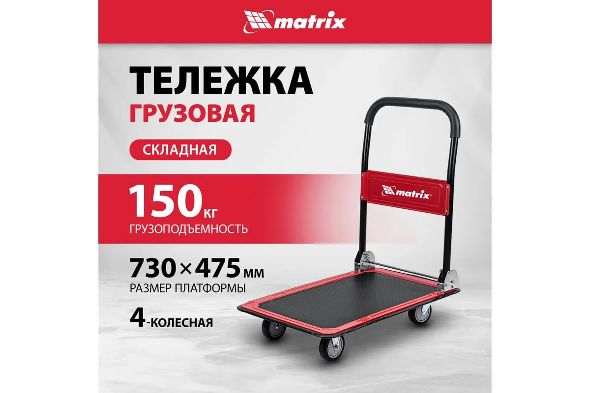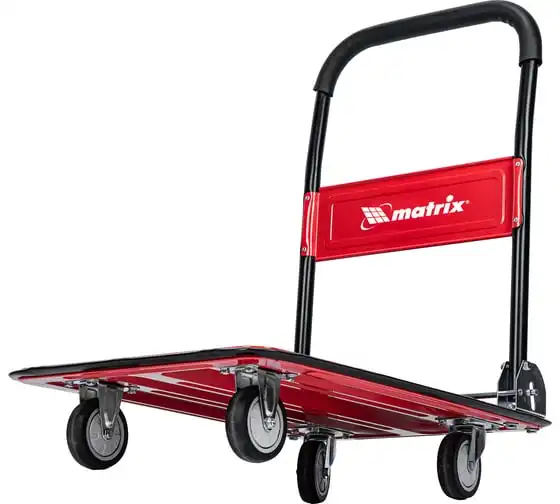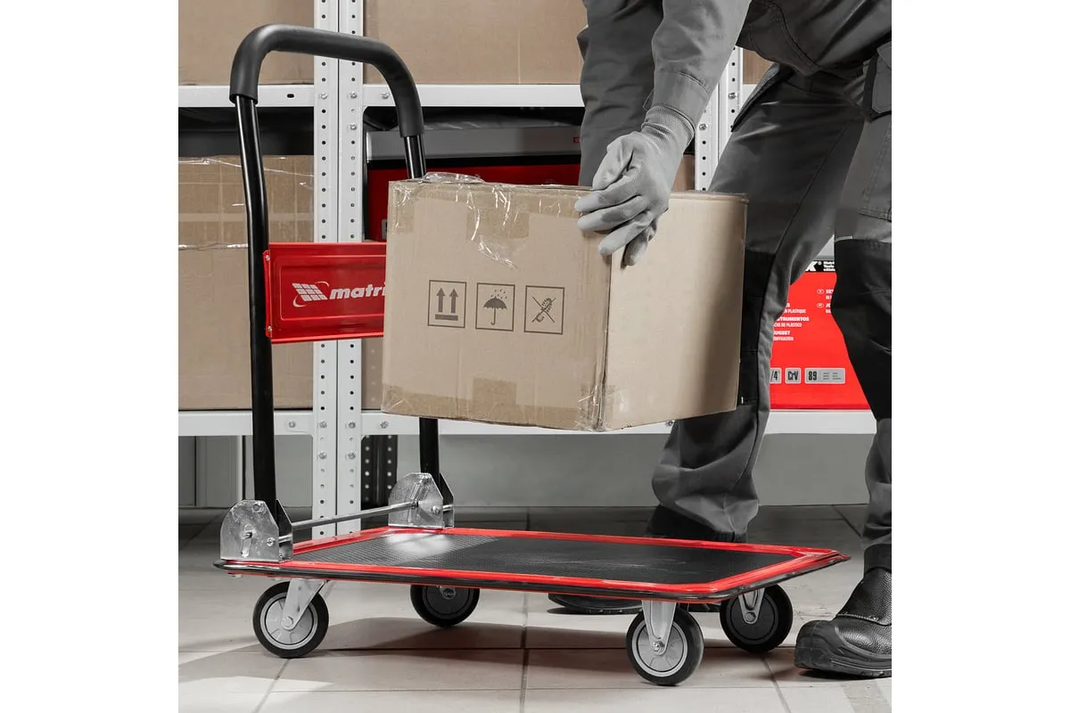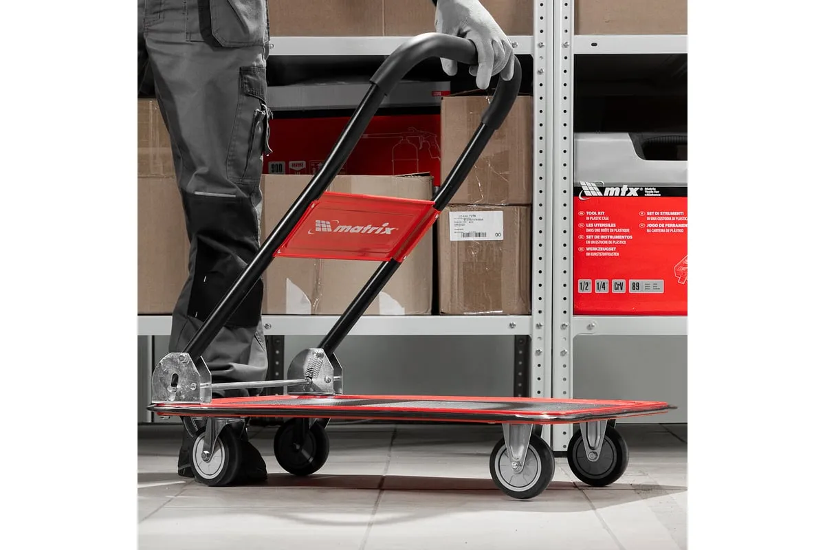 Хозяйственная тележка Matrix 98211 предназначена для перемещения грузов массой до 150 кг. На платформе размером 730 x 475 мм можно разместить даже крупногабаритные предметы.