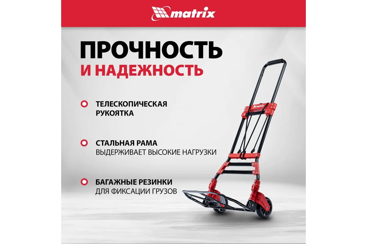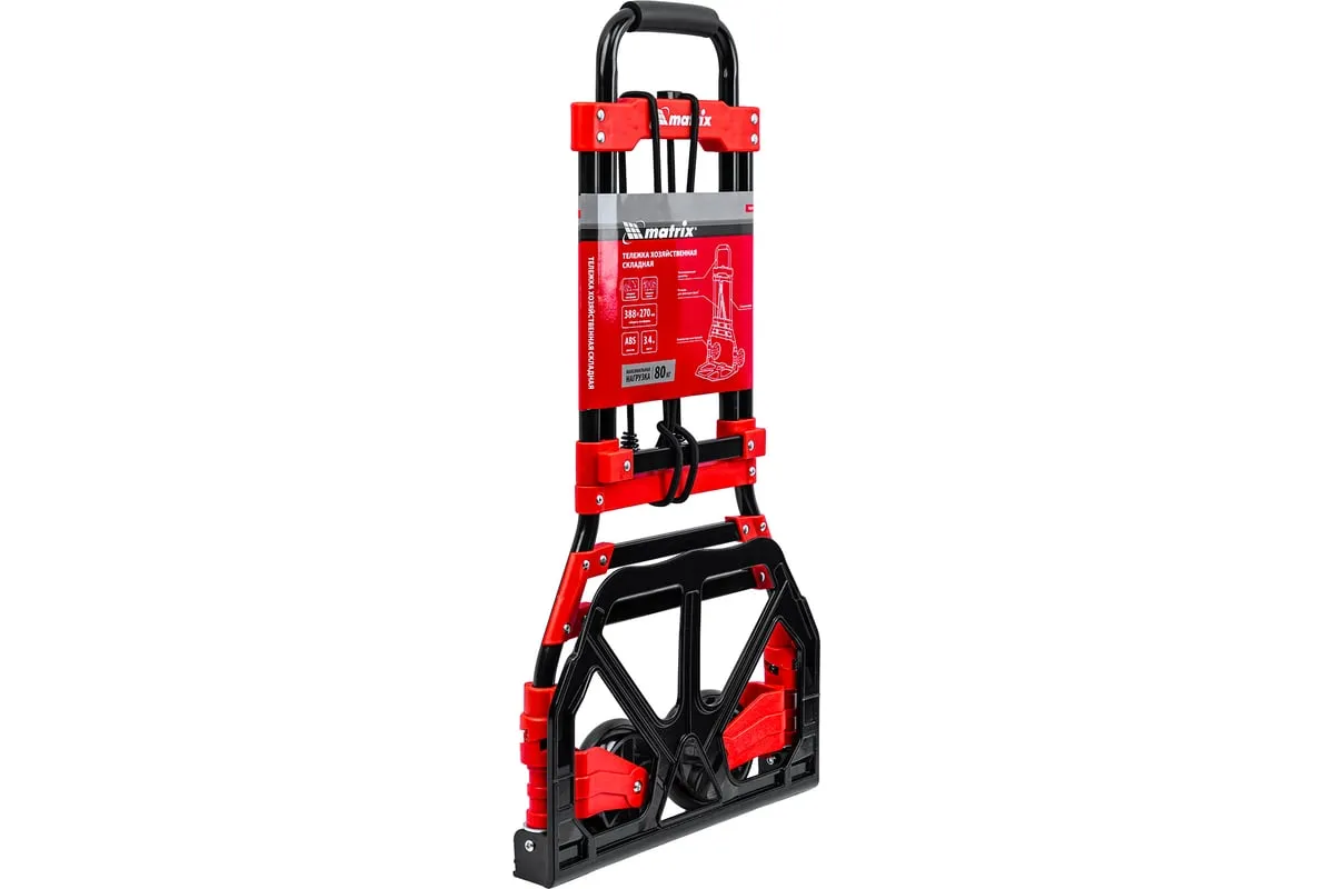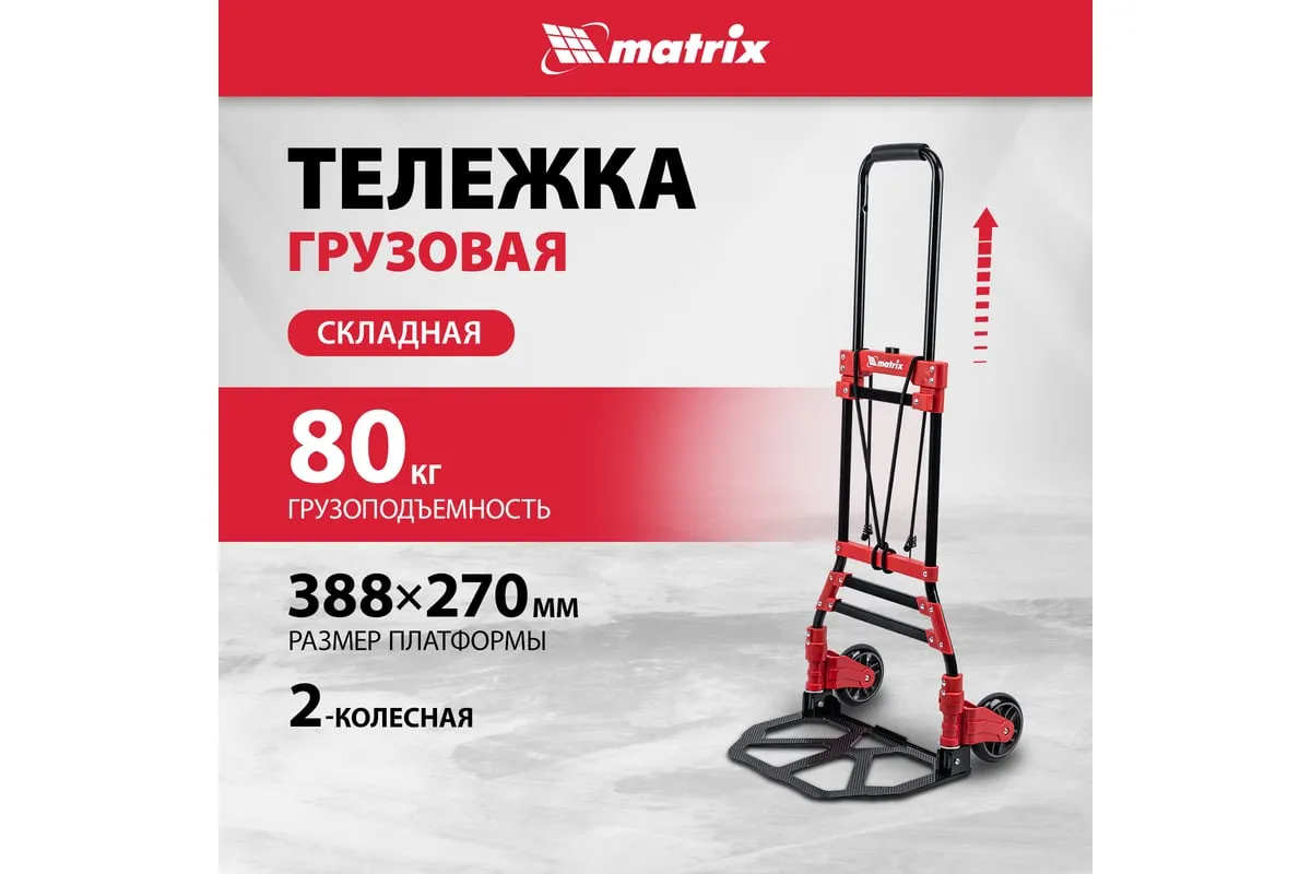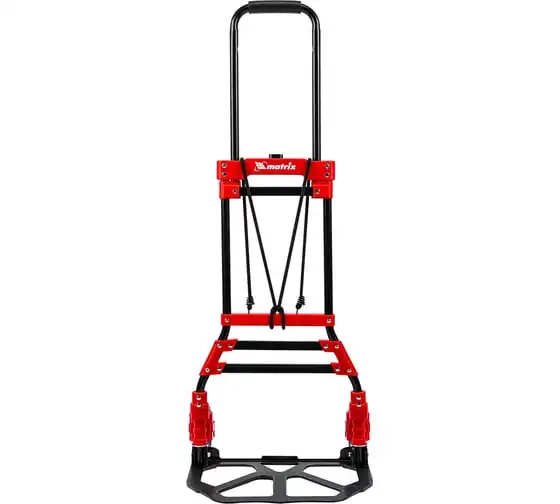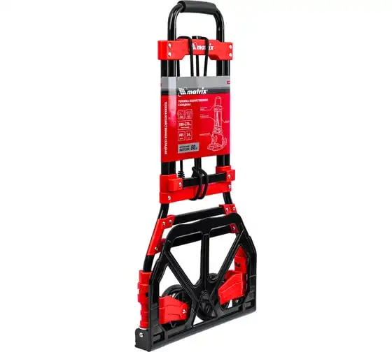 Складная хозяйственная 2-колесная тележка Matrix 98207 со стальной рамой предназначена для перемещения грузов массой до 80 кг. Телескопическая рукоятка позволяет регулировать высоту тележки в соответствии с ростом пользователя. Для размещения груза предусмотрена платформа размером 388 x 270 мм