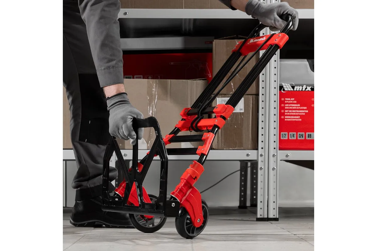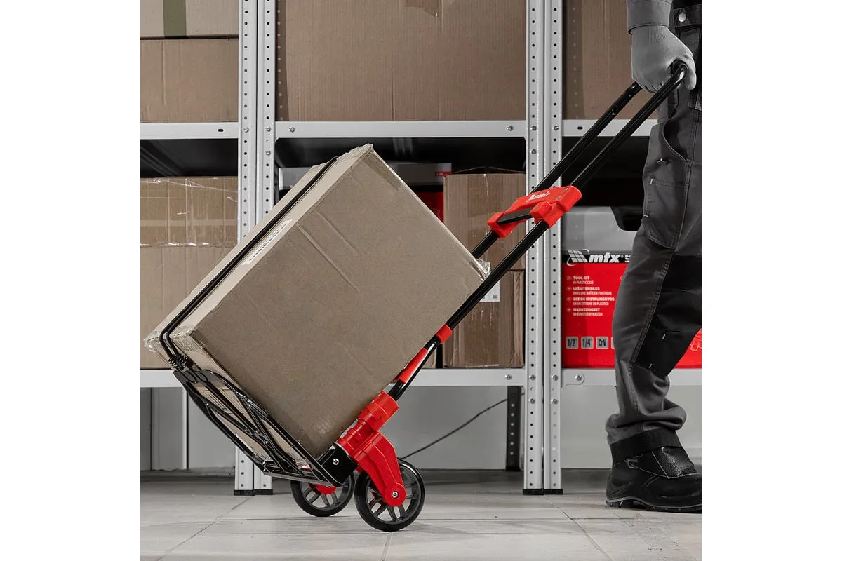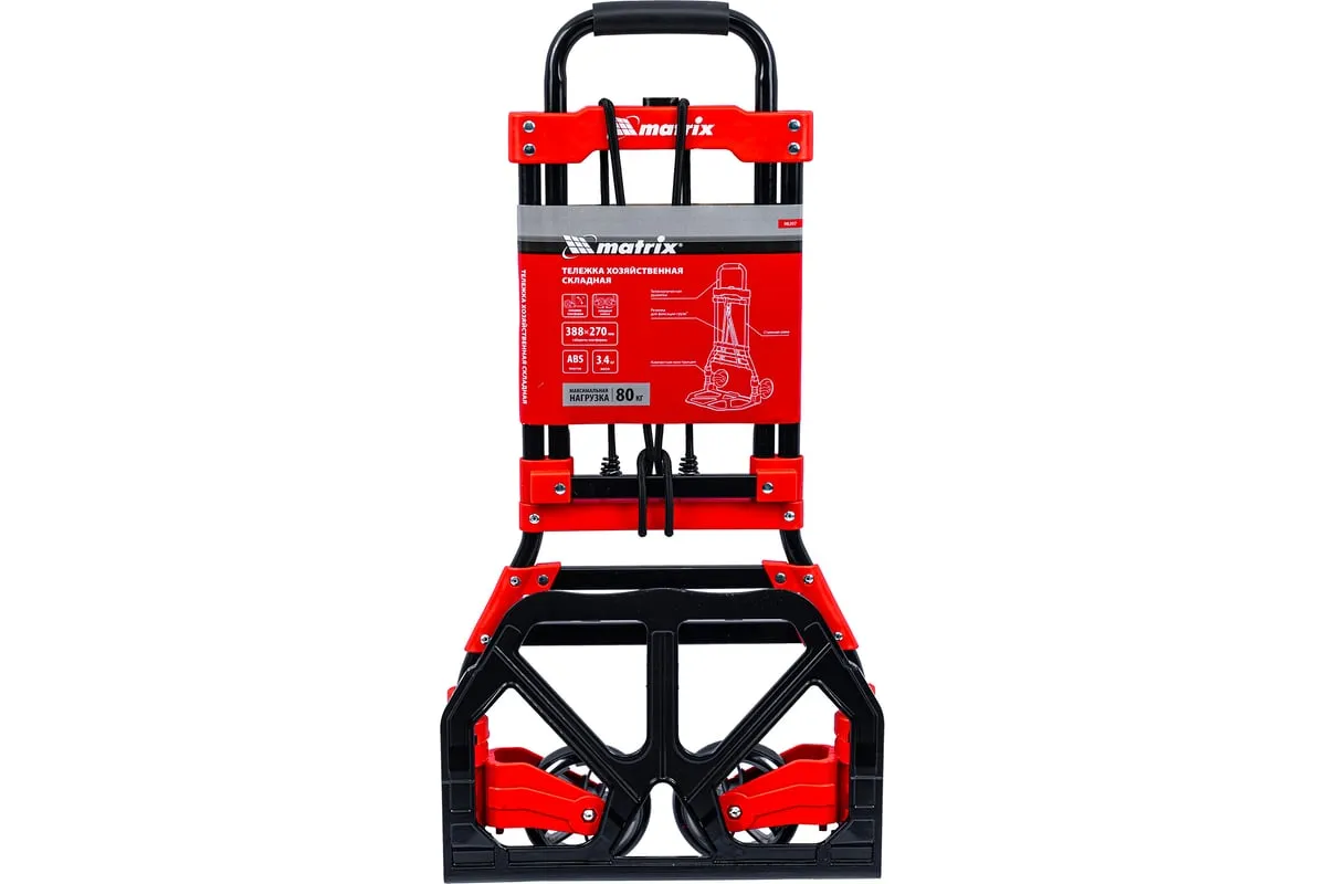 Складная хозяйственная 2-колесная тележка Matrix 98207 со стальной рамой предназначена для перемещения грузов массой до 80 кг. Телескопическая рукоятка позволяет регулировать высоту тележки в соответствии с ростом пользователя. Для размещения груза предусмотрена платформа размером 388 x 270 мм