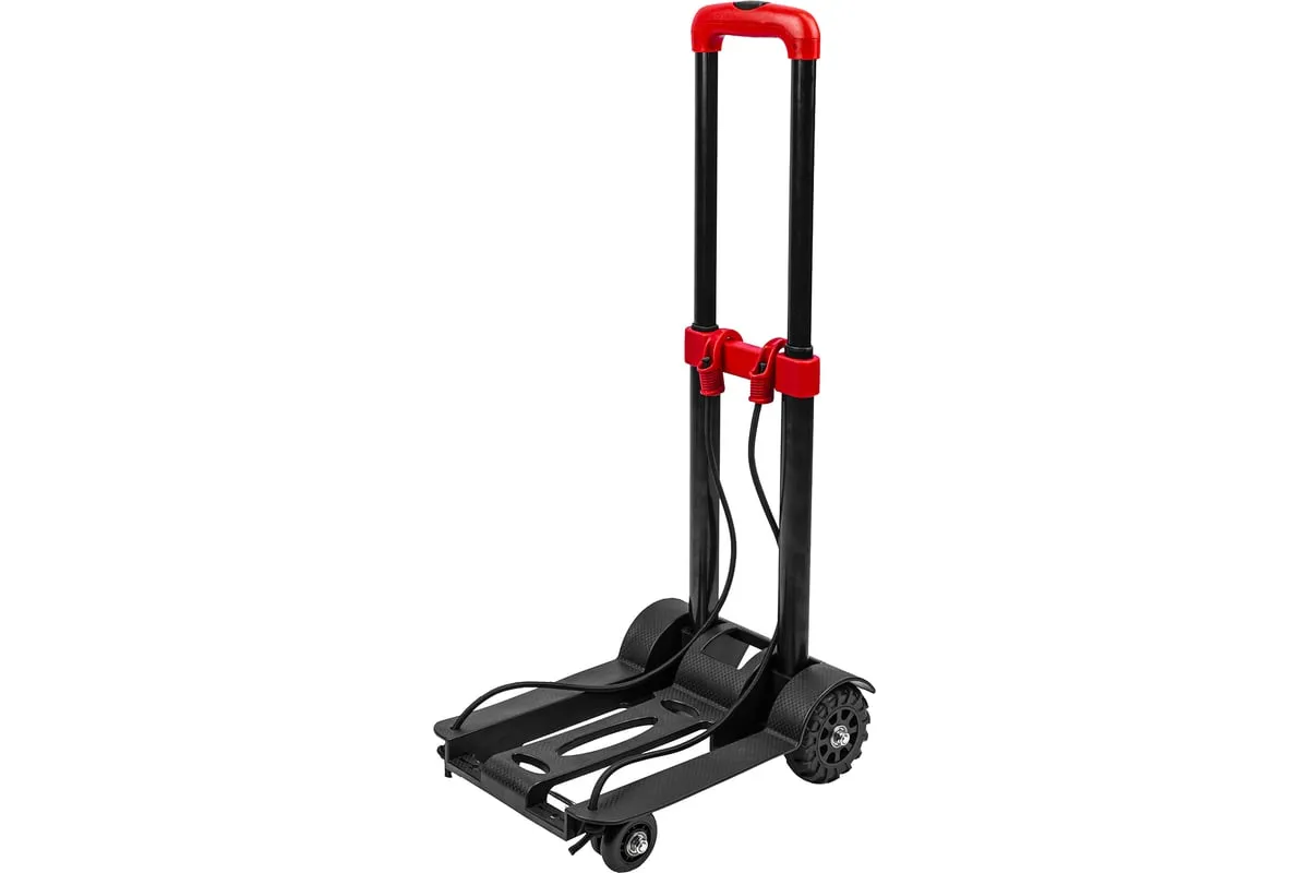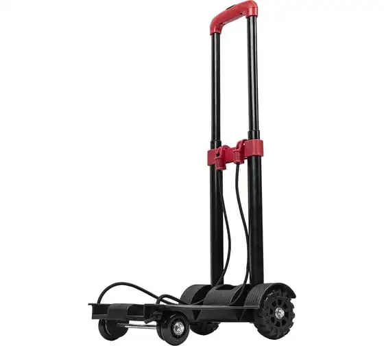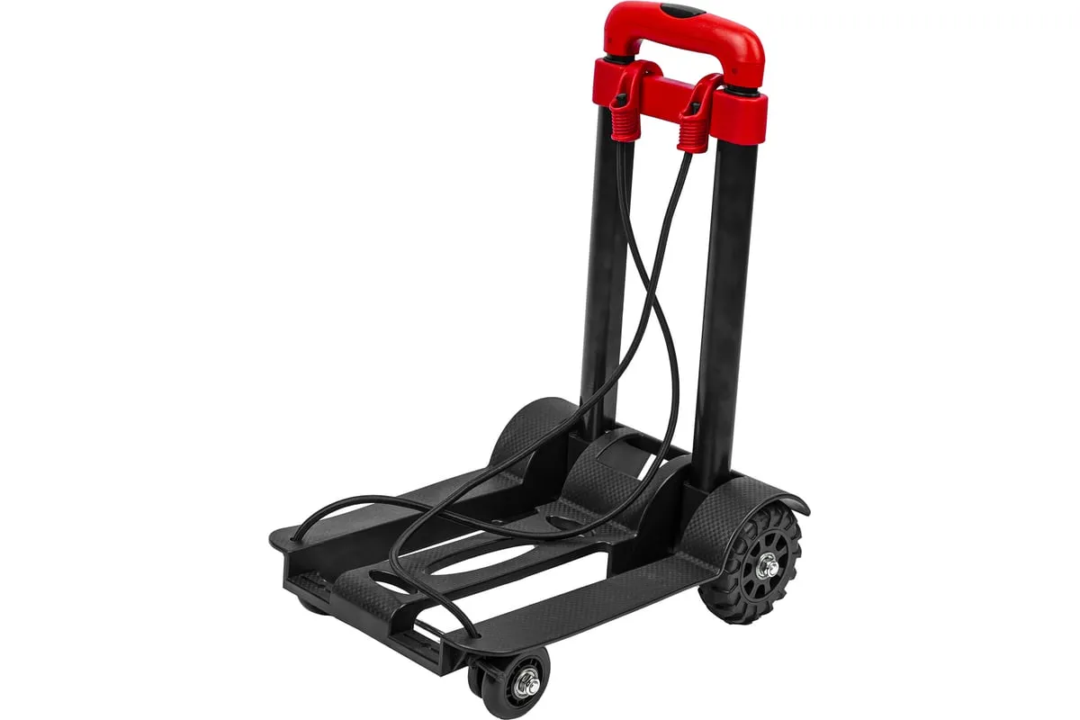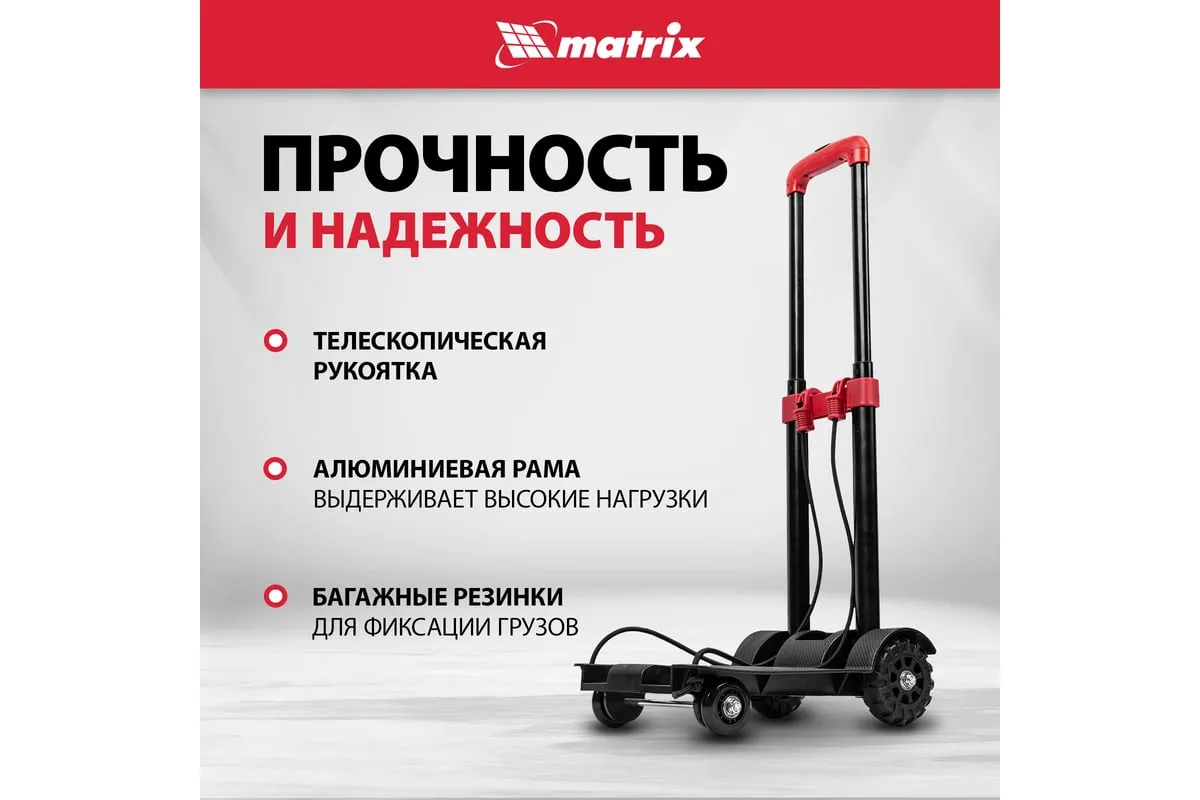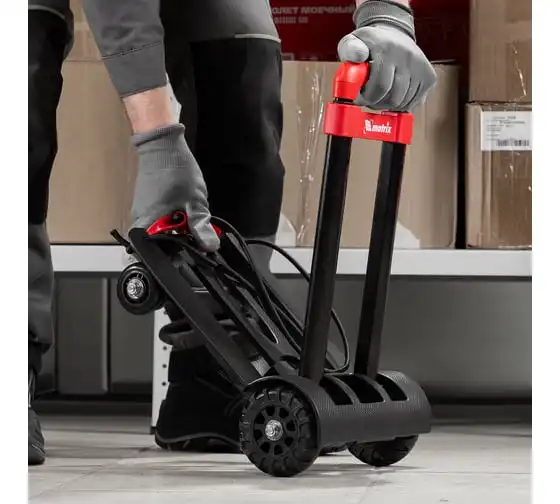 Складная хозяйственная 4-колесная тележка Matrix 98205 предназначена для перемещения грузов массой до 40 кг. Телескопическая рукоятка позволяет регулировать высоту тележки в соответствии с ростом пользователя. Для размещения груза предусмотрена платформа размером 230 x 250 мм.