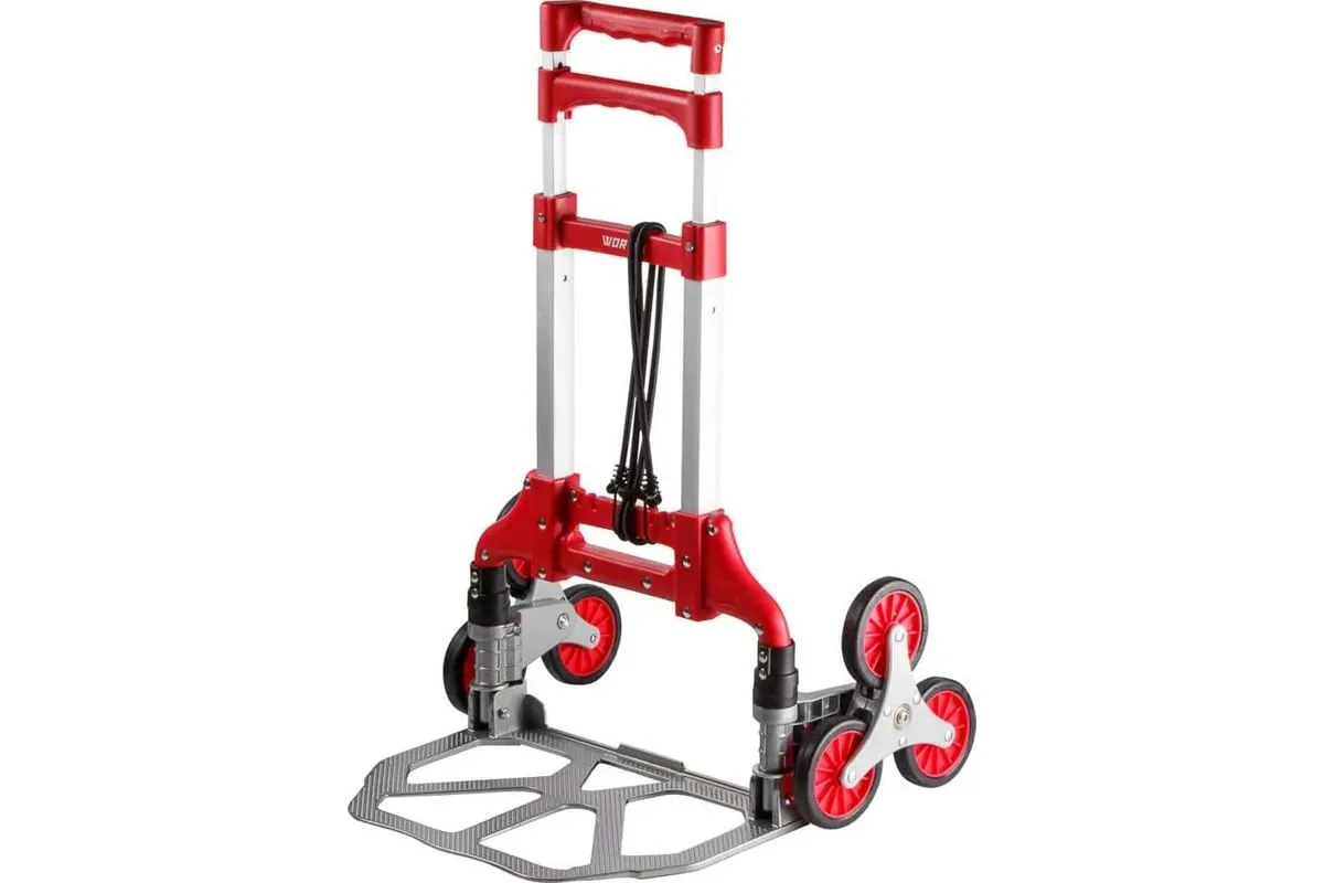 Тележка складная WORTEX FT 1080-6 (1323380) отличается высокой прочностью, надежными соединениями и максимальной грузоподъемностью в 80 кг. Идеально подойдет как для ровных поверхностей, так и для ступеней, за счет наличия 6 прочных обрезиненных колес, установленных на подшипниках.
