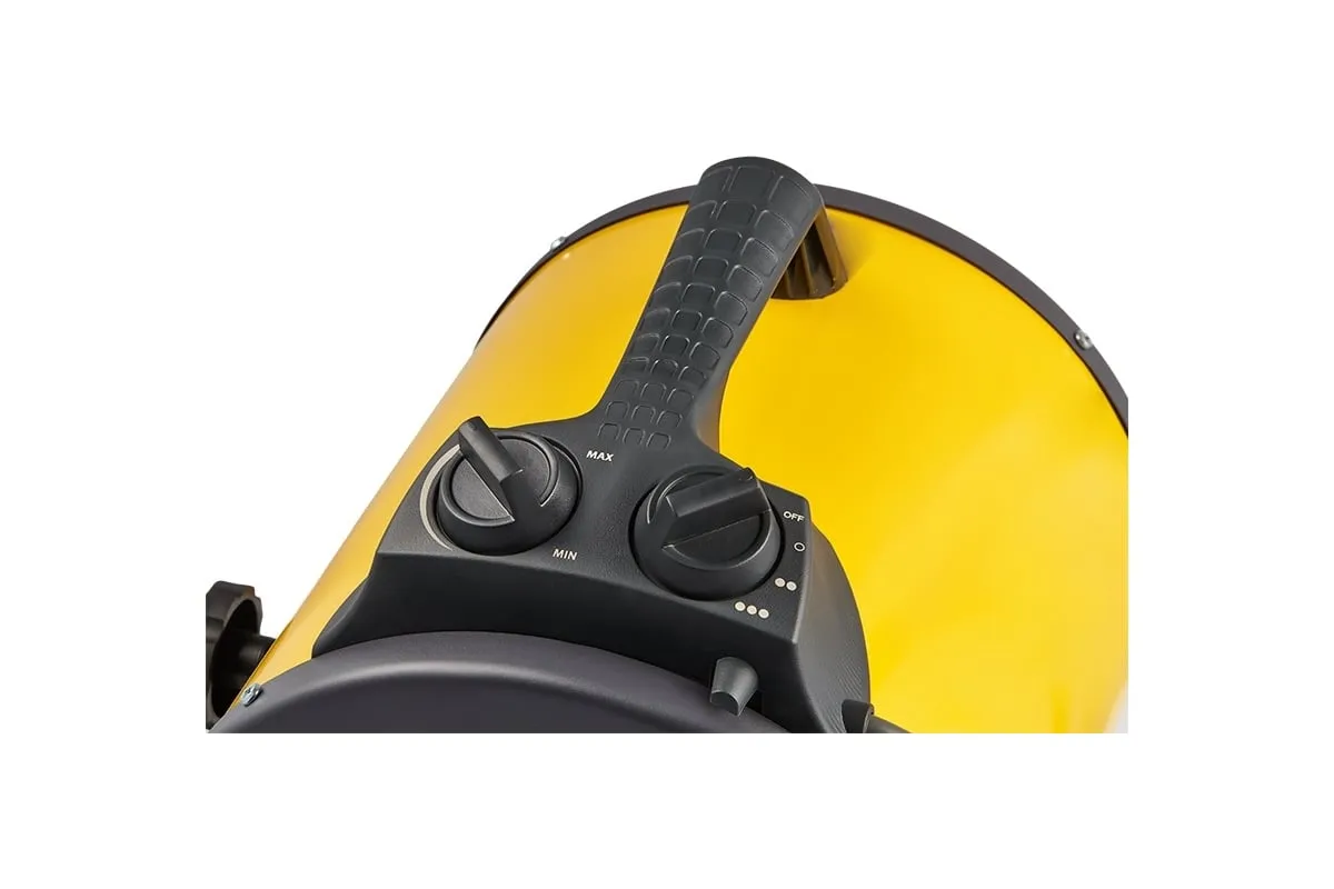 В цилиндрическом корпусе пушки нагревательные элементы особой формы способствуют созданию более эффективного направленного воздушного потока. В пушке предусмотрено три режима мощности и режим вентиляции. Прибор подключается к сети с помощью кабеля с обжатыми концами проводов.